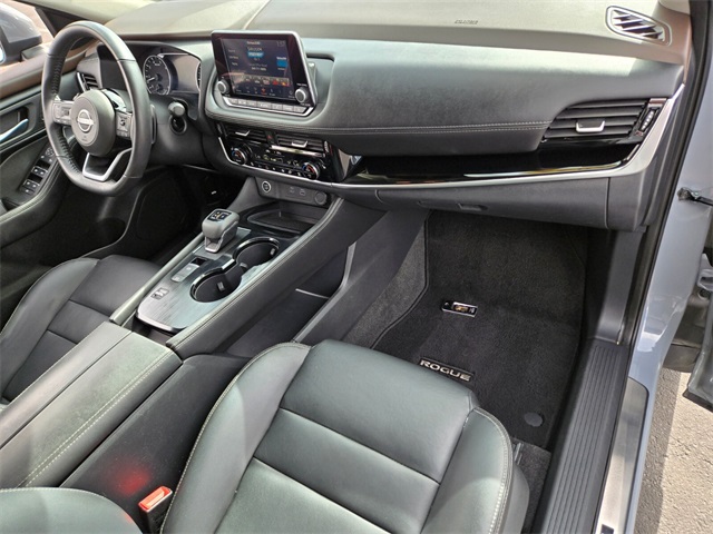 CARFAX One-Owner.29/36 City/Highway MPGBoulder Gray Pearl 2022 Nissan Rogue SL FWD CVT with Xtronic 1.5L I3 Turbocharged DOHC 12V LEV3-ULEV50 201hpIf you don't drive here, you can't save here!Price may not include recon fee. 19" Aluminum Alloy Wheels, 4-Wheel Disc Brakes, 5.604 Axle Ratio, 6 Speakers, ABS brakes, Air Conditioning, Alloy wheels, AM/FM Radio, AM/FM radio: SiriusXM, Auto High-beam Headlights, Auto-dimming Rear-View mirror, Automatic temperature control, Black Splash Guards (Set of 4), Bose Premium Audio System, Brake assist, Bumpers: body-color, Chrome Rear Bumper Protector, Delay-off headlights, Driver door bin, Driver vanity mirror, Dual front impact airbags, Dual front side impact airbags, Electronic Stability Control, Emergency communication system: NissanConnect Services, First Aid Kit, Floor Mats w/2-Piece Cargo Area Protector, Four wheel independent suspension, Front anti-roll bar, Front Bucket Seats, Front Center Armrest, Front dual zone A/C, Front fog lights, Front reading lights, Fully automatic headlights, Heated door mirrors, Heated Front Bucket Seats, Heated front seats, Heated steering wheel, Illuminated entry, Illuminated Kick Plates, Knee airbag, Leather-Appointed Seat Trim, Low tire pressure warning, Memory seat, NissanConnect featuring Apple CarPlay and Android Auto, Occupant sensing airbag, Outside temperature display, Overhead airbag, Overhead console, Panic alarm, Passenger door bin, Passenger vanity mirror, Power door mirrors, Power driver seat, Power Liftgate, Power moonroof, Power passenger seat, Power steering, Power windows, Radio data system, Rear air conditioning, Rear anti-roll bar, Rear Parking Sensors, Rear reading lights, Rear seat center armrest, Rear side impact airbag, Rear window defroster, Rear window wiper, Remote keyless entry, Retractable Cargo Cover, Roof rack: rails only, Security system, Speed control, Speed-Sensitive Wipers, Split folding rear seat, Spoiler, Steering wheel mounted audio controls, Tachometer, Telescoping steering wheel, Tilt steering wheel, Traction control, Trip computer, Turn signal indicator mirrors, and Variably intermittent wipers.