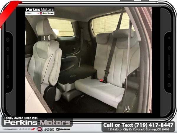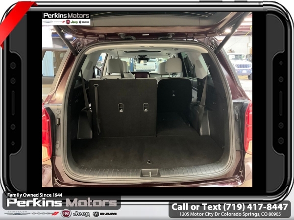 Sierra Burgundy AWD V6 8-Speed Automatic with SHIFTRONIC<br><br>115-Volt AC Power Outlet, 12.3 Full-Digital Multi-Information Display, 3rd Row USB Outlets, Acoustic Rear Side Glass, Blind-Spot View Monitor, Driver 4-Way Power Lumbar Support, Forward Collision Avoidance Assist, Front Parking Sensors, harman/kardon® Audio System, Heated 2nd Row Seats, Heated Steering Wheel, Highway Driving Assist 2, HomeLink, Hydro-Phobic Front Side Glass, Integrated Memory Driver Seat & Mirrors, Navigation System, Option Group 02, Passenger Talk (In-Car Intercom), Power Sunroof, Premium Package, Rear Side Window Sunshades, Surround View Monitor, Ventilated Front & 2nd-Row Seats, Wheels: 20 x 7.5J Alloy.<br><br><br>CARFAX One-Owner.<br><br>Check us out at www.perkinsmotors.com to see our specials! Since opening our doors in 1944, we’ve been proud to serve Colorado Springs, CO, and the surrounding areas of Pueblo, Castle Rock and Denver, CO. Throughout this time of being family owned for 80 years, we’ve maintained a firm commitment to our customers: to offer a wide selection of New Chrysler, Dodge, Fiat, Jeep, and Ram vehicles and quality pre-owned vehicles, and provide a quick, no-hassle car-buying process that ensures everyone drives off the lot satisfied with their purchase.<br><br><br>Premium Package (115-Volt AC Power Outlet, 12.3 Full-Digital Multi-Information Display, 3rd Row USB Outlets, Acoustic Rear Side Glass, Blind-Spot View Monitor, Driver 4-Way Power Lumbar Support, Forward Collision Avoidance Assist, Front Parking Sensors, harman/kardon® Audio System, Heated 2nd Row Seats, Heated Steering Wheel, Highway Driving Assist 2, HomeLink, Hydro-Phobic Front Side Glass, Integrated Memory Driver Seat & Mirrors, Option Group 02, Passenger Talk (In-Car Intercom), Power Sunroof, Rear Side Window Sunshades, Surround View Monitor, Ventilated Front & 2nd-Row Seats, and Wheels: 20 x 7.5J Alloy), Navigation System, 3.648 Axle Ratio, 3rd row seats: split-bench, 4-Wheel Disc Brakes, 6 Speakers, ABS brakes, Air Conditioning, Alloy wheels, AM/FM radio: SiriusXM, Apple CarPlay & Android Auto, Auto High-beam Headlights, Auto-dimming door mirrors, Auto-dimming Rear-View mirror, Automatic temperature control, Brake assist, Bumpers: body-color, Cruise Control, Delay-off headlights, Driver door bin, Driver vanity mirror, Dual front impact airbags, Dual front side impact airbags, Electronic Stability Control, Emergency communication system, Exterior Parking Camera Rear, Four wheel independent suspension, Front anti-roll bar, Front Bucket Seats, Front Center Armrest, Front dual zone A/C, Front reading lights, Fully automatic headlights, H-Tex Leatherette Seat Trim, Heated door mirrors, Heated Front Bucket Seats, Heated front seats, Illuminated entry, Knee airbag, Low tire pressure warning, Occupant sensing airbag, Outside temperature display, Overhead airbag, Overhead console, Panic alarm, Passenger door bin, Passenger vanity mirror, Power door mirrors, Power driver seat, Power Liftgate, Power passenger seat, Power steering, Power windows, Radio data system, Radio: AM/FM/MP3 Audio System, Rear air conditioning, Rear anti-roll bar, Rear audio controls, Rear reading lights, Rear side impact airbag, Rear window defroster, Rear window wiper, Reclining 3rd row seat, Remote keyless entry, Security system, Speed-sensing steering, Split folding rear seat, Spoiler, Steering wheel mounted audio controls, Tachometer, Telescoping steering wheel, Tilt steering wheel, Traction control, Trip computer, Turn signal indicator mirrors, Variably intermittent wipers, and Wheels: 18 x 7.5J Painted Finish Alloy.