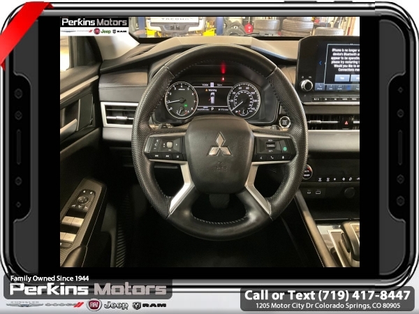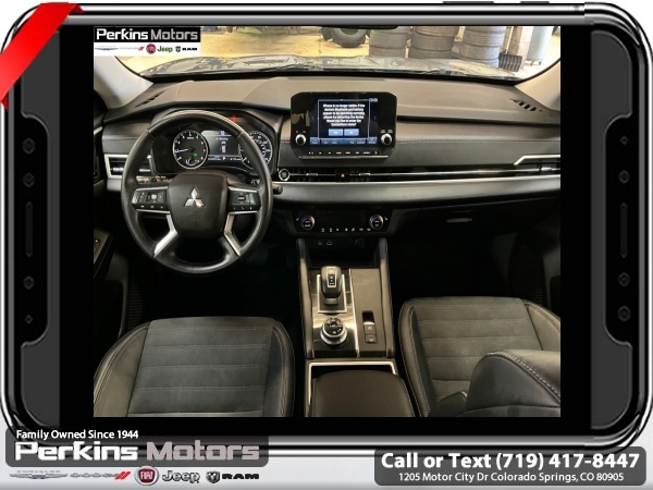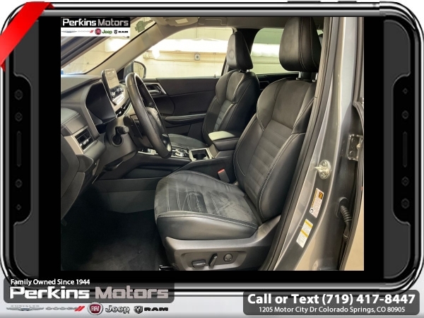 4WD 2.5L 4-Cylinder DOHC CVT<br><br>4WD, Navigation System.<br><br><br>CARFAX One-Owner. Clean CARFAX.<br><br>Check us out at www.perkinsmotors.com to see our specials! Since opening our doors in 1944, we’ve been proud to serve Colorado Springs, CO, and the surrounding areas of Pueblo, Castle Rock and Denver, CO. Throughout this time of being family owned for 80 years, we’ve maintained a firm commitment to our customers: to offer a wide selection of New Chrysler, Dodge, Fiat, Jeep, and Ram vehicles and quality pre-owned vehicles, and provide a quick, no-hassle car-buying process that ensures everyone drives off the lot satisfied with their purchase.<br><br><br>4WD, Navigation System, 3rd row seats: split-bench, 4-Wheel Disc Brakes, 6 Speakers, ABS brakes, Air Conditioning, Alloy wheels, AM/FM radio: SiriusXM, Android Auto & Apple CarPlay, Auto High-beam Headlights, Automatic temperature control, Brake assist, Bumpers: body-color, Cruise Control, Driver door bin, Driver vanity mirror, Dual front impact airbags, Dual front side impact airbags, Electronic Stability Control, Emergency communication system: Mitsubishi Connect w/ 24-month trial, Exterior Parking Camera Rear, Four wheel independent suspension, Front anti-roll bar, Front Bucket Seats, Front Center Armrest w/Storage, Front dual zone A/C, Front fog lights, Front reading lights, Fully automatic headlights, Headlight cleaning, Heated door mirrors, Heated Front Bucket Seats, Heated front seats, Illuminated entry, Knee airbag, Leather Shift Knob, Leather steering wheel, Low tire pressure warning, Occupant sensing airbag, Outside temperature display, Overhead airbag, Overhead console, Panic alarm, Passenger door bin, Passenger vanity mirror, Power door mirrors, Power driver seat, Power Liftgate, Power steering, Power windows, Radio data system, Rain sensing wipers, Rear anti-roll bar, Rear seat center armrest, Rear side impact airbag, Rear window defroster, Rear window wiper, Reclining 3rd row seat, Remote keyless entry, Security system, Speed-Sensitive Wipers, Split folding rear seat, Spoiler, Steering wheel mounted audio controls, Synthetic Leather Seat Trim, Tachometer, Telescoping steering wheel, Tilt steering wheel, Traction control, Trip computer, Turn signal indicator mirrors, and Variably intermittent wipers.
