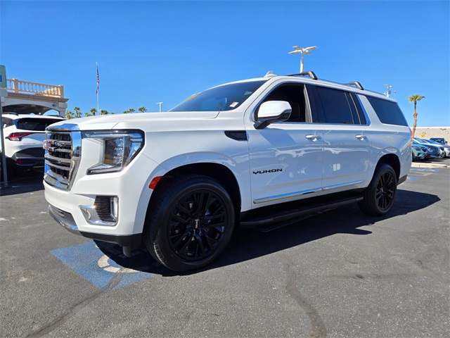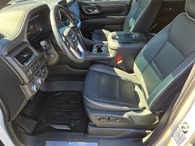 Recent Arrival!Odometer is 12106 miles below market average!White Frost Tricoat 2022 GMC Yukon XL SLT 4WD 10-Speed Automatic with Overdrive EcoTec3 5.3L V8 4WD.If you don't drive here, you can't save here!Price may not include recon fee. License Plate Front Mounting Package, Max Trailering Package, Preferred Equipment Group 4SA (2 Presets For Power Driver Seat, Automatic Stop/Start, Bose 9-Speaker Stereo Audio System Feature, Bright Chrome Bodyside Moldings, Bright Front & Rear Door Sill Plates, Chrome Door Handles w/Body-Color Strip, Hands-Free Power Programmable Rear Liftgate, Heated & Ventilated Driver & Front Passenger Seats, Heated Driver & Front Passenger Seats, Inside Rear-View Auto-Dimming Mirror, Safety Alert Seat, Start/Stop System Disable Button, Universal Home Remote, and Wireless Charging), SLT Luxury Package (2 Presets For Outside Rearview Mirrors, 3rd Row 60/40 Power-Folding Split-Bench Seat, HD Surround Vision, Heated 2nd Row Outboard Position Seats, Heated Steering Wheel, Outside Heated Power-Adjustable Mirrors, Power Release 2nd Row 60/40 Split-Folding Bench Seat, Power Tilt & Telescopic Steering Column, and Rear Pedestrian Alert), SLT Premium Package (Dual-Pane Panoramic Power Sunroof), 4WD, 3.23 Rear Axle Ratio, 3rd row seats: split-bench, 4-Wheel Disc Brakes, 9 Speakers, ABS brakes, Air Conditioning, Alloy wheels, AM/FM radio: SiriusXM with 360L, AM/FM Stereo, Apple CarPlay/Android Auto, Auto High-beam Headlights, Auto-dimming Rear-View mirror, Automatic Emergency Braking, Automatic temperature control, Black Roof Rack Cross Rails, Bodyside moldings, Brake assist, Bumpers: body-color, Compass, Delay-off headlights, Driver door bin, Driver vanity mirror, Dual front impact airbags, Dual front side impact airbags, Electronic Stability Control, Emergency communication system: OnStar and GMC Connected Services capable, Extra Capacity Cooling System, Following Distance Indicator, Forward Collision Alert, Four wheel independent suspension, Front & Rear Park Assist, Front anti-roll bar, Front Bucket Seats, Front Center Armrest, Front dual zone A/C, Front fog lights, Front Pedestrian Braking, Front reading lights, Fully automatic headlights, Garage door transmitter, Heated door mirrors, Heated front seats, Hitch Guidance w/Hitch View, Illuminated entry, Integrated Trailer Brake Controller, IntelliBeam Automatic High Beam On/Off, Lane Change Alert w/Side Blind Zone Alert, Lane Keep Assist w/Lane Departure Warning, Leather steering wheel, Low tire pressure warning, Memory seat, Navigation System, Not Equipped w/4-Way Driver & Fr Pass Pwr Lumbar, Not Equipped w/Heated Steering Wheel (DISC), Not Equipped w/Steering Column Lock, Occupant sensing airbag, Outside temperature display, Overhead airbag, Overhead console, Panic alarm, Passenger door bin, Passenger vanity mirror, Perforated Leather-Appointed Seating, Power door mirrors, Power driver seat, Power Liftgate, Power passenger seat, Power Release 2nd Row Bucket Seats, Power steering, Power windows, Premium Smooth Ride Suspension, Rain sensing wipers, Rear air conditioning, Rear anti-roll bar, Rear Cross Traffic Alert, Rear reading lights, Rear seat center armrest, Rear window defroster, Rear window wiper, Remote keyless entry, Roof rack: rails only, Security system, SiriusXM w/360L, Smart Trailer Integration Indicator, Speed control, Speed-sensing steering, Split folding rear seat, Spoiler, Steering wheel mounted audio controls, Tachometer, Telescoping steering wheel, Tilt steering wheel, Traction control, Trailer Side Blind Zone Alert, Trip computer, Variably intermittent wipers, Ventilated front seats, Voltmeter, Wheels: 20" x 9" 6-Spoke Polished Aluminum, Wheels: 22" Multi-Spoke Gloss Black (LPO) (SRV), and Wheels: 22" x 9" Steel Interim (LPO)