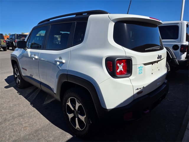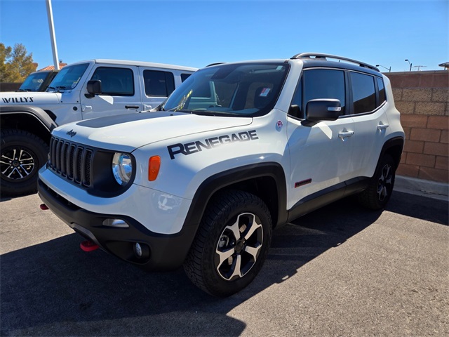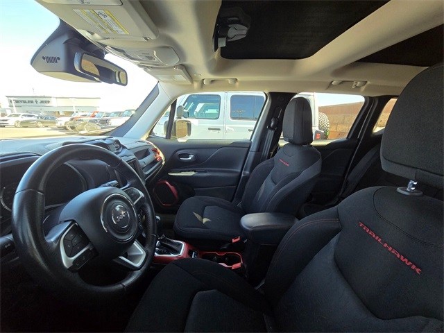Recent Arrival!CARFAX One-Owner.Odometer is 22022 miles below market average!22/27 City/Highway MPGAlpine White Clearcoat 2019 Jeep Renegade Trailhawk 4WD 9-Speed 948TE Automatic 1.3L I4If you don't drive here, you can't save here!Price may not include recon fee. Passive Entry Remote Start Package (Keyless Entry w/Panic Alarm), Popular Equipment Group (Trailhawk) (40/20/40 Rear Seat w/Trunk Pass-Thru, Auto-Dimming Rear-View Mirror, Manual Adjust 4-Way Front Passenger Seat, Power 4-Way Driver Lumbar Adjust, and Power Adjust 8-Way Driver Seat), Quick Order Package 22C (177HP Power Rating), 17" x 6.5" Aluminum Wheels, 4-Wheel Disc Brakes, 4.585 Final Drive Ratio, 6 Speakers, ABS brakes, Air Conditioning, Alloy wheels, AM/FM radio: SiriusXM, Anti-whiplash front head restraints, Apple CarPlay/Android Auto, Automatic temperature control, Brake assist, Compass, Delay-off headlights, Driver door bin, Driver vanity mirror, Dual front impact airbags, Dual front side impact airbags, Electronic Stability Control, Four wheel independent suspension, Front anti-roll bar, Front Bucket Seats, Front Center Armrest, Front dual zone A/C, Front fog lights, Front reading lights, Fully automatic headlights, Heated door mirrors, Illuminated entry, Knee airbag, Leather Shift Knob, Leather steering wheel, Low tire pressure warning, Manufacturer's Statement of Origin, My Sky Power/Removable Sunroof, Normal Duty Suspension, Occupant sensing airbag, Outside temperature display, Overhead airbag, Panic alarm, ParkView Rear Back-Up Camera, Passenger door bin, Passenger vanity mirror, Power door mirrors, Power steering, Power windows, Premium Cloth Low-Back Bucket Seats, Radio data system, Radio: Uconnect 4 w/7" Display, Rain sensing wipers, Rear anti-roll bar, Rear window defroster, Rear window wiper, Remote keyless entry, Roof rack: rails only, Speed control, Split folding rear seat, Spoiler, Steering wheel mounted audio controls, Stop-Start Multiple VSM System, Tachometer, Telescoping steering wheel, Tilt steering wheel, Traction control, Trip computer, Turn signal indicator mirrors, Variably intermittent wipers, and Voltmeter.