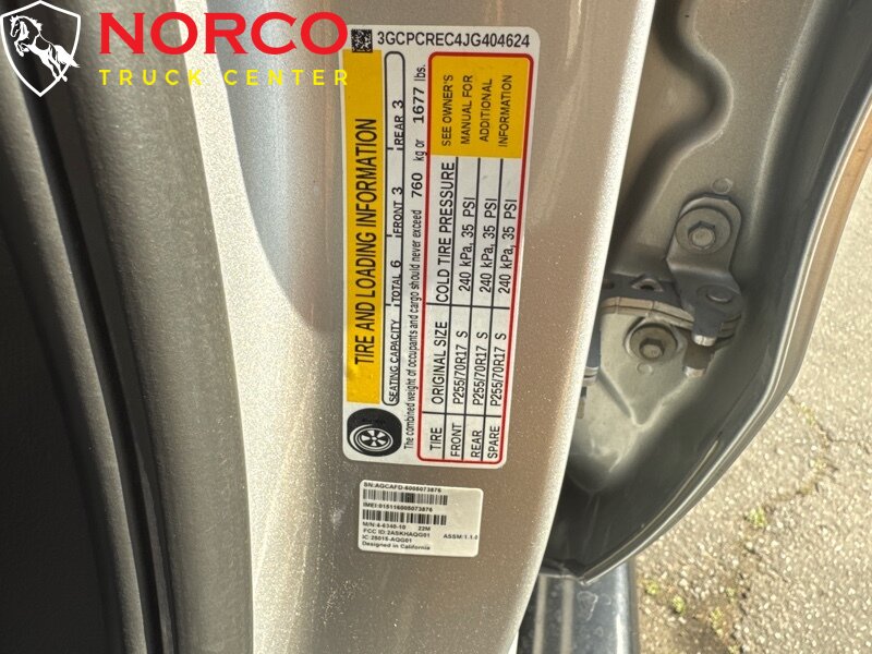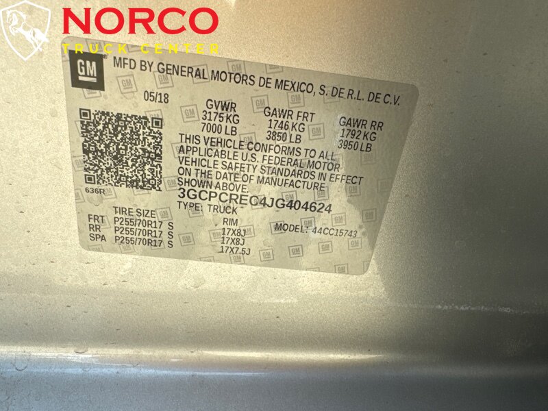 INSTALLED FEATURES: Air filtration, Front air conditioning, Front air conditioning zones: single, Airbag deactivation: occupant sensing passenger, Front airbags: dual, Side airbags: front, Side curtain airbags: front / rear, Antenna type: diversity / mast, Auxiliary audio input: Bluetooth / iPod/iPhone / jack / USB, In-Dash CD: MP3 Playback / single disc, Internet radio app: Pandora, Radio: AM/FM / HD radio / touch screen display / voice operated, Radio data system, Satellite radio: SiriusXM, Speed sensitive volume control, Total speakers: 6, ABS: 4-wheel, Braking assist, Electronic brakeforce distribution, Front brake type: ventilated disc, Power brakes, Rear brake type: ventilated disc, Armrests: front center, Floor mat material: rubber/vinyl, Floor material: carpet, Floor mats: front / rear, Steering wheel trim: leather, Assist handle: front / rear, Capless fuel filler system, Cruise control, Cupholders: front, Multi-function remote: keyless entry / panic alarm, One-touch windows: 4, Power outlet(s): 12V front, Power steering, Power windows: lockout button, Reading lights: front, Rearview mirror: manual day/night, Steering wheel: tilt, Steering wheel mounted controls: audio / cruise control, Storage: door pockets / front seatback / in seat cushion, Vanity mirrors: dual illuminating, Active grille shutters, Body side moldings: body-color, Bumper detail: rear step, Door handle color: body-color, Exhaust tip color: stainless steel, Front bumper color: chrome, Grille color: black / chrome surround, Mirror color: body-color, Pickup bed light, Rear bumper color: chrome, Tailgate: lift assist / power locking / removable, Window trim: black, Infotainment: MyLink, Infotainment screen size: 8 in., Clock, Digital odometer, External temperature display, Fuel economy display: MPG / range, Gauge: oil pressure / tachometer, Instrument cluster screen size: 4.2 in., Multi-function display, Trip odometer, Warnings and reminders: coolant temperature warning / lamp failure / low battery / low fuel level / low oil pressure / maintenance due, Daytime running lights: LED, Exterior entry lights: approach lamps, Headlights: auto delay off / auto on/off / HID/Xenon, Side mirror adjustments: manual folding / power, Side mirrors: heated, Alternator: 150 amps, Auxiliary oil cooler, Auxiliary transmission fluid cooler, Battery: heavy duty / maintenance-free, Battery rating: 730 CCA, Battery saver, Cylinder deactivation, Camera system: rearview, Check rear seat reminder, Child safety door locks, Child seat anchors: LATCH system, Programmable safety key, Rearview monitor: in dash, Emergency locking retractors: front, Front seatbelts: 3-point, Rear seatbelts: 3-point, Seatbelt pretensioners: front, Seatbelt warning sensor: front, Driver seat manual adjustments: height / lumbar / reclining, Front headrests: 2 / adjustable, Front seat type: 40-20-40 split bench, Passenger seat manual adjustments: reclining, Rear headrests: 2 / adjustable, Rear seat folding: folds up, Rear seat type: 60-40 split bench, Upholstery: cloth, Anti-theft system: vehicle immobilizer, Power door locks: anti-lockout / auto-locking, Hill holder control, Roll stability control, Stability control, Traction control, Trailer stability control, Front shock type: twin-tube gas, Front spring type: coil, Front stabilizer bar: diameter 34 mm, Front struts, Front suspension classification: independent, Front suspension type: upper and lower control arms, Rear shock type: twin-tube gas, Rear spring type: leaf, Rear suspension classification: solid live axle, Rear suspension type: multi-leaf, Electronic messaging assistance: with read function, Hands-free phone call integration: voice operated, Satellite communications: OnStar, Wi-Fi: hotspot, Wireless data link: Bluetooth, Tow/Haul mode, Spare tire mount location: underbody, Spare tire size: full-size, Spare wheel type: steel, Tire Pressure Monitoring System, Wheels: aluminum alloy, Front wipers: variable intermittent, Power windows: safety reverse, Tinted glass