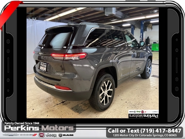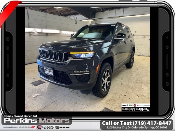 Factory MSRP: $47,295 $7,000 off MSRP! Baltic Gray Metallic Clearcoat 2025 Jeep Grand Cherokee Limited 4WD 8-Speed Automatic 3.6L V6 24V VVT<br>4WD.<br>Check us out at www.perkinsmotors.com to see our specials! Since opening our doors in 1944, we’ve been proud to serve Colorado Springs, CO, and the surrounding areas of Pueblo, Castle Rock and Denver, CO. Throughout this time of being family owned for 80 years, we’ve maintained a firm commitment to our customers: to offer a wide selection of New Chrysler, Dodge, Fiat, Jeep, and Ram vehicles and quality pre-owned vehicles, and provide a quick, no-hassle car-buying process that ensures everyone drives off the lot satisfied with their purchase.<br><br>Quick Order Package 23E (DISC), 4WD, 4-Wheel Disc Brakes, 6 Speakers, ABS brakes, Active Noise Control System, Air Conditioning, Alloy wheels, AM/FM radio: SiriusXM with 360L, Anti-whiplash front head restraints, Audio memory, Auto High-beam Headlights, Automatic temperature control, Brake assist, Bumpers: body-color, Capri Leatherette Seats, Compass, Cruise Control, Delay-off headlights, Driver door bin, Driver vanity mirror, Dual front impact airbags, Dual front side impact airbags, Electronic Stability Control, Emergency communication system, Four wheel independent suspension, Front anti-roll bar, Front Bucket Seats, Front Center Armrest w/Storage, Front dual zone A/C, Front fog lights, Front License Plate Bracket, Front reading lights, Fully automatic headlights, Garage door transmitter, Heated door mirrors, Heated front seats, Heated rear seats, Heated steering wheel, Illuminated entry, Knee airbag, Low tire pressure warning, Memory seat, Model Year Tracking, Navigation System, Normal Duty Suspension, Occupant sensing airbag, Outside temperature display, Overhead airbag, Overhead console, Panic alarm, ParkView Rear Back-Up Camera, Passenger door bin, Passenger vanity mirror, Power door mirrors, Power driver seat, Power Liftgate, Power passenger seat, Power steering, Power windows, Radio data system, Radio: Uconnect 5 Nav w/10.1 Display, Rear anti-roll bar, Rear reading lights, Rear window defroster, Rear window wiper, Remote keyless entry, Security system, Speed-Sensitive Wipers, Split folding rear seat, Spoiler, Steering wheel mounted audio controls, Tachometer, Telescoping steering wheel, Tilt steering wheel, Traction control, Trip computer, Turn signal indicator mirrors, Variably intermittent wipers, Voltmeter, and Wheels: 18 x 8 Polished/Painted Aluminum.<br><br>19/26 City/Highway MPG Sale price includes all manufacture's incentives and dealer discounts. Sale price not available on lease or compatible with special APR. $1000 - 2025 National Retail Consumer Cash. Exp. 03/31/2025 $1000 - 2025 West BC SFS Bonus Cash . Exp. 03/31/2025 $1500 - 2025 National Jeep Celebration Event Retail Bonus Cash . Exp. 03/31/2025