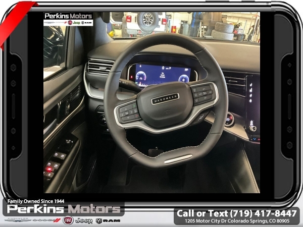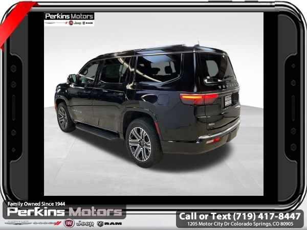 Factory MSRP: $65,640 $5,944 off MSRP! Priced below KBB Fair Purchase Price! Diamond Black Crystal Pearlcoat 2025 Jeep Wagoneer 4WD 8-Speed Automatic 3.0L I6<br><br>Check us out at www.perkinsmotors.com to see our specials! Since opening our doors in 1944, we’ve been proud to serve Colorado Springs, CO, and the surrounding areas of Pueblo, Castle Rock and Denver, CO. Throughout this time of being family owned for 80 years, we’ve maintained a firm commitment to our customers: to offer a wide selection of New Chrysler, Dodge, Fiat, Jeep, and Ram vehicles and quality pre-owned vehicles, and provide a quick, no-hassle car-buying process that ensures everyone drives off the lot satisfied with their purchase.<br><br>Quick Order Package 25E, 10 Speakers, 3.55 Rear Axle Ratio, 3rd row seats: bench, 4-Wheel Disc Brakes, ABS brakes, Air Conditioning, Alloy wheels, AM/FM radio: SiriusXM with 360L, Anti-whiplash front head restraints, Apple CarPlay/Android Auto, Audio memory, Auto Adjust In Reverse Exterior Mirrors, Auto-dimming door mirrors, Auto-Dimming Exterior Driver Mirror, Auto-dimming Rear-View mirror, Auto-leveling suspension, Automatic temperature control, Brake assist, Bumpers: body-color, Compass, Cruise Control, Delay-off headlights, Driver door bin, Driver vanity mirror, Driver's Seat Mounted Armrest, Dual front impact airbags, Dual front side impact airbags, Electronic Stability Control, Emergency communication system: Jeep Connect, Exterior Mirrors Approach Lamps, Exterior Mirrors w/Memory, Exterior Mirrors w/Supplemental Signals, Four wheel independent suspension, Front anti-roll bar, Front Bucket Seats, Front Center Armrest w/Storage, Front dual zone A/C, Front fog lights, Front reading lights, Fully automatic headlights, Garage door transmitter, Heated door mirrors, Heated Exterior Mirrors, Heated front seats, Heated steering wheel, Illuminated entry, Knee airbag, Leather Trimmed Bucket Seats, Low tire pressure warning, Memory seat, Navigation System, Normal Duty Suspension, Occupant sensing airbag, Outside temperature display, Overhead airbag, Overhead console, Panic alarm, ParkView Rear Back-Up Camera, Passenger door bin, Passenger seat mounted armrest, Passenger vanity mirror, Power adjustable front head restraints, Power door mirrors, Power driver seat, Power Liftgate, Power passenger seat, Power steering, Power windows, Radio data system, Radio: Uconnect 5 Nav w/10.1 Display, Rear air conditioning, Rear anti-roll bar, Rear dual zone A/C, Rear reading lights, Rear seat center armrest, Rear window defroster, Rear window wiper, Reclining 3rd row seat, Remote keyless entry, Security system, Speed-sensing steering, Speed-Sensitive Wipers, Split folding rear seat, Steering wheel memory, Steering wheel mounted audio controls, Tachometer, Telescoping steering wheel, Tilt steering wheel, Traction control, Trip computer, Turn signal indicator mirrors, Variably intermittent wipers, Ventilated front seats, Voltmeter, and Wheels: 20 x 9.0 Premium 2 Aluminum.