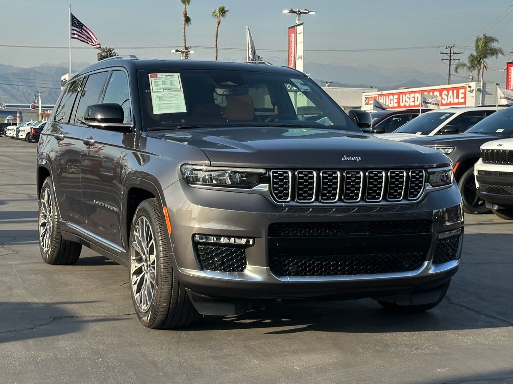 WE SPECIALIZE IN ALL CREDIT PROFILES! See what we can do for you! Call to find out (626) 899-9302.Certified.19 Speakers High Performance Audio, 2nd Row Manual Window Shades, 950 Watt Amplifier, Active Noise Control System, Deluxe Headliner, Front Passenger Interactive Display, Luxury Tech Group V, Navigation System, Palermo Leather Door Trim, Palermo Leather Seats, Power moonroof, Quick Order Package 25U Summit Reserve, Summit Reserve, Summit Reserve Badge, Two Tone Paint Group, Ventilated Rear Seats, Wheels: 21" x 9.0" Machined Face/Painted Aluminum, Wireless Charging Pad.Baltic Gray Metallic Clearcoat2022 Jeep Grand Cherokee L Summit 4WD 8-Speed Automatic HEMI 5.7L V8 Multi Displacement VVTFCA US LLC Certified Pre-Owned Details: * Warranty Deductible: $100 * Transferable Warranty * Powertrain Limited Warranty: 84 Month/100,000 Mile (whichever comes first) from original in-service date * Roadside Assistance * Vehicle History * Limited Warranty: 3 Month/3,000 Mile (whichever comes first) after new car warranty expires or from certified purchase date * Vehicles Up to 75,000 Miles and/or 5 Model Years. 24-Hour Towing & Roadside Assistance, Car Rental Allowance, CARFAX® Vehicle History ReportTM and an Introductory 3-month Subscription to SiriusXM® Satellite Radio & Certified Warranty Upgrades * 125 Point Inspection**********All Pricing and Advertised Prices for any/all vehicles offered for sale does not include dealer installed accessories which can be purchased for an additional cost.********** The Factory Rebates may not be available on this vehicle if you elect to take advantage of a Special Alternative APR or Special Lease program. Some Factory Rebates are California Resident specific and may vary for residents of other states. NO sales to Dealers, Brokers or Exporters. For out of state purchase, customers must be present to purchase. If shipping is required, dealership must facilitate; no exceptions. Please contact us for special Multi-Vehicle or Fleet pricing. Prices are plus government fees and taxes, any finance charges, $85 documentary fee, $29 electronic registration fee, any emission testing charge and $1.75 per new tire state tire fee. *** We make every effort to provide accurate information, but please verify before purchasing. Leasing & financing available on approved credit. Trade-ins accepted. Subject to prior sale.