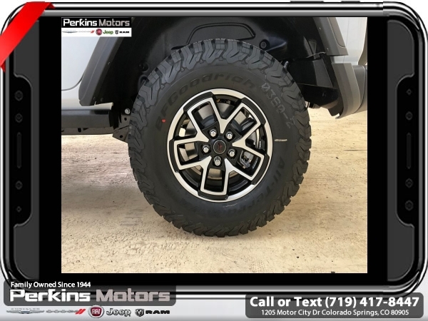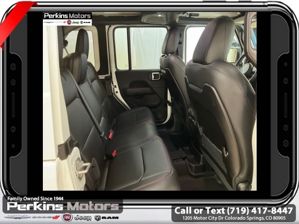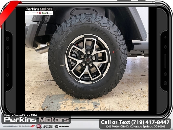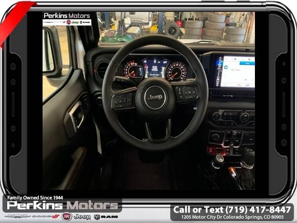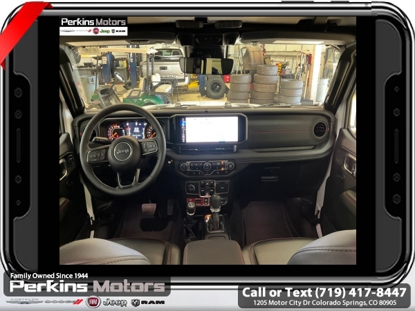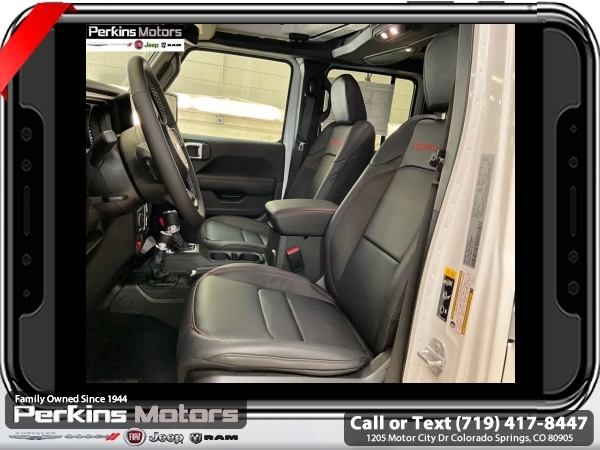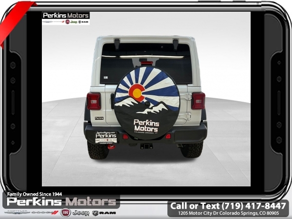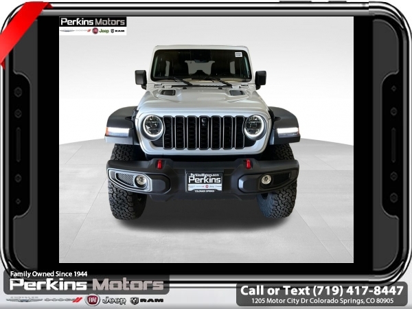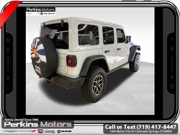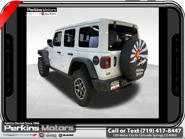 Factory MSRP: $68,040 $8,616 off MSRP! Bright White Clearcoat 2025 Jeep Wrangler Rubicon 4WD 8-Speed Automatic 3.6L V6 24V VVT<br><br>Check us out at www.perkinsmotors.com to see our specials! Since opening our doors in 1944, we’ve been proud to serve Colorado Springs, CO, and the surrounding areas of Pueblo, Castle Rock and Denver, CO. Throughout this time of being family owned for 80 years, we’ve maintained a firm commitment to our customers: to offer a wide selection of New Chrysler, Dodge, Fiat, Jeep, and Ram vehicles and quality pre-owned vehicles, and provide a quick, no-hassle car-buying process that ensures everyone drives off the lot satisfied with their purchase.<br><br>Convenience Group (Heated Front Seats, Heated Steering Wheel, and Universal Garage Door Opener), Quick Order Package 24R Rubicon, Safety Group (Auto High Beam Headlamp Control, Blind Spot & Cross Path Detection, and ParkSense Rear Park Assist System), Technology Group (12.3 Touchscreen Display, 4G LTE Wi-Fi Hot Spot, Apple CarPlay, Auto-Dimming Rear-View Mirror, Connected Travel & Traffic Services, Connectivity - US/Canada, Google Android Auto, GPS Navigation, HD Radio, Integrated Off-Road Camera, Integrated Voice Command w/Bluetooth, Radio: Uconnect 5 Nav w/12.3 Display, SiriusXM Radio Service, and SiriusXM w/360L), 4-Wheel Disc Brakes, 4.10 Rear Axle Ratio, 8 Speakers, 97 MPH Vehicle Max Speed Calibration, ABS brakes, Air Conditioning, Alloy wheels, Alpine Premium Audio System, AM/FM radio: SiriusXM, Apple CarPlay/Android Auto, Automatic temperature control, Aux Battery, Auxiliary Switches, Body Color 3-Piece Hard Top, Brake assist, Class II Receiver Hitch, Cloth Low-Back Bucket Seats, Compass, Cruise Control, Delay-off headlights, Driver door bin, Driver vanity mirror, Dual front impact airbags, Dual front side impact airbags, Electronic Stability Control, Emergency communication system: Jeep Connect, Freedom Panel Storage Bag, Front anti-roll bar, Front Bucket Seats, Front Center Armrest w/Storage, Front dual zone A/C, Front fog lights, Front License Plate Bracket (DISC), Front reading lights, Fully automatic headlights, Heated door mirrors, Illuminated entry, Integrated roll-over protection, Jeep Trail Rated Kit, Low tire pressure warning, MOPAR All-Weather Floor Mats, MOPAR Doors Off Mirror Kit, MOPAR Hardtop Headliner, Non-Lock Fuel Cap w/o Discriminator, Occupant sensing airbag, Outside temperature display, Overhead airbag, Panic alarm, ParkView Rear Back-Up Camera, Passenger door bin, Passenger vanity mirror, Performance Suspension, Power door mirrors, Power steering, Power windows, Radio data system, Radio: Uconnect 5 w/12.3 Display, Rear anti-roll bar, Rear reading lights, Rear Window Defroster, Rear Window Wiper/Washer, Remote keyless entry, Security system, Split folding rear seat, Steering wheel mounted audio controls, Stop-Start Dual Battery System, Tachometer, Telescoping steering wheel, Tilt steering wheel, Traction control, Trip computer, Variably intermittent wipers, Voltmeter, and Wheels: 17 x 7.5 Machined/Painted Black.