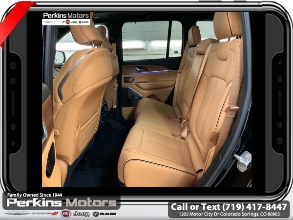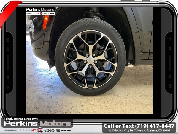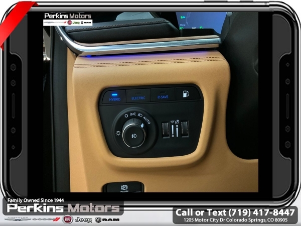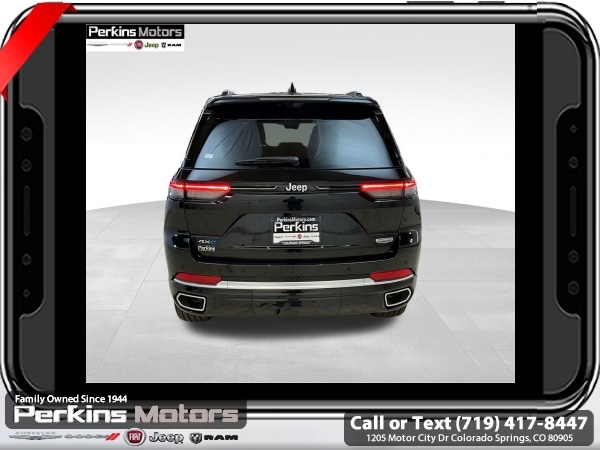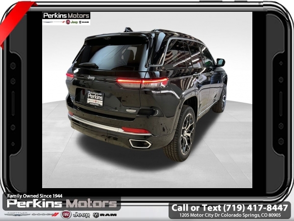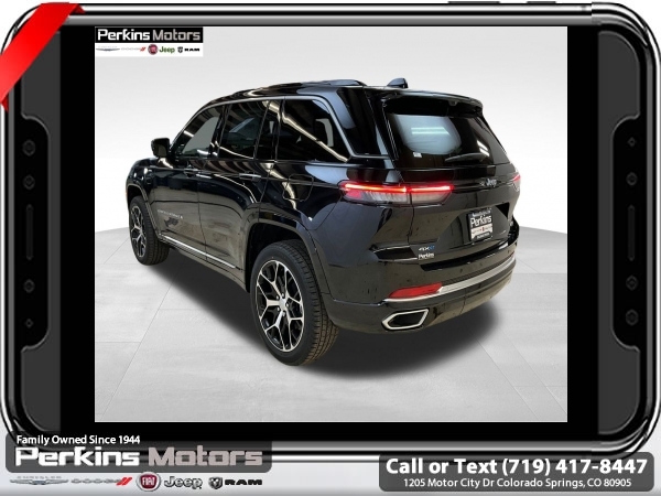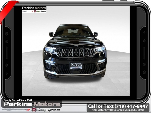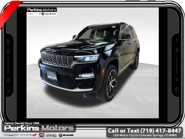 Factory MSRP: $85,310 $11,000 off MSRP! Priced below KBB Fair Purchase Price! Diamond Black Crystal Pearlcoat 2025 Jeep Grand Cherokee Summit Reserve 4xe 4WD 8-Speed Automatic 2.0L I4 DOHC<br>2.0L I4 DOHC, 4WD.<br>Check us out at www.perkinsmotors.com to see our specials! Since opening our doors in 1944, we’ve been proud to serve Colorado Springs, CO, and the surrounding areas of Pueblo, Castle Rock and Denver, CO. Throughout this time of being family owned for 80 years, we’ve maintained a firm commitment to our customers: to offer a wide selection of New Chrysler, Dodge, Fiat, Jeep, and Ram vehicles and quality pre-owned vehicles, and provide a quick, no-hassle car-buying process that ensures everyone drives off the lot satisfied with their purchase.<br><br>Advanced Protech Group IV (Heads-Up Display and Night Vision/Pedestrian-Animal Detection), Luxury Tech Group V (Wireless Charging Pad), Quick Order Package 27U Summit Reserve (Summit Reserve Badge, Ventilated Rear Seats, and Wheels: 21 x 9 Machined Face/Painted Aluminum), Two Tone Paint Group, 2.0L I4 DOHC, 4WD, 19 Speakers, 3.70 Rear Axle Ratio, 4-Wheel Disc Brakes, ABS brakes, Adaptive suspension, Air Conditioning, Alloy wheels, AM/FM radio: SiriusXM with 360L, Anti-whiplash front head restraints, Audio memory, Auto High-beam Headlights, Auto-dimming door mirrors, Auto-dimming Rear-View mirror, Auto-leveling suspension, Automatic temperature control, Brake assist, Bumpers: body-color, Compass, Cruise Control, Delay-off headlights, Driver door bin, Driver vanity mirror, Dual front impact airbags, Dual front side impact airbags, Electronic Stability Control, Four wheel independent suspension, Front anti-roll bar, Front Bucket Seats, Front Center Armrest w/Storage, Front dual zone A/C, Front fog lights, Front License Plate Bracket, Front reading lights, Fully automatic headlights, Garage door transmitter, Genuine wood dashboard insert, Genuine wood door panel insert, Heated door mirrors, Heated front seats, Heated rear seats, Heated steering wheel, Heavy Duty Suspension, Illuminated entry, Knee airbag, Leather steering wheel, Low tire pressure warning, Memory seat, Model Year Tracking, Nappa Leather Seats, Navigation System, Occupant sensing airbag, Outside temperature display, Overhead airbag, Overhead console, Panic alarm, Passenger door bin, Passenger vanity mirror, Power door mirrors, Power driver seat, Power Liftgate, Power moonroof, Power passenger seat, Power steering, Power windows, Radio data system, Radio: Uconnect 5 Nav w/10.1 Display, Rain sensing wipers, Rear air conditioning, Rear anti-roll bar, Rear dual zone A/C, Rear reading lights, Rear seat center armrest, Rear window defroster, Rear window wiper, Remote keyless entry, Security system, Speed-Sensitive Wipers, Split folding rear seat, Spoiler, Steering wheel memory, Steering wheel mounted audio controls, Tachometer, Telescoping steering wheel, Tilt steering wheel, Traction control, Trip computer, Turn signal indicator mirrors, Variably intermittent wipers, Ventilated front seats, Voltmeter, and Wheels: 20 x 8.5 Fully Painted Aluminum Silver. Sale price includes all manufacture's incentives and dealer discounts. Sale price not available on lease or compatible with special APR. $500 - 2025 National Jeep Celebration Event Bonus Cash . Exp. 03/31/2025 $6500 - 2025 National Retail Consumer Cash. Exp. 03/31/2025