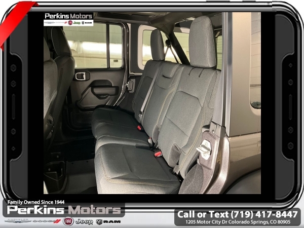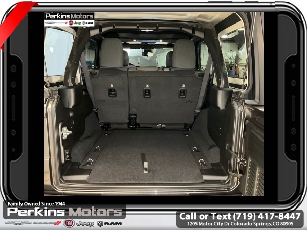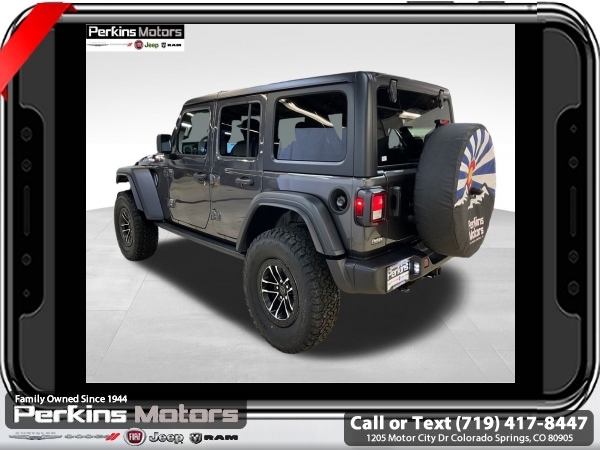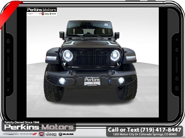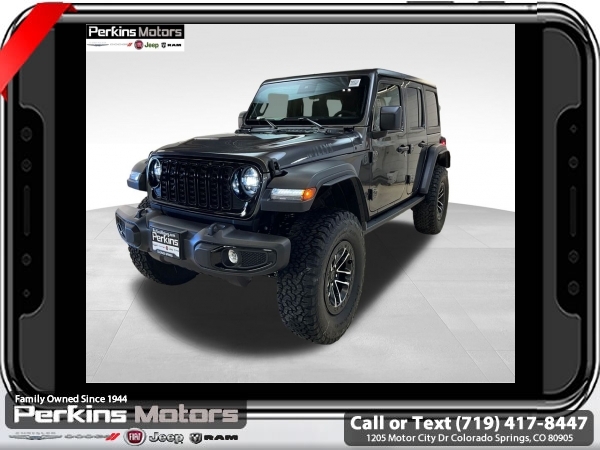 Factory MSRP: $59,540 $7,652 off MSRP! Granite Crystal Metallic Clearcoat 2025 Jeep Wrangler Willys 4WD 8-Speed Automatic 2.0L I4 DOHC<br><br>Check us out at www.perkinsmotors.com to see our specials! Since opening our doors in 1944, we’ve been proud to serve Colorado Springs, CO, and the surrounding areas of Pueblo, Castle Rock and Denver, CO. Throughout this time of being family owned for 80 years, we’ve maintained a firm commitment to our customers: to offer a wide selection of New Chrysler, Dodge, Fiat, Jeep, and Ram vehicles and quality pre-owned vehicles, and provide a quick, no-hassle car-buying process that ensures everyone drives off the lot satisfied with their purchase.<br><br>Convenience Group (2-Door Passive Entry, Front Door Locks, Air Conditioning w/Auto Temperature Control, Air Filtering, Cluster 7.0 TFT Color Display, Emergency/Assistance Call, Heated Front Seats, Heated Steering Wheel, Remote Start System, and Universal Garage Door Opener), Quick Order Package 22W Willys (4-Wheel Drive Swing Gate Decal, 4.10 Rear Axle Ratio, 7 & 4 Pin Wiring Harness, 97 MPH Vehicle Max Speed Calibration, Advanced Brake Assist, Automatic Headlamps, Auxiliary Switches, Black Grille, Class II Receiver Hitch, Conventional Differential Front Axle, Corning Gorilla Glass, Dana M210 Wide HD Tube Front Axle, Dana M220 Wide Rear Axle, Daytime Running Lamps LED Accents, Deep Tint Sunscreen Windows, E-Locker Rear Axle, Enhanced Adaptive Cruise Control, Front LED Fog Lamps, Full Speed Forward Collision Warning Plus, Injection Molded Black Rear Bumper, LED Premium Reflector Headlamps, Mold In Color Bumper w/Gloss Black, Molded in Color Rubicon Highline Flare, MOPAR All-Weather Floor Mats, Off-Road Plus Mode, Power Heated Mirrors, Premium Wrapped Steering Wheel, Security Alarm, Sun Visors w/Illuminated Vanity Mirrors, Wheels: 17 x 7.5 Painted Black, Willy's Suspension, and Willys Hood Decal), Xtreme 35 Tire Package (35 Tire Suspension, 4.56 Rear Axle Ratio, Anti-Lock 4-Wheel Disc Perf Brakes, MOPAR Hinge-Gate Reinforcement, Wheel Flare Extensions, and Wheels: 17 x 8 Machined w/Black Pockets), 110 MPH Vehicle Max Speed Calibration, 3.45 Overall Top Gear Ratio, 4-Wheel Disc Brakes, 8 Speakers, ABS brakes, Air Conditioning, AM/FM radio: SiriusXM, Apple CarPlay/Android Auto, Aux Battery, Black 3-Piece Hard Top, Brake assist, Cloth Low-Back Bucket Seats, Compass, Cruise Control, Delay-off headlights, Driver door bin, Driver vanity mirror, Dual front impact airbags, Dual front side impact airbags, Electronic Stability Control, Freedom Panel Storage Bag, Front anti-roll bar, Front Bucket Seats, Front Center Armrest w/Storage, Front fog lights, Front reading lights, Illuminated entry, Integrated roll-over protection, Jeep Trail Rated Kit, Low tire pressure warning, MOPAR Cargo Tub Liner, MOPAR Hardtop Headliner, MOPAR Plastic Door Sill Guards, Non-Lock Fuel Cap w/o Discriminator, Normal Duty Suspension, Occupant sensing airbag, Outside temperature display, Overhead airbag, Panic alarm, ParkView Rear Back-Up Camera, Passenger door bin, Passenger vanity mirror, Power steering, Power windows, Radio data system, Radio: Uconnect 5 w/12.3 Display, Rear anti-roll bar, Rear reading lights, Rear Window Defroster, Rear Window Wiper/Washer, Remote keyless entry, Split folding rear seat, Steering wheel mounted audio controls, Stop-Start Dual Battery System, Tachometer, Telescoping steering wheel, Tilt steering wheel, Traction control, Trip computer, Variably intermittent wipers, and Wheels: 17 x 7.5 Black Steel Styled.
