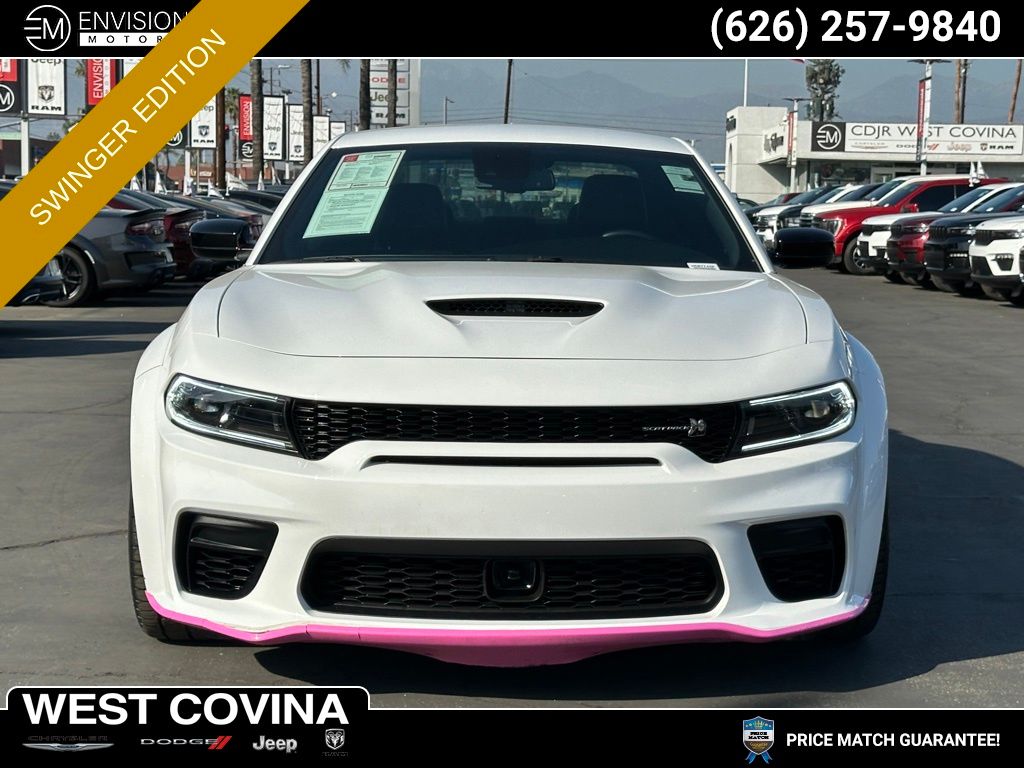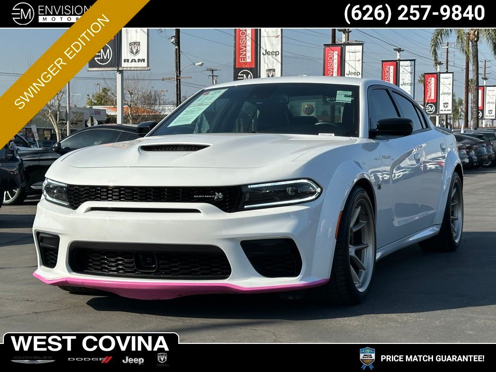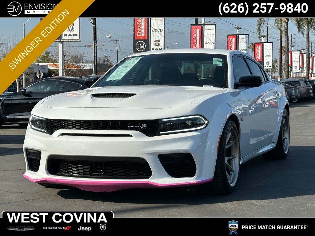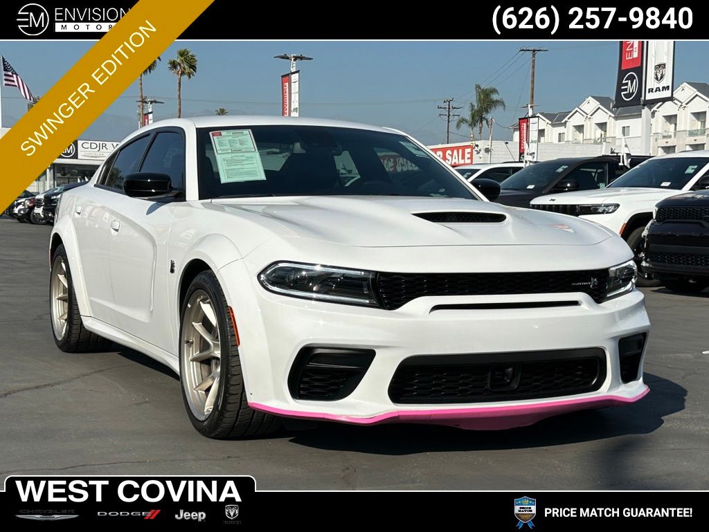 WE SPECIALIZE IN ALL CREDIT PROFILES! See what we can do for you! Call to find out (626) 899-9302.Certified. CARFAX One-Owner. Clean CARFAX.Black Cloth, 1-Yr SiriusXM Guardian Trial, 2-Piece Shark Fin Antenna, 4G LTE Wi-Fi Hot Spot, 5-Year SiriusXM Traffic Service, 5-Year SiriusXM Travel Link Service, 8.4" Touchscreen Display, Adaptive Cruise Control w/Stop, Adaptive Damping Suspension, Advanced Brake Assist, All Speed Traction Control, Aluminum Interior Bezel w/Wood Look, Apple CarPlay, Auto Adjust In Reverse Exterior Mirrors, Auto High Beam Headlamp Control, Auto-Dimming Exterior Driver Mirror, Basil Green IP/Console/Door Stitching, Black-Edged Premium Floormats, Blind Spot & Cross Path Detection, Blind Spot Memory/Power/Heat Mirror, Body Color Fender Flares, Brembo 6-Pot Fixed Front Caliper Brakes, Compass Gauge, Driver & Passenger Lower LED Lamps, Exterior Mirrors Courtesy Lamps, Exterior Mirrors w/Heating Element, Flat-Bottom Steering Wheel, For Details, Visit DriveUconnect.com, Front Overhead LED Lighting, Full Speed FWD Collision Warn Plus, Gold School Bee Fender Badge, Gold School Scat Pack/Bee Decklid Badge, Gold School Scat Pack/Bee Grille Badge, Google Android Auto, GPS Antenna Input, GPS Navigation, HD Radio, Heated Front Seats, Integrated Center Stack Radio, Integrated Voice Command w/Bluetooth, Lane Departure Warning Plus, Media Hub (2 USB, AUX), Nappa Alcantara Seat Trim w/Green Stitch, Navigation & Travel Group, Performance Shift Indicator, Plus Group, Power 2-Way Driver Lumbar Adjust, Power 2-Way Passenger Lumbar Adjust, Power Front Driver/Passenger Seats, Power Tilt/Telescope Steering Column, Premium-Stitched Dash Panel, Quick Order Package 21V Scat Pack Widebody, Radio: Uconnect 4C Nav w/8.4" Display, Radio/Driver Seat/Mirrors Memory, Rain Sensitive Windshield Wipers, Rear Armrest w/Cupholder Seat, Rhombi 2-Pc Wheel Center Cap, Satin Black Dodge Tail Lamp Badge, Scat Pack Logo Nappa/Alcantara Seat, SiriusXM Traffic Plus, SiriusXM Travel Link, Swinger Exterior Vinyl Graphics, Swinger Special Edition, Technology Group, Unique IP Badge, USB Host Flip, Ventilated Front Seats, Wheels: 20" x 11.0" Gold School, Wheels: 20" x 11" Carbon Black Aluminum, Widebody Competition Suspension, Widebody Package.White Knuckle Clearcoat2023 Dodge Charger R/T Scat Pack Widebody RWD 8-Speed Automatic SRT HEMI 6.4L V8 MDSFCA US LLC Certified Pre-Owned Details: * 125 Point Inspection * Limited Warranty: 3 Month/3,000 Mile (whichever comes first) after new car warranty expires or from certified purchase date * Powertrain Limited Warranty: 84 Month/100,000 Mile (whichever comes first) from original in-service date * Vehicle History * Transferable Warranty * Roadside Assistance * Warranty Deductible: $100 * Vehicles Up to 75,000 Miles and/or 5 Model Years. 24-Hour Towing & Roadside Assistance, Car Rental Allowance, CARFAX® Vehicle History ReportTM and an Introductory 3-month Subscription to SiriusXM® Satellite Radio & Certified Warranty Upgrades**********All Pricing and Advertised Prices for any/all vehicles offered for sale does not include dealer installed accessories which can be purchased for an additional cost.********** The Factory Rebates may not be available on this vehicle if you elect to take advantage of a Special Alternative APR or Special Lease program. Some Factory Rebates are California Resident specific and may vary for residents of other states. NO sales to Dealers, Brokers or Exporters. For out of state purchase, customers must be present to purchase. If shipping is required, dealership must facilitate; no exceptions. Please contact us for special Multi-Vehicle or Fleet pricing. Prices are plus government fees and taxes, any finance charges, $85 documentary fee, $29 electronic registration fee, any emission testing charge and $1.75 per new tire state tire fee. *** We make every effort to provide accurate information, but please verify before purchasing. Leasing & financing available on