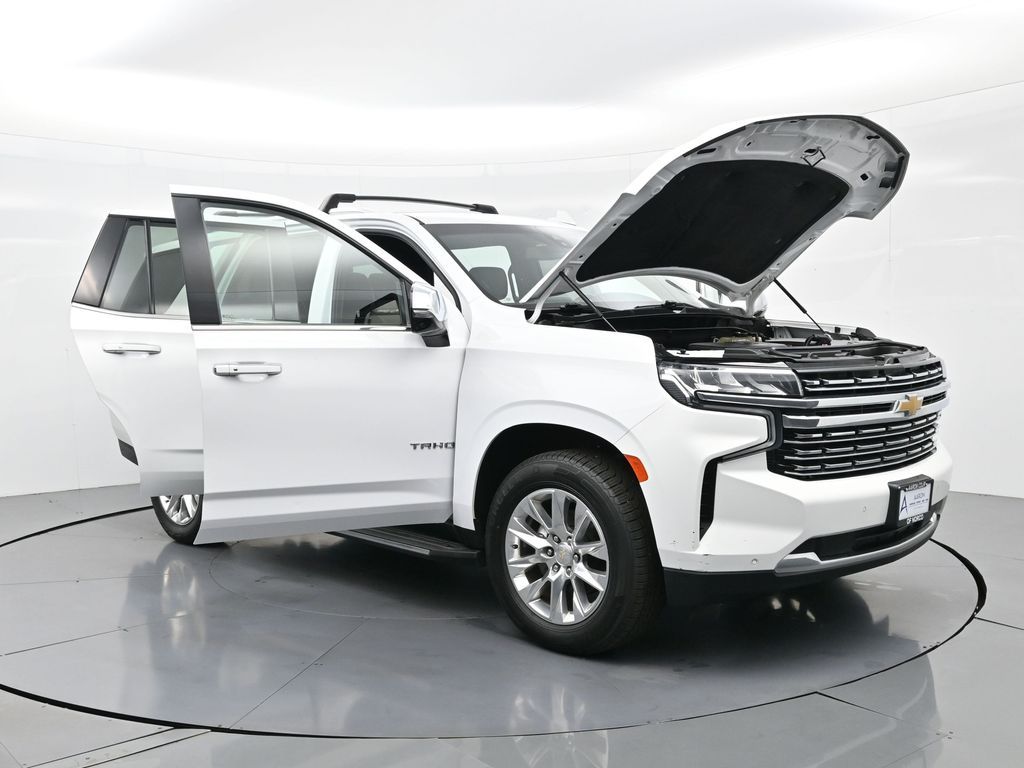 FACTORY WARRANTY, FRESH OIL CHANGE, NEW FILTERS, NEW WIPERS, Tahoe Premier, 4D Sport Utility, EcoTec3 5.3L V8, 10-Speed Automatic with Overdrive, 4WD, 1st & 2nd Row Color-Keyed Carpeted Floor Mats, 2 USB Data Ports, 2-Speed Active Electronic AutoTrac Transfer Case, 20" x 9" Polished Aluminum Wheels, 3rd Row 60/40 Power-Folding Split-Bench Seat, Alloy wheels, Apple CarPlay/Android Auto, Auto-Dimming Inside Rear-View Mirror, Automatic Heated Steering Wheel, Black Roof Rack Cross Rails, Bose 10-Speaker Centerpoint Surround Audio Sys Ft, Bright Front & Rear Door Sill Plates, Chrome Door Handles w/Body-Color Strip, Chrome Mirror Caps, Color-Keyed Carpeting Floor Covering, Driver & Front Outboard Passenger Airbags, Dual Exhaust System, Enhanced Driver Information Center, Floor Console w/Storage Area, Front & Rear Park Assist, Front dual zone A/C, Hands-Free Rear Power Programmable Liftgate, HD Radio, Heated front seats, Heated rear seats, Heated steering wheel, Hill Descent Control, Infotainment Display, Lane Change Alert w/Side Blind Zone Alert, Lane Keep Assist w/Lane Departure Warning, Leather-Wrapped Steering Wheel, LED Daytime Running Lamps, License Plate Front Mounting Package, Memory seat, Memory Settings, Navigation System, Outside Heated Power-Adjustable Mirrors, Power Liftgate, Power Release 2nd Row Bucket Seats, Power Tilt & Telescopic Steering Column, Preferred Equipment Group 1LZ, Radio: Chevrolet Infotainment 3 Premium System, Rear Cross Traffic Alert, Remote Start, Roof rack: rails only, Safety Alert Seat, SiriusXM NavTraffic, SiriusXM Radio w/360L, Universal Home Remote, Ventilated front seats.CARFAX One-Owner.Awards: * JD Power Automotive Performance, Execution and Layout (APEAL) Study * ALG Residual Value