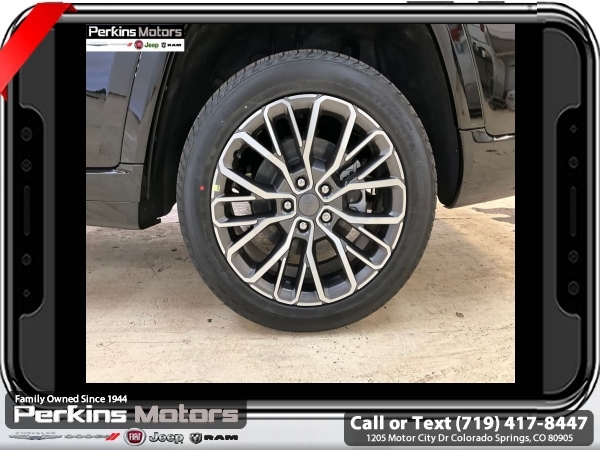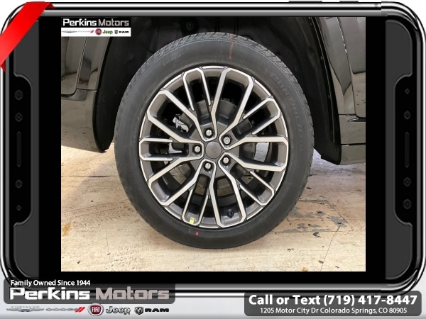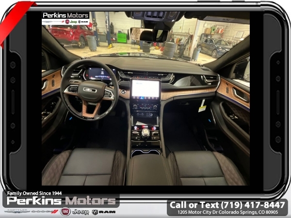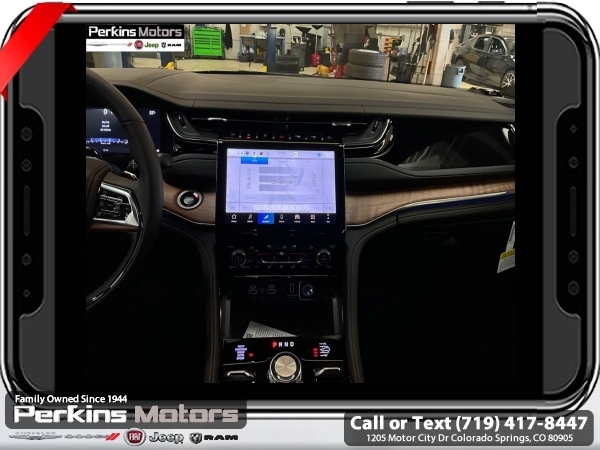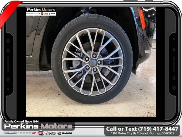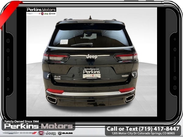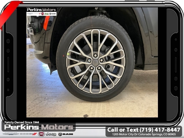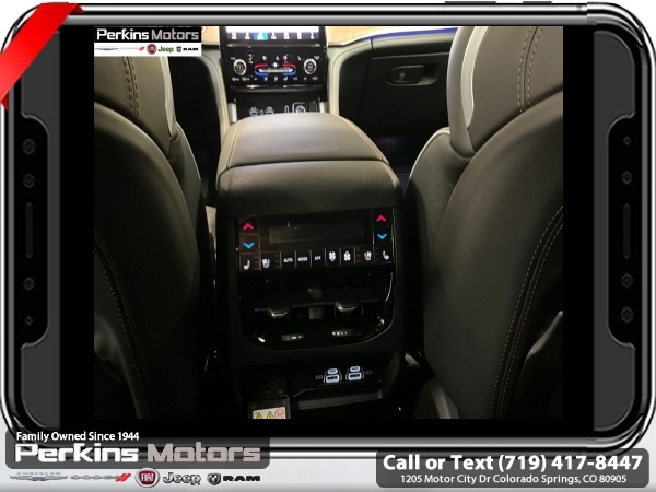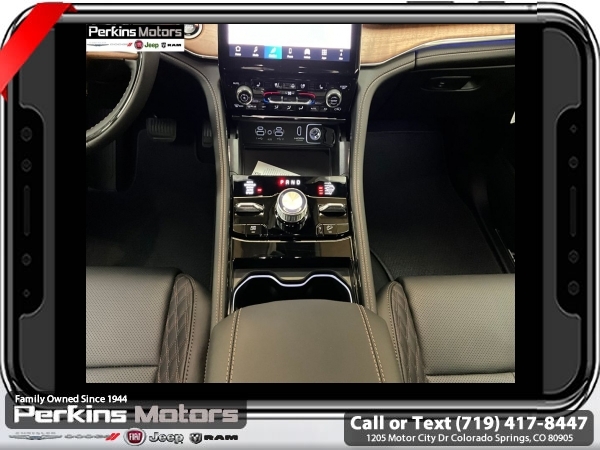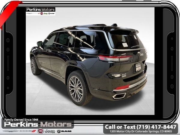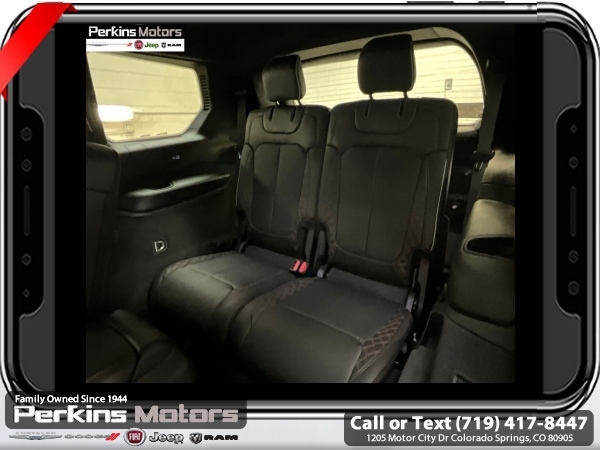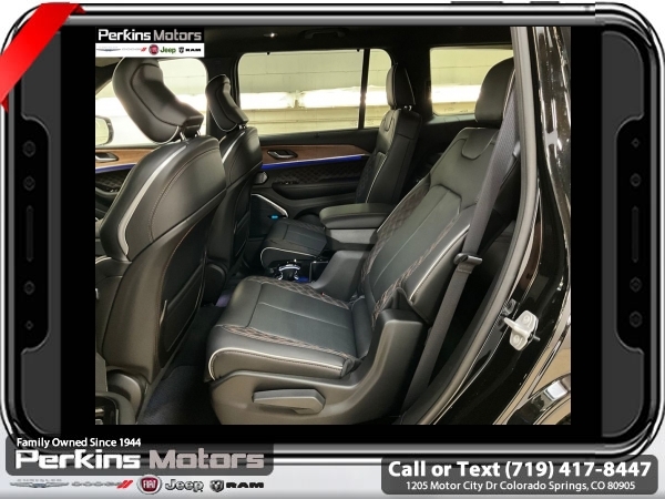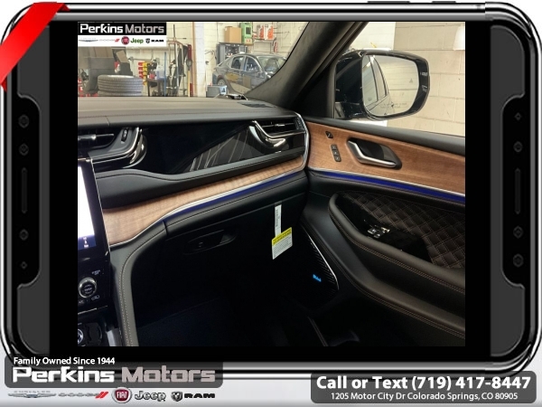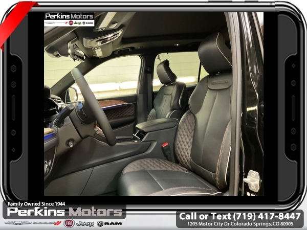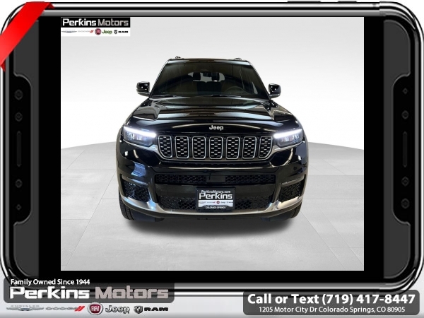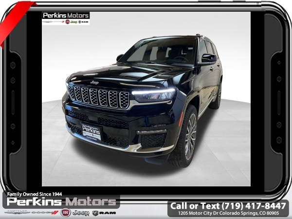 Factory MSRP: $74,195 $8,590 off MSRP! Diamond Black Crystal Pearlcoat 2025 Jeep Grand Cherokee L Summit 4WD 8-Speed Automatic 3.6L V6 24V VVT<br><br>Check us out at www.perkinsmotors.com to see our specials! Since opening our doors in 1944, we’ve been proud to serve Colorado Springs, CO, and the surrounding areas of Pueblo, Castle Rock and Denver, CO. Throughout this time of being family owned for 80 years, we’ve maintained a firm commitment to our customers: to offer a wide selection of New Chrysler, Dodge, Fiat, Jeep, and Ram vehicles and quality pre-owned vehicles, and provide a quick, no-hassle car-buying process that ensures everyone drives off the lot satisfied with their purchase.<br><br>Advanced Protech Group IV (Heads-Up Display, Interior Rear Facing Camera, Night Vision/Pedestrian-Animal Detection, Rearview Autodim Digital Display Mirror, and Windshield Wiper De-Icer), Luxury Tech Group V (2nd Row Manual Window Shades and Wireless Charging Pad), Quick Order Package 23U Summit Reserve (19 Speakers High Performance Audio, 950 Watt Amplifier, Active Noise Control System, Deluxe Headliner, Front Passenger Interactive Display, Palermo Leather Door Trim, Palermo Leather Seats, Summit Reserve, Summit Reserve Badge, Ventilated Rear Seats, and Wheels: 21 x 9.0 Machined Face/Painted Aluminum), Two Tone Paint Group, 10 Speakers, 3.45 Rear Axle Ratio, 3rd row seats: split-bench, 4-Wheel Disc Brakes, ABS brakes, Adaptive suspension, Air Conditioning, Alloy wheels, AM/FM radio: SiriusXM with 360L, Anti-whiplash front head restraints, Audio memory, Auto High-beam Headlights, Auto-dimming door mirrors, Auto-dimming Rear-View mirror, Auto-leveling suspension, Automatic temperature control, Aux Battery, Brake assist, Bumpers: body-color, Compass, Cruise Control, Delay-off headlights, Driver door bin, Driver vanity mirror, Dual front impact airbags, Dual front side impact airbags, Electronic Stability Control, Emergency communication system, Four wheel independent suspension, Front anti-roll bar, Front Bucket Seats, Front Center Armrest w/Storage, Front dual zone A/C, Front fog lights, Front License Plate Bracket, Front reading lights, Fully automatic headlights, Garage door transmitter, Genuine wood dashboard insert, Genuine wood door panel insert, Hands-Free Active Driving Assist System, Heated door mirrors, Heated front seats, Heated rear seats, Heated steering wheel, Illuminated entry, Knee airbag, Leather steering wheel, Low tire pressure warning, Memory seat, Model Year Tracking, Nappa Leather Seats, Navigation System, Normal Duty Suspension, Occupant sensing airbag, Outside temperature display, Overhead airbag, Overhead console, Panic alarm, Passenger door bin, Passenger vanity mirror, Power door mirrors, Power driver seat, Power Fold Seatbacks, Power Liftgate, Power moonroof, Power passenger seat, Power steering, Power windows, Radio data system, Radio: Uconnect 5 Nav w/10.1 Display, Rain sensing wipers, Rear air conditioning, Rear anti-roll bar, Rear dual zone A/C, Rear reading lights, Rear seat center armrest, Rear window defroster, Rear window wiper, Reclining 3rd row seat, Remote keyless entry, Security system, Speed-Sensitive Wipers, Split folding rear seat, Spoiler, Steering wheel memory, Steering wheel mounted audio controls, Tachometer, Telescoping steering wheel, Tilt steering wheel, Traction control, Trip computer, Turn signal indicator mirrors, Variably intermittent wipers, Ventilated front seats, Voltmeter, and Wheels: 20 x 8.5 Fully Painted Aluminum Silver.