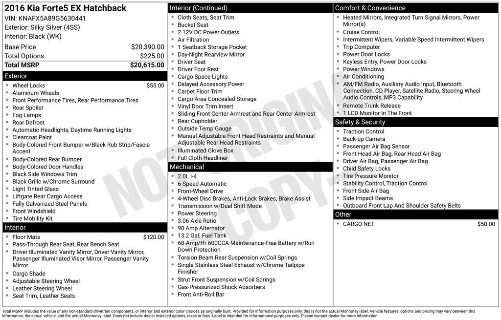 Silky Silver 2016 Kia Forte5 EX FWD 6-Speed Automatic 2.0L I4 DOHC Dual CVVT 17" x 7.0" Alloy Wheels, Exterior Parking Camera Rear, Radio: AM/FM/CD/MP3/SiriusXM Audio System, Remote keyless entry, Spoiler.Odometer is 25960 miles below market average! 25/33 City/Highway MPG