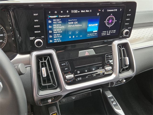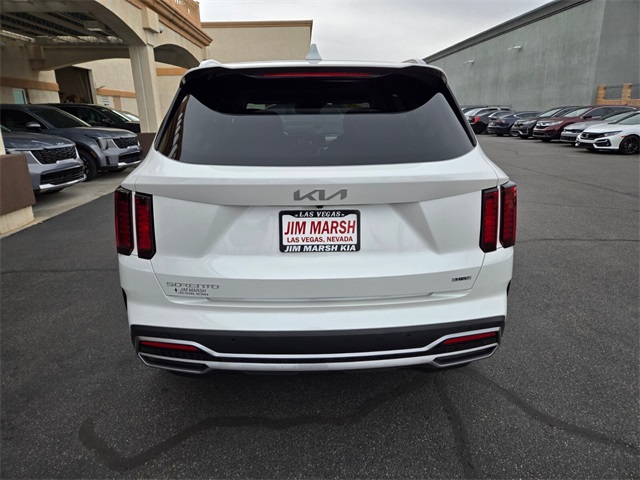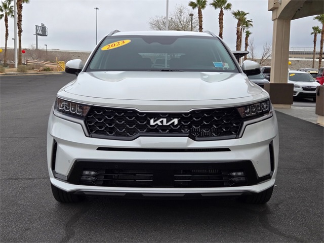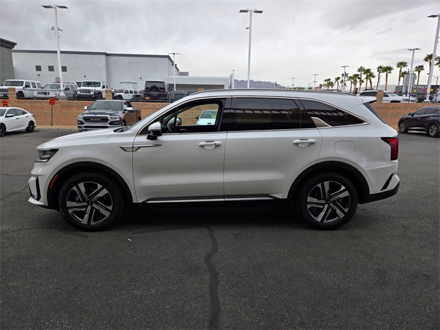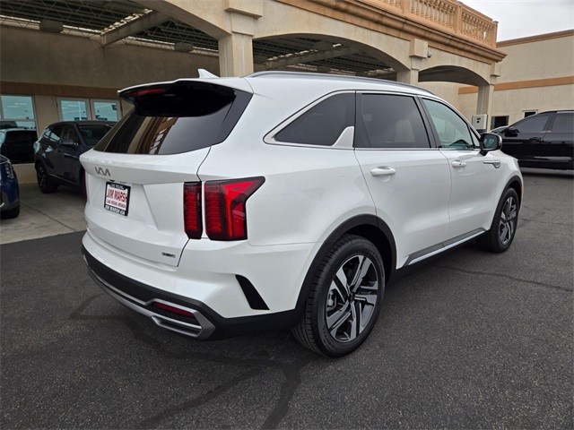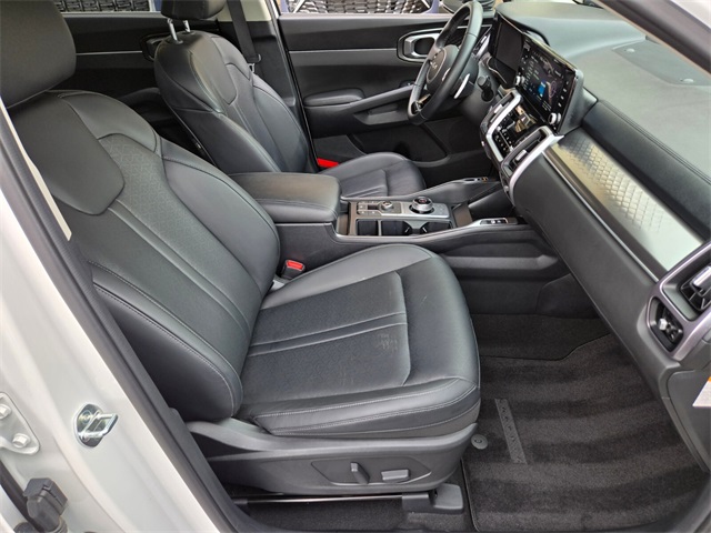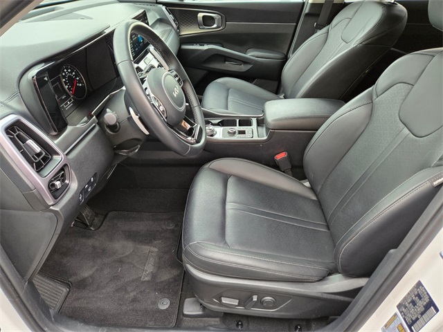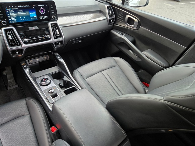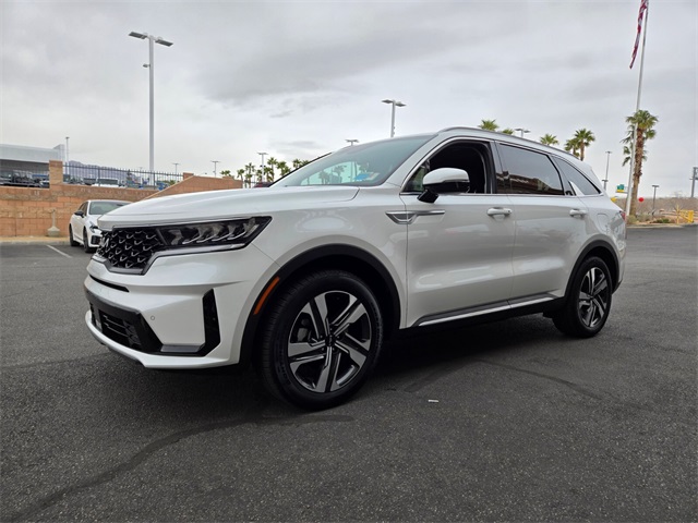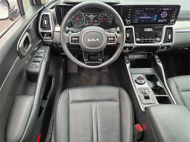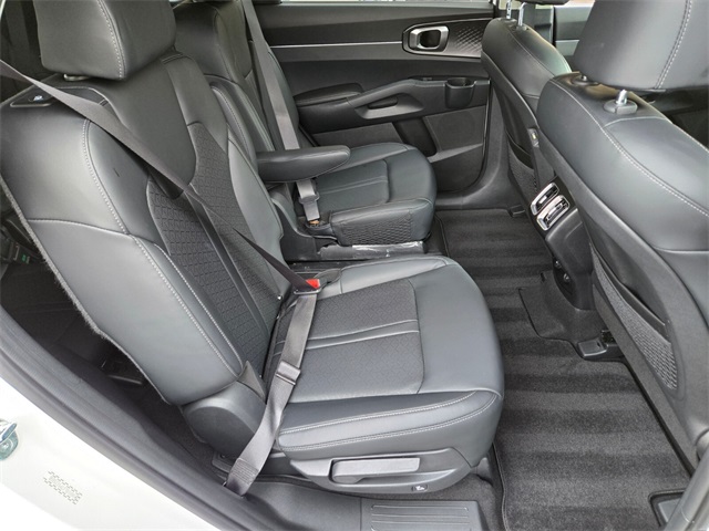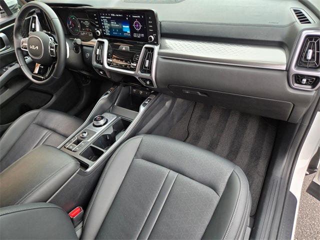 CARFAX One-Owner.Odometer is 13587 miles below market average!36/33 City/Highway MPGSnow White Pearl 2023 Kia Sorento Hybrid EX AWD 6-Speed Automatic 1.6L I4 DGI Hybrid Turbocharged DOHC 16V LEV3-ULEV70 1.6L I4 DGI Hybrid Turbocharged DOHC 16V LEV3-ULEV70.If you don't drive here, you can't save here!Price may not include recon fee. 1.6L I4 DGI Hybrid Turbocharged DOHC 16V LEV3-ULEV70, 3rd row seats: split-bench, 4-Wheel Disc Brakes, 6 Speakers, ABS brakes, Air Conditioning, Alloy wheels, AM/FM radio: SiriusXM, Apple CarPlay & Android Auto, Auto High-beam Headlights, Automatic temperature control, Axle Ratio: 3.510, Brake assist, Bumper Applique Texture, Bumpers: body-color, Carpet Floor Mats, Delay-off headlights, Driver door bin, Driver vanity mirror, Dual front impact airbags, Dual front side impact airbags, Electronic Stability Control, Emergency communication system, Exterior Parking Camera Rear, Four wheel independent suspension, Front anti-roll bar, Front Bucket Seats, Front Center Armrest, Front dual zone A/C, Front fog lights, Front reading lights, Fully automatic headlights, Heated door mirrors, Heated Front Bucket Seats, Heated front seats, Illuminated entry, Knee airbag, Leather steering wheel, Low tire pressure warning, Navigation System, Occupant sensing airbag, Outside temperature display, Overhead airbag, Overhead console, Panic alarm, Passenger door bin, Passenger vanity mirror, Power door mirrors, Power driver seat, Power Liftgate, Power passenger seat, Power steering, Power windows, Radio data system, Radio: AM/FM/HD Radio/SiriusXM Audio System, Rear air conditioning, Rear anti-roll bar, Rear reading lights, Rear window defroster, Rear window wiper, Remote keyless entry, Roof rack: rails only, Security system, Smart Key w/ Push Button and Remote Start, Speed control, Speed-sensing steering, Split folding rear seat, Spoiler, Steering wheel mounted audio controls, SynTex Artificial Leather Seat Trim, Tachometer, Telescoping steering wheel, Tilt steering wheel, Traction control, Trip computer, Turn signal indicator mirrors, Variably intermittent wipers, and Wheels: 19" Machine-Finished Alloy.