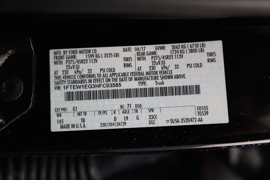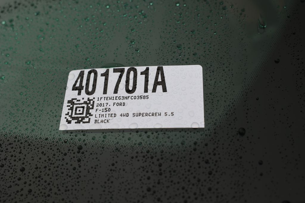 Shadow Black 2017 Ford F-150 Limited 4WD 10-Speed Automatic 3.5L V6 4WD, 22" Polished Aluminum Wheels, Auxiliary Transmission Oil Cooler, Class IV Trailer Hitch Receiver, Engine Oil Cooler, Equipment Group 900A Base, GVWR: 7,000 lbs Payload Package, Heated front seats, Navigation System, Power moonroof, Pro Trailer Backup Assist, SYNC 3, Trailer Tow Package, Upgraded Front Stabilizer Bar, Ventilated front seats.Odometer is 13960 miles below market average!Awards: * 2017 KBB.com Brand Image Awards * 2017 KBB.com 10 Most Awarded Brands
