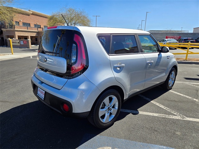 CARFAX One-Owner.26/31 City/Highway MPGBright Silver 2019 Kia Soul FWD 6-Speed Automatic with Sportmatic I4If you don't drive here, you can't save here!Awards: * 2019 KBB.com 5-Year Cost to Own Awards * 2019 KBB.com 10 Coolest New Cars Under $20,000Price may not include recon fee. 16" Alloy Wheels, 4-Wheel Disc Brakes, 6 Speakers, 6-Way Adjustable Driver's Seat, ABS brakes, Air Conditioning, Alloy wheels, AM/FM radio: SiriusXM, Brake assist, Bumpers: body-color, Carpeted Floor Mat, Cloth Seat Trim, Driver door bin, Driver vanity mirror, Dual front impact airbags, Dual front side impact airbags, Electronic Stability Control, Exterior Parking Camera Rear, Front anti-roll bar, Front Bucket Seats, Front Center Armrest, Front reading lights, Front wheel independent suspension, Fully automatic headlights, Illuminated entry, Low tire pressure warning, Occupant sensing airbag, Outside temperature display, Overhead airbag, Overhead console, Panic alarm, Passenger door bin, Passenger vanity mirror, Power door mirrors, Power steering, Power windows, Radio: AM/FM/MP3 Audio System, Rear window defroster, Rear window wiper, Remote keyless entry, Speed control, Speed-sensing steering, Split folding rear seat, Steering wheel mounted audio controls, Tachometer, Telescoping steering wheel, Tilt steering wheel, Traction control, Trip computer, and Variably intermittent wipers.