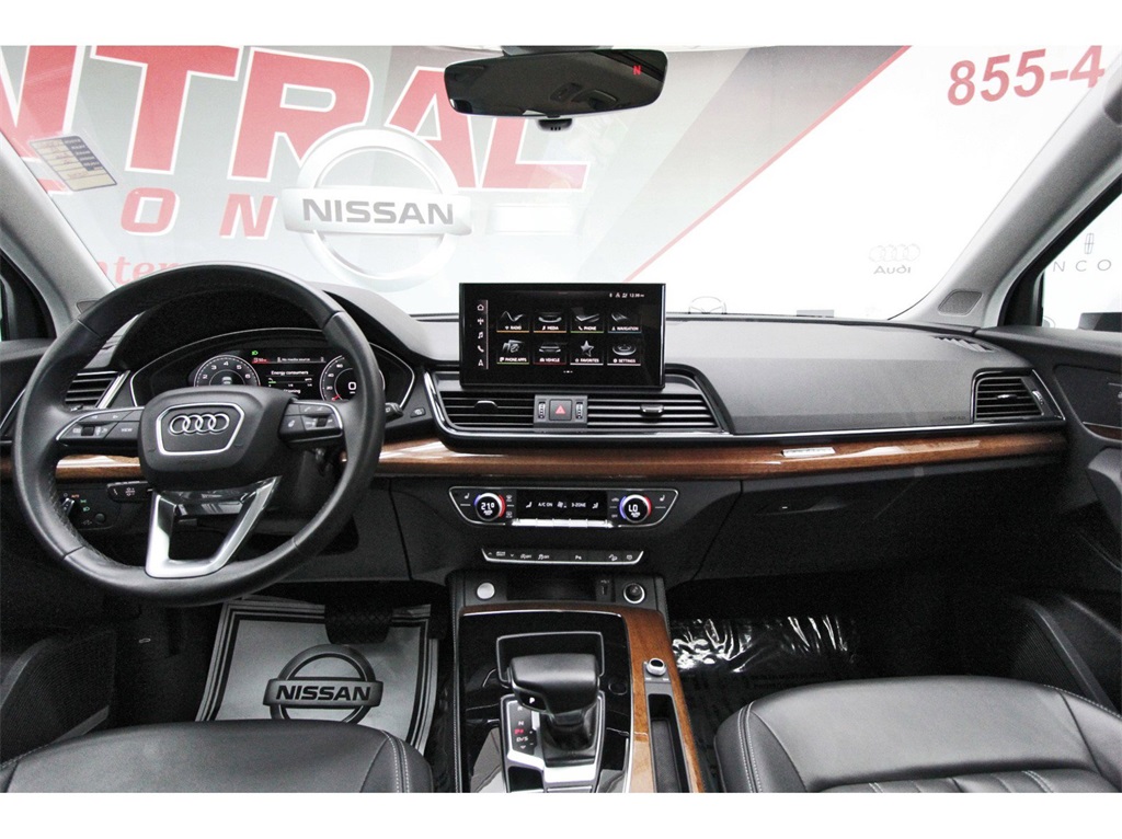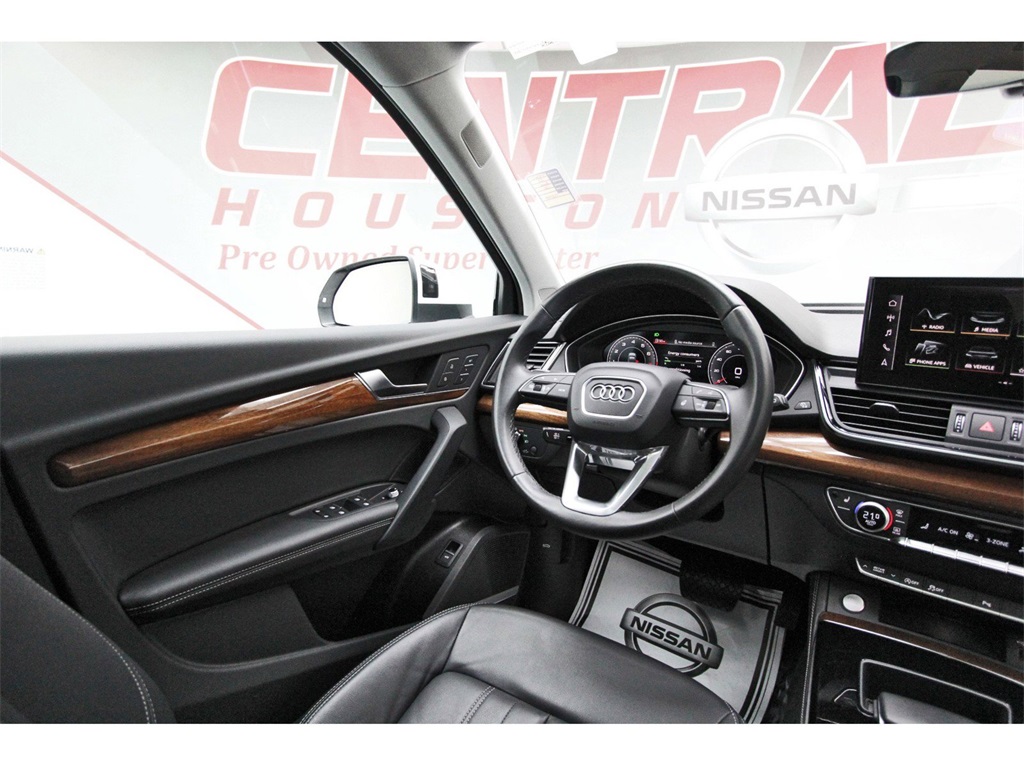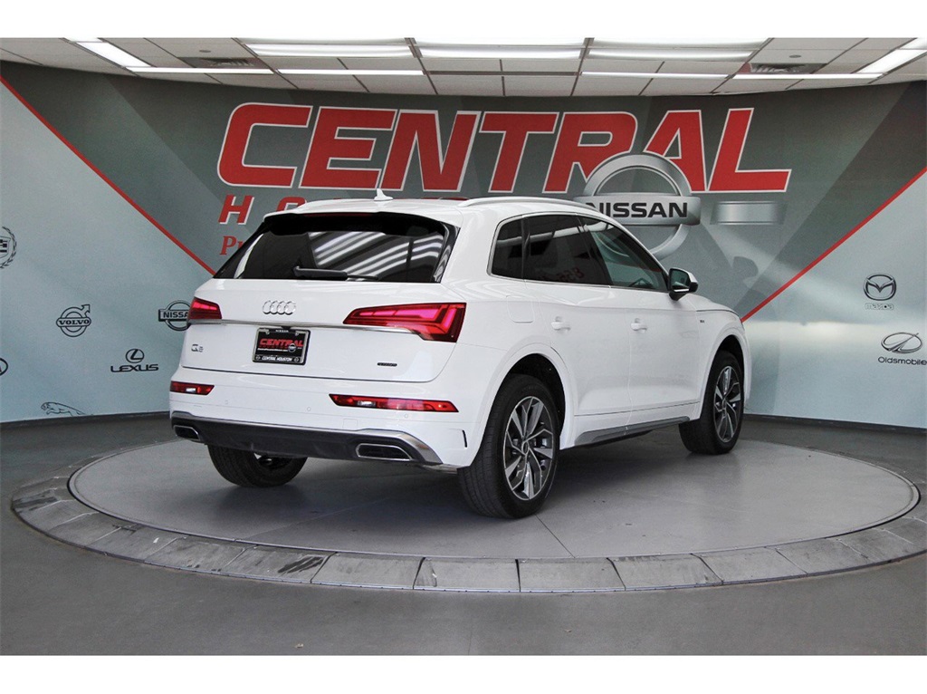 Central Houston Nissan is proud to present you with another True Market Priced Pre-Owned Vehicle. This 2023 Audi Q5 45 S line Premium Plus quattro is loaded with the following Factory Options: Leather, ABS brakes, Active Cruise Control, Alloy wheels, Compass, Electronic Stability Control, Front dual zone A/C, Heated door mirrors, Heated front seats, Illuminated entry, Low tire pressure warning, Power Liftgate, Remote keyless entry, and Traction control Leather, ABS brakes, Active Cruise Control, Alloy wheels, Compass, Electronic Stability Control, Front dual zone A/C, Heated door mirrors, Heated front seats, Illuminated entry, Low tire pressure warning, Power Liftgate, Remote keyless entry, Traction control, 10 Speakers, 4-Wheel Disc Brakes, 5.302 Axle Ratio, Air Conditioning, AM/FM radio, Auto-dimming Rear-View mirror, Automatic temperature control, Brake assist, Bumpers: body-color, Delay-off headlights, Driver door bin, Driver vanity mirror, Dual front impact airbags, Dual front side impact airbags, Emergency communication system: Audi connect CARE, Exterior Parking Camera Rear, Four wheel independent suspension, Front anti-roll bar, Front Bucket Seats, Front Center Armrest, Front fog lights, Front reading lights, Garage door transmitter: HomeLink, Genuine wood console insert, Genuine wood dashboard insert, Genuine wood door panel insert, Heated 8-Way Power Front Bucket Seats, Leather Seating Surfaces, Leather Shift Knob, Occupant sensing airbag, Outside temperature display, Overhead airbag, Overhead console, Panic alarm, Passenger door bin, Passenger vanity mirror, Power door mirrors, Power driver seat, Power passenger seat, Power steering, Power windows, Radio data system, Radio: Audi Sound System, Rain sensing wipers, Rear air conditioning, Rear anti-roll bar, Rear fog lights, Rear reading lights, Rear seat center armrest, Rear window defroster, Rear window wiper, Roof rack, Security system, Speed control, Speed-sensing steering, Speed-Sensitive Wipers, Split folding rear seat, Spoiler, Steering wheel mounted audio controls, Tachometer, Telescoping steering wheel, Tilt steering wheel, Trip computer, Turn signal indicator mirrors, Variably intermittent wipers, and Wheels: 18" 5-Arm-Turbine Design!!Central Houston Nissan is more than just your typical car dealership. When our customers visit us, our goal is to provide quality vehicles, exceptional service and a friendly atmosphere. Our staff has been trained to create ease during your purchase or service experience and we are always making sure you get everything you want and deserve out of your visit. Our vision and mission is an employee-centered and customer-focused environment. Vehicles may be subject to prep package and market adjustment. When you buy from Central Houston Nissan, we'll make it the best car buying experience you've ever had. When you purchase a New Nissan or a qualifying Pre-Owned vehicle from Central Houston Nissan, you are automatically enrolled into our Central Houston Nissan Central Care Program at no cost to you. You can’t beat that! Vehicles may be subject to prep package and market adjustment. Stop by 2901 S Loop W, Houston, Texas 77054 today!!!