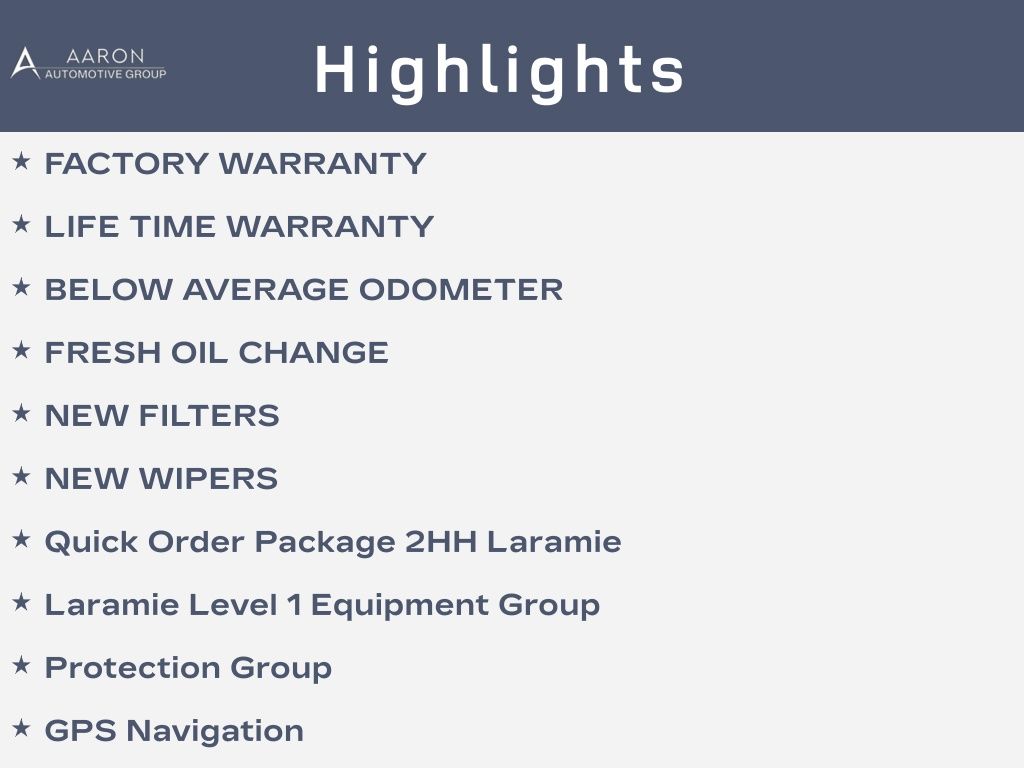 Priced below KBB Fair Purchase Price!FACTORY WARRANTY, LIFE TIME WARRANTY, BELOW AVERAGE ODOMETER, FRESH OIL CHANGE, NEW FILTERS, NEW WIPERS, 2500 Laramie, 4D Crew Cab, Cummins 6.7L I6 Turbodiesel, 6-Speed Automatic, 4WD, 10 Speakers, 115V Auxiliary Rear Power Outlet, 12" Touchscreen Display, 220 Amp Alternator, 2nd Row In Floor Storage Bins, 4G LTE Wi-Fi Hot Spot, Alexa Built-In, Alloy wheels, Apple CarPlay, Auto Adjust In Reverse Exterior Mirrors, Auto Dim Exterior Mirror, Auto High Beam Headlamp Control, Auto Power-Folding Mirrors, Auto-Dimming Exterior Passenger Mirror, Blind Spot & Cross Path Detection, Center Hub, Chrome Exterior Mirrors, Connected Travel & Traffic Services, Connectivity - US/Canada, Disassociated Touchscreen Display, Exterior Mirrors Courtesy Lamps, Exterior Mirrors w/Heating Element, Exterior Mirrors w/Memory, Exterior Mirrors w/Supplemental Signals, Foam Bottle Insert (Door Trim Panel), For Details, Visit DriveUconnect.com, For More Info, Call 800-643-2112, Forward & Reverse Utility Lights, Front dual zone A/C, Front LED Fog Lamps, Global Telematics Box Module (TBM), Google Android Auto, GPS Antenna Input, GPS Navigation, HD Radio, Heated Front Seats, Integrated Voice Command w/Bluetooth, Laramie Level 1 Equipment Group, LED Reflector Headlamps, LED Tail Lamps, Mirror Running Lights, Navigation System, Off-Road Information Pages, Overhead airbag, ParkSense Front/Rear Park Assist System, Power Adjust Mirrors, Power Adjustable Convex Aux Mirrors, Power Adjustable Pedals w/Memory, Power Heated Fold Telescopic Mirrors w/Memory, Power Telescoping Mirrors, Protection Group, Quick Order Package 2HH Laramie, Radio: Uconnect 5 Nav w/12.0" Display, Rain Sensitive Windshield Wipers, Rear Power Sliding Window, Rear Window Defroster, Remote Tailgate Release, Selectable Tire Fill Alert, SiriusXM Radio Service, SiriusXM w/360L, Tow Hooks, Trailer Tow Pages, Wheels: 18" x 8.0" Polished Aluminum.Clean CARFAX.CARFAX One-Owner.