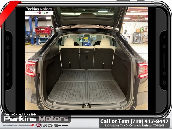 Gray AWD Electric Motor 1-Speed Automatic<br><br>Automatic temperature control, Navigation System, Power Liftgate, Radio: Premium Audio System w/13 Speakers.<br><br><br>Clean CARFAX.<br><br>Check us out at www.perkinsmotors.com to see our specials! Since opening our doors in 1944, we’ve been proud to serve Colorado Springs, CO, and the surrounding areas of Pueblo, Castle Rock and Denver, CO. Throughout this time of being family owned for 80 years, we’ve maintained a firm commitment to our customers: to offer a wide selection of New Chrysler, Dodge, Fiat, Jeep, and Ram vehicles and quality pre-owned vehicles, and provide a quick, no-hassle car-buying process that ensures everyone drives off the lot satisfied with their purchase.<br><br><br>Automatic temperature control, Navigation System, Power Liftgate, Radio: Premium Audio System w/13 Speakers, 14 Speakers, 4-Wheel Disc Brakes, 5 Seat Interior, 9.0 Axle Ratio, ABS brakes, Air Conditioning, Alloy wheels, Audio memory, Auto High-beam Headlights, Auto tilt-away steering wheel, Auto-dimming door mirrors, Auto-dimming Rear-View mirror, Brake assist, Bumpers: body-color, Compass, Cruise Control, Delay-off headlights, Driver door bin, Driver vanity mirror, Dual front impact airbags, Dual front side impact airbags, Electronic Stability Control, Emergency communication system, Exterior Parking Camera Rear, Four wheel independent suspension, Front anti-roll bar, Front Bucket Seats, Front Center Armrest, Front dual zone A/C, Front fog lights, Front reading lights, Fully automatic headlights, Genuine wood dashboard insert, Heated door mirrors, Heated front seats, Heated rear seats, Heated steering wheel, HVAC memory, Illuminated entry, Knee airbag, Lane Departure Warning System, Low tire pressure warning, Memory seat, Occupant sensing airbag, Outside temperature display, Overhead airbag, Passenger door bin, Passenger vanity mirror, Power door mirrors, Power driver seat, Power passenger seat, Power steering, Power windows, Radio data system, Rain sensing wipers, Rear reading lights, Rear seat center armrest, Rear window defroster, Security system, Speed-sensing steering, Split folding rear seat, Steering wheel memory, Steering wheel mounted A/C controls, Steering wheel mounted audio controls, Telescoping steering wheel, Tilt steering wheel, Traction control, Trip computer, Variably intermittent wipers, Vegan Leather Seat Trim, and Wheels: 19 x 9.5 Gemini Dark.