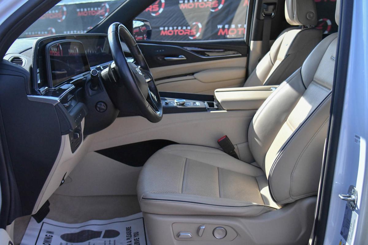 Delivers 18 Highway MPG and 14 City MPG! This Cadillac Escalade delivers a Gas V8 6.2L/375 engine powering this Automatic transmission. WINDOW CONTROL, ALL WINDOWS, EXPRESS-UP/DOWN (auto Express-Up/Down via key fob) (Beginning with start of production, vehicles will be forced to include (00N) Not Equipped with 2nd Row Express-Up Window Control, which removes only 2nd Row Express-Up Window Control functionality. See dealer for details or the window label for the features on a specific vehicle.), WHEELS, 22 (55.9 CM) 14-SPOKE ALLOY WITH POLISHED FINISH (STD), TRANSMISSION, 10-SPEED AUTOMATIC electronically controlled with overdrive, tow/haul mode and tap up/tap down shifting (STD).*This Cadillac Escalade Comes Equipped with These Options *PERFORMANCE PACKAGE includes (UKV) Trailer Side Blind Zone Alert, (G96) electronic limited-slip differential, (JL1) integrated trailer brake controller, (Z95) Magnetic Ride Control, (PZ8) Hitch Guidance with Hitch View and (UET) Smart Trailer Integration Indicator , TRAILER SIDE BLIND ZONE ALERT, TRAILER BRAKE CONTROLLER, INTEGRATED, SUSPENSION, MAGNETIC RIDE CONTROL, SUPER CRUISE a hands-free driver assistance system for use on compatible roads (Beginning with start of production through October 2, 2022, vehicles will be forced to include either (00U) Not Equipped with Super Cruise and/or (02O) Not Equipped with Super Cruise, which will remove Super Cruise and its content. See dealer for details or the window label for the features on a specific vehicle. Always pay attention while driving and when using Super Cruise. Do not use a hand-held device. Visit cadillac.com/supercruise for compatible roads and full details.), SMART TRAILER INTEGRATION INDICATOR, SEATS, SECOND ROW BUCKET, POWER RELEASE (STD), SEATS, FRONT BUCKET (Includes 12-way driver and front passenger adjustments. Beginning with start of production, vehicles will be forced to include (R6S) Not Equipped with 4-Way Driver and Front Passenger Power Lumbar, which removes 4-way driver and front passenger power lumbar. Vehicles will be equipped with 2-way driver and front passenger power lumbar. See dealer for details.) (STD), REAR AXLE, 3.23 RATIO, PREMIUM LUXURY PREFERRED EQUIPMENT GROUP includes standard equipment.