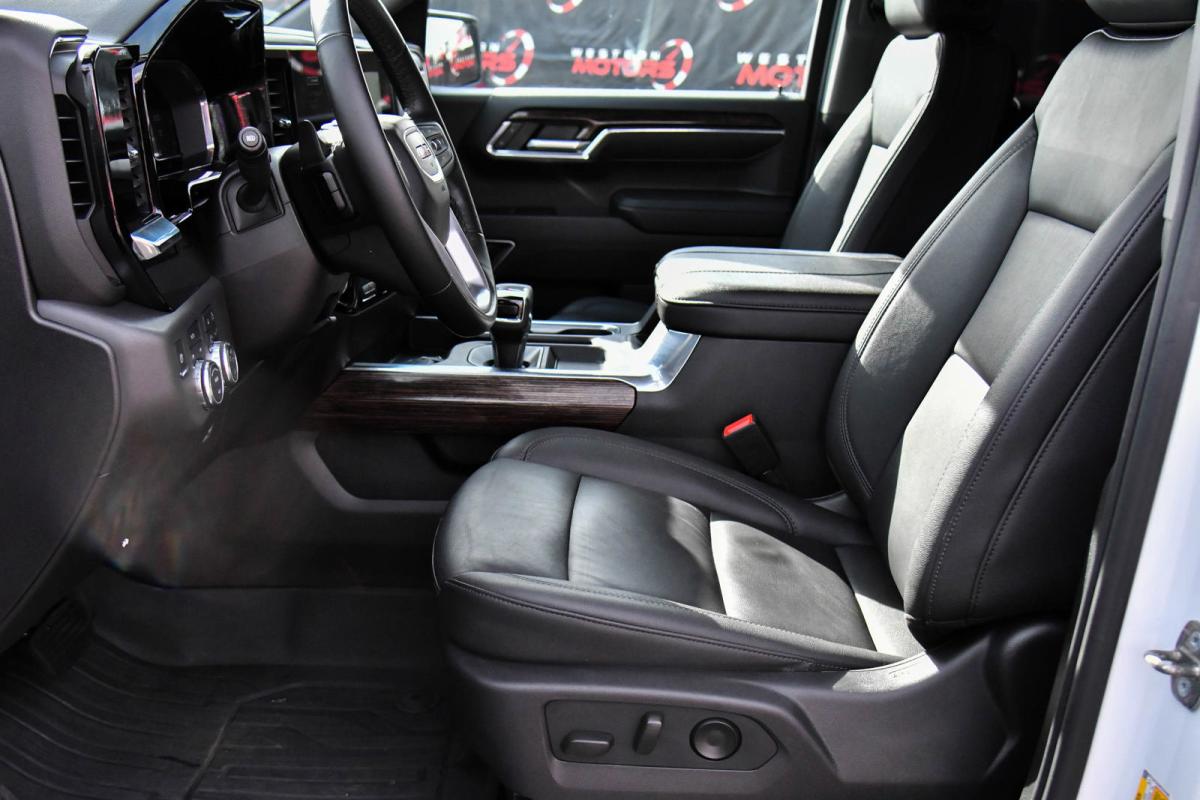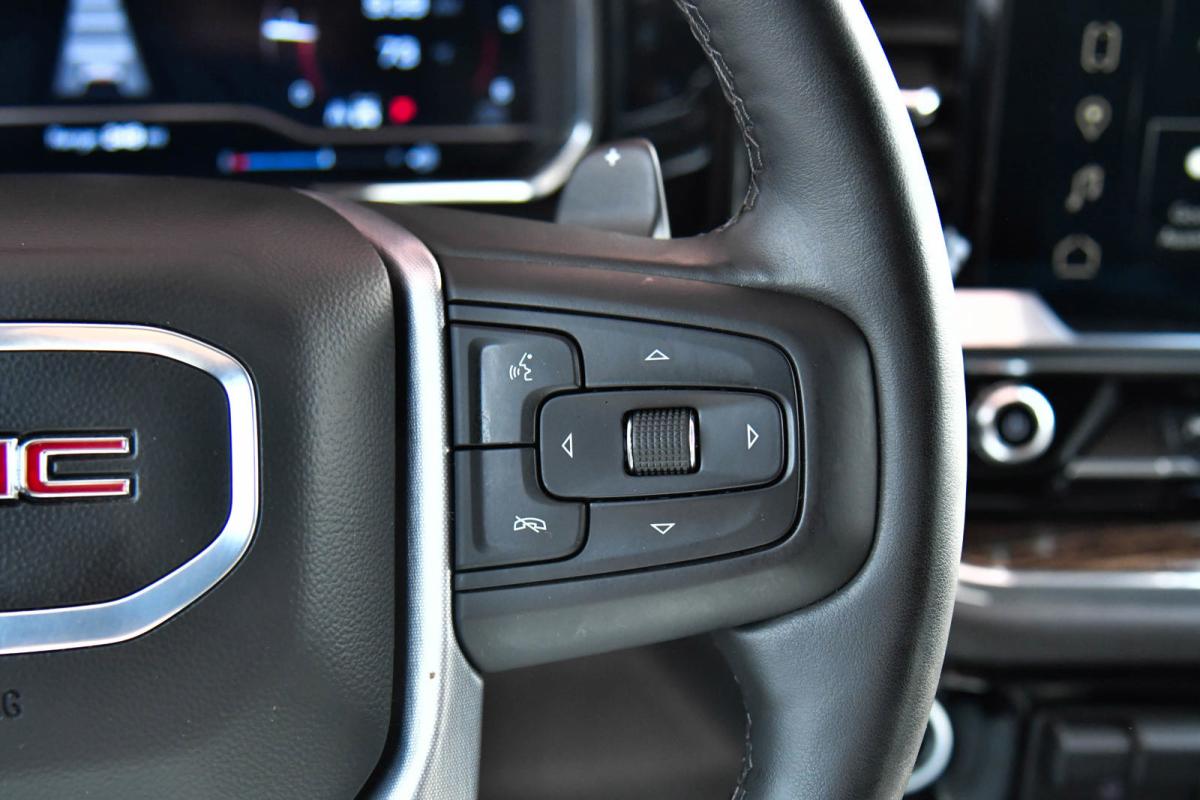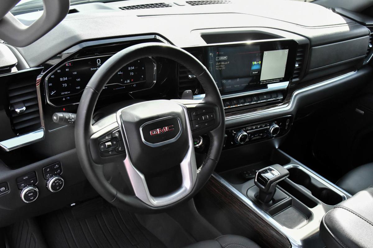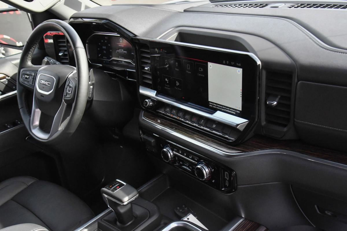 This GMC Sierra 1500 has a powerful Turbocharged Diesel I6 3.0L/ engine powering this Automatic transmission. WIRELESS CHARGING, WINDOW, POWER, REAR SLIDING WITH REAR DEFOGGER, WHEELS, 20 X 9 (50.8 CM X 22.9 CM) 6-SPOKE HIGH GLOSS BLACK PAINTED ALUMINUM (STD).*This GMC Sierra 1500 Comes Equipped with These Options *SIERRA SAFETY PLUS PACKAGE includes (UD5) Front and Rear Park Assist, (UFB) Rear Cross Traffic Braking, (UKK) Rear Pedestrian Alert, (TRG) Trailer Camera Provisions, (UKV) Trailer Side Blind Zone Alert and (UV2) HD Surround Vision (Includes (U12) Perimeter lighting and (DP6) high gloss Black mirror caps., SEAT, UP-LEVEL REAR WITH STORAGE PACKAGE, 60/40 FOLDING BENCH includes full-length bench seat, seatback storage on left and right side, center fold out armrest with 2 cupholders, full cab width under-seat storage, (includes child seat top tether anchor), PREFERRED PACKAGE includes (UG1) Universal Home Remote, (A48) rear sliding power window, (JL1) trailer brake controller, (PZ8) Hitch View, (UET) In-Vehicle Trailering App and (KSG) Adaptive Cruise Control (Includes (B1J) rear wheelhouse liners, (UQA) Bose Premium Audio System., LPO, ELEVATION BLACK PACKAGE includes (RVQ) 6 Black rectangular assist steps, LPO, (RIA) All-weather floor liner, LPO and (SFZ) Black GMC emblems, LPO, (dealer-installed), ELEVATION PREMIUM PACKAGE includes (PDQ) Preferred Package, (H0Y) Jet Black Leather interior, (SNR) Up-level Rear with Storage Package seat, (PED) Sierra Safety Plus Package, (RIA) All Weather Floormats, LPO and, (CGN) spray-on bedliner , WHEELHOUSE LINERS, REAR, USB PORTS, 2, CHARGE/DATA PORTS LOCATED INSIDE CENTER CONSOLE, UNIVERSAL HOME REMOTE, TRANSMISSION, 10-SPEED AUTOMATIC WITH ELECTRONIC PRECISION SHIFT, ELECTRONICALLY CONTROLLED with overdrive, tow/haul mode and steering column paddle shifters. Includes Cruise Grade Braking and Powertrain Grade Braking, TRAILER SIDE BLIND ZONE ALERT.