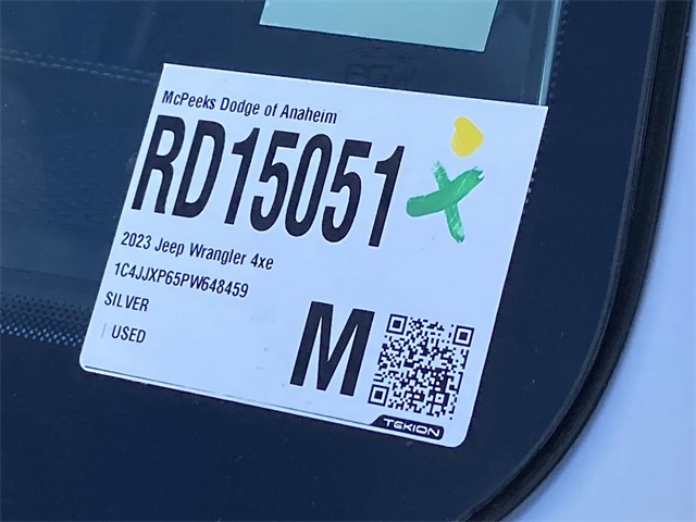 Odometer is 3668 miles below market average! Clean CARFAX. CARFAX One-Owner. INTERIOR & EXTERIOR PROFESSIONALLY DETAILED FOR DELIVERY, MCPEEK CHRYSLER DODGE JEEP RAM FAMILY OWNED AND OPERATED SINCE 1961 !!!!!, 2.0L I4 DOHC, 3.73 Rear Axle Ratio, 4-Wheel Disc Brakes, 7 & 4 Pin Wiring Harness, 700 Amp Maintenance Free Battery, 9 Speakers, ABS brakes, Air Conditioning, Alloy wheels, AM/FM radio: SiriusXM, Apple CarPlay/Android Auto, Auto-dimming Rear-View mirror, Automatic temperature control, Auxiliary Switches, Black 3-Piece Hard Top, Brake assist, Class II Receiver Hitch, Compass, Delay-off headlights, Driver door bin, Driver vanity mirror, Dual front impact airbags, Dual front side impact airbags, Electronic Stability Control, Emergency communication system: SiriusXM Guardian, Freedom Panel Storage Bag, Front anti-roll bar, Front Bucket Seats, Front Center Armrest w/Storage, Front dual zone A/C, Front fog lights, Front License Plate Bracket, Front reading lights, Fully automatic headlights, Garage door transmitter, Heated door mirrors, Illuminated entry, Integrated roll-over protection, Leather Shift Knob, Low tire pressure warning, Mopar Black Tubular Side Steps, Navigation System, Occupant sensing airbag, Outside temperature display, Panic alarm, ParkView Rear Back-Up Camera, Passenger door bin, Passenger vanity mirror, Power door mirrors, Power steering, Power windows, Premium McKinley Trimmed Seats, Quick Order Package 29P Sahara, Radio data system, Radio: Uconnect 4C Nav w/8.4" Display, Rear anti-roll bar, Rear reading lights, Rear seat center armrest, Rear Window Defroster, Rear Window Wiper/Washer, Remote keyless entry, Security system, Speed control, Split folding rear seat, Sport Suspension, Steering wheel mounted audio controls, Tachometer, Telescoping steering wheel, Tilt steering wheel, Traction control, Trailer Tow & Aux Switch Group, Trip computer, Variably intermittent wipers, Voltmeter, Wheels: 20" x 8" Fully Painted Aluminum.Silver Zynith Clearcoat 2023 Jeep Wrangler Sahara 4xe 4WD 8-Speed AutomaticReceive Free lube and oil filter changes for up to 45,000 miles for 3 years!!! McPeek's Dodge of Anahiem 1221 S. Auto Center Drive Anahiem, CA 92806 714-262-4902.