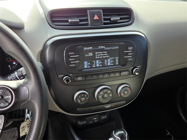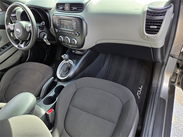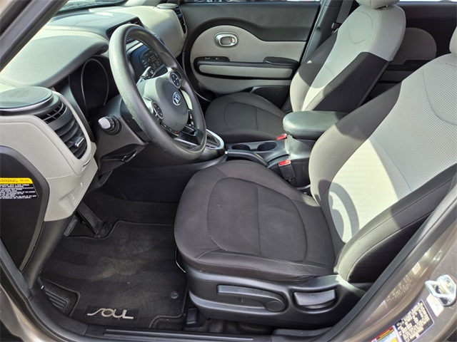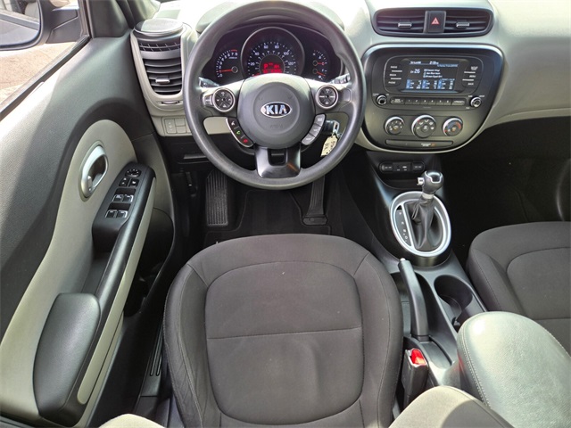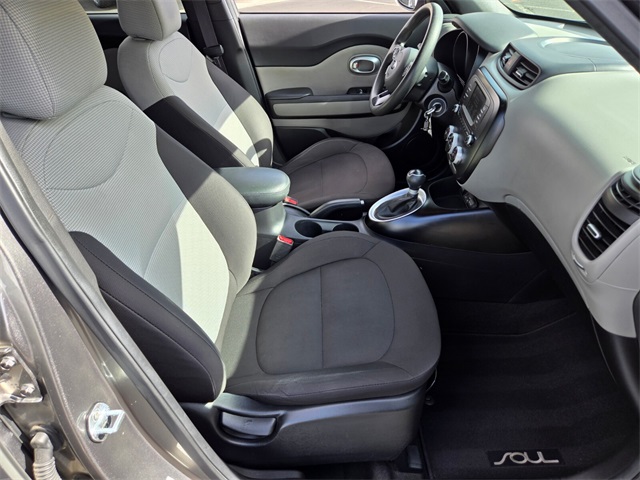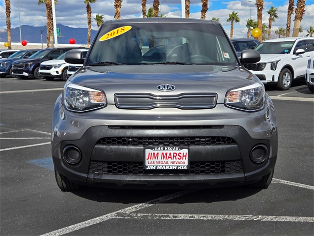 25/30 City/Highway MPGTitanium Gray 2018 Kia Soul FWD 6-Speed Automatic with Sportmatic I4If you don't drive here, you can't save here!Awards: * 2018 KBB.com 10 Best Used Compact Cars Under $15,000 * 2018 KBB.com 10 Coolest New Cars Under $20,000Price may not include recon fee. 16" Alloy Wheels, 4-Wheel Disc Brakes, 6 Speakers, 6-Way Adjustable Driver's Seat, ABS brakes, Air Conditioning, Alloy wheels, AM/FM radio: SiriusXM, Brake assist, Bumpers: body-color, Carpeted Floor Mat, Cloth Seat Trim, Cross Bars, Driver door bin, Driver vanity mirror, Dual front impact airbags, Dual front side impact airbags, Electronic Stability Control, Front anti-roll bar, Front Bucket Seats, Front Center Armrest, Front reading lights, Front wheel independent suspension, Illuminated entry, Low tire pressure warning, Occupant sensing airbag, Outside temperature display, Overhead airbag, Overhead console, Panic alarm, Passenger door bin, Passenger vanity mirror, Power door mirrors, Power steering, Power windows, Radio: AM/FM/MP3 Audio System, Rear window defroster, Rear window wiper, Remote keyless entry, Speed control, Speed-sensing steering, Split folding rear seat, Steering wheel mounted audio controls, Tachometer, Telescoping steering wheel, Tilt steering wheel, Traction control, Trip computer, and Variably intermittent wipers.