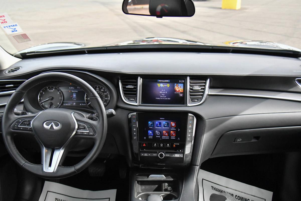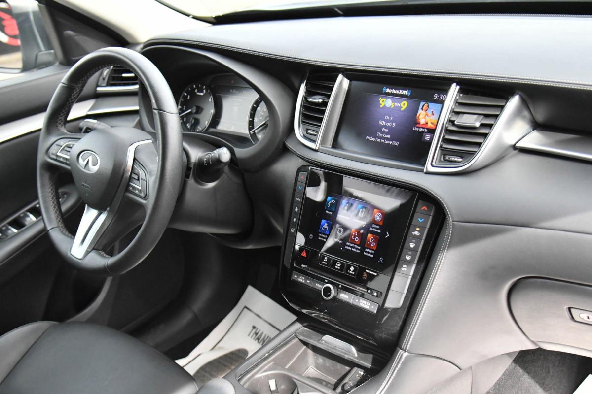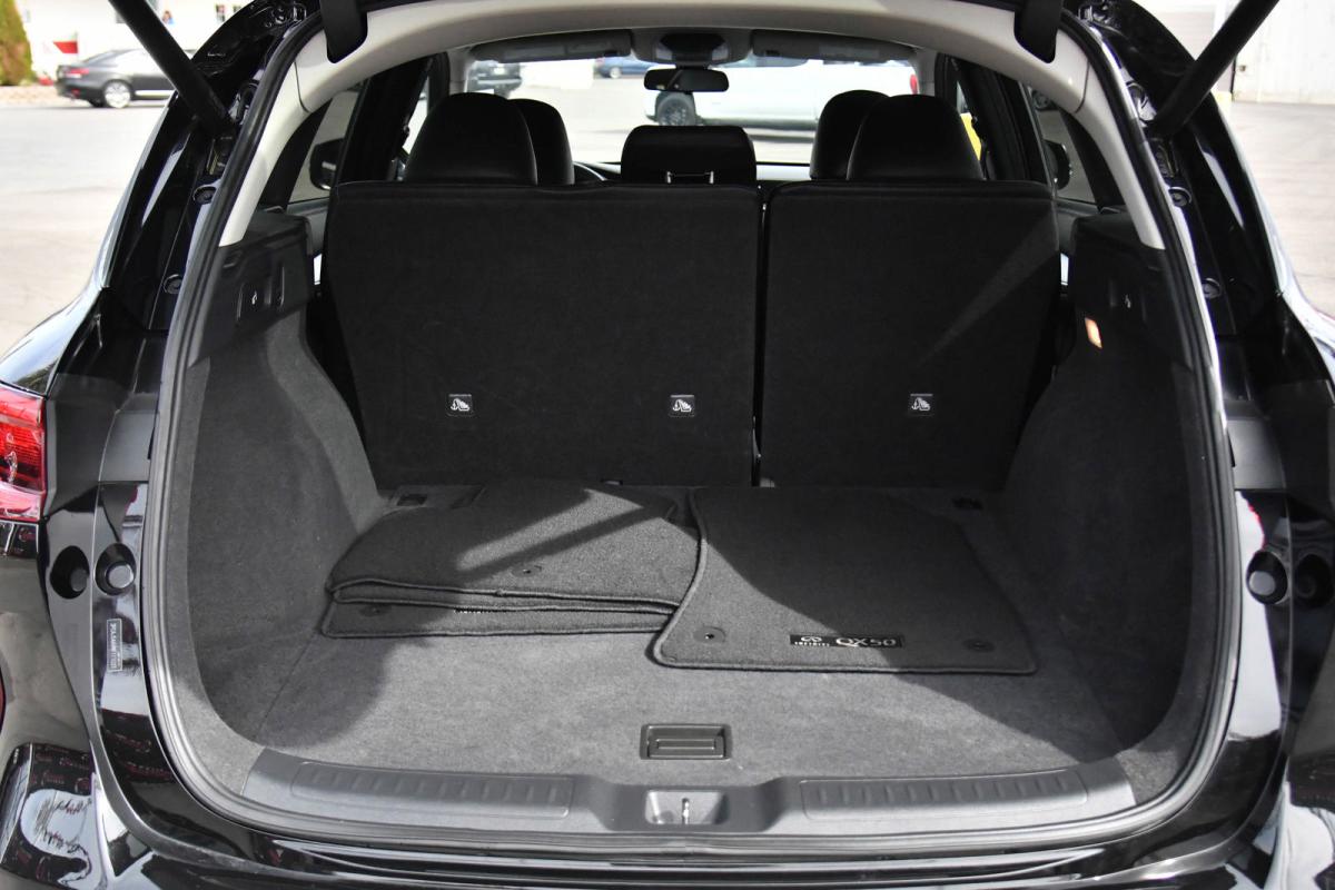 Delivers 29 Highway MPG and 23 City MPG! This INFINITI QX50 boasts a Intercooled Turbo Premium Unleaded I-4 2.0 L/121 engine powering this Variable transmission. GRAPHITE, LEATHERETTE SEAT TRIM, BLACK OBSIDIAN, [S55] LITERATURE KIT.*This INFINITI QX50 Comes Equipped with These Options *[L11] FLOOR MATS, [B92] SPLASH GUARDS (SET OF 4), Wheels: 19 x 7.5J Silver Painted Alloy, Variable Intermittent Wipers, Valet Function, Trunk/Hatch Auto-Latch, Trip Computer, Transmission: Continuously Variable (CVT), Transmission w/Oil Cooler, Tires: P235/55R19 All-Season Run-Flat.