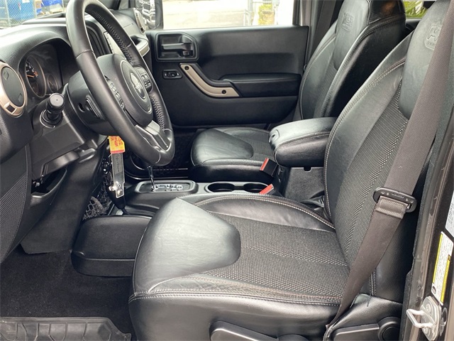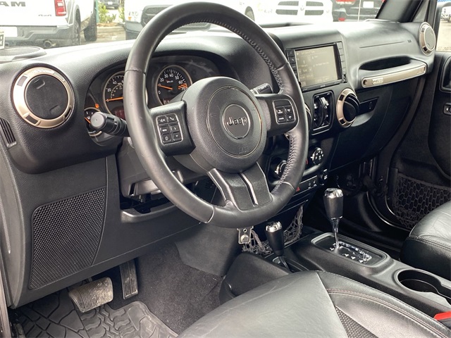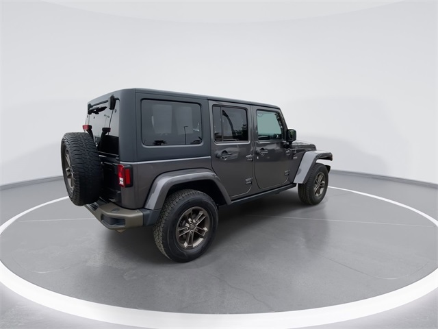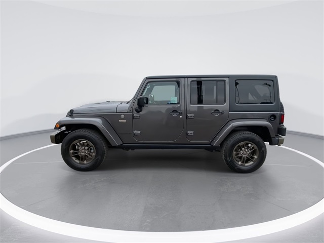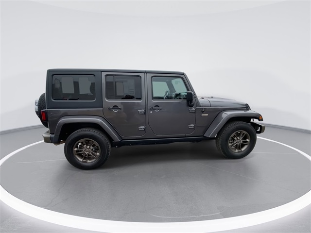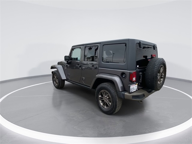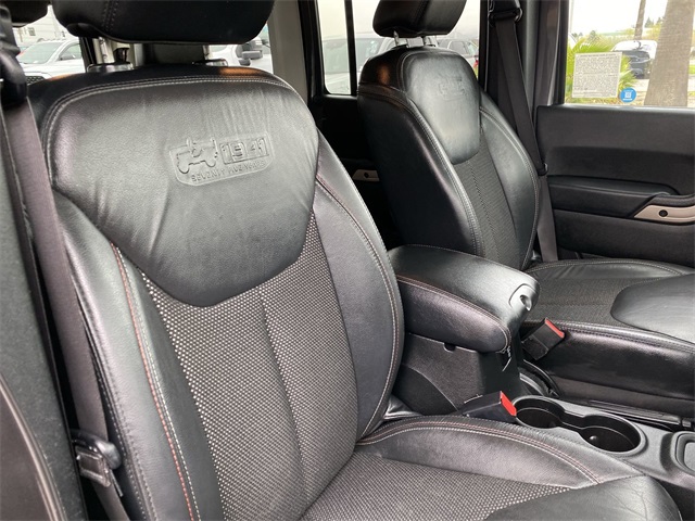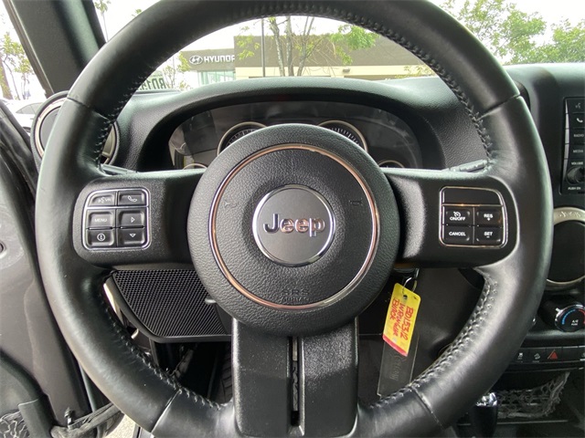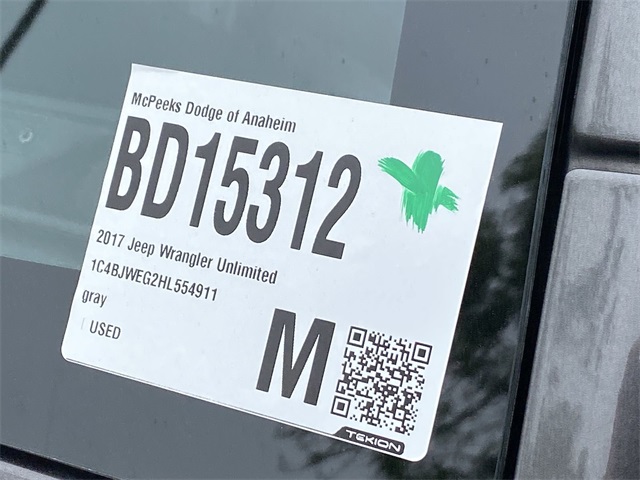 INTERIOR & EXTERIOR PROFESSIONALLY DETAILED FOR DELIVERY, MCPEEK CHRYSLER DODGE JEEP RAM FAMILY OWNED AND OPERATED SINCE 1961 !!!!!, 18" x 7.5" Polished Satin Carbon Wheels, 2 Front & 1 Rear Bronze Tow Hook, 3.21 Rear Axle Ratio, 4-Wheel Disc Brakes, 75th Anniversary Badge, 8 Speakers, ABS brakes, Air Conditioning, Alloy wheels, AM/FM radio: SiriusXM, Anti-Spin Differential Rear Axle, Audio Jack Input for Mobile Devices, Auto-dimming Rear-View mirror, Black 3-Piece Hard Top, Body Color Grille w/Bronze Accent, Brake assist, Bronze Jeep Grille Badge, Bronze Steel Front Bumper, Bronze Steel Rear Bumper, Bronze Trail Rated Badge, CD player, Chrome/Leather Wrapped Shift Knob, Cloth Seats w/Adjustable Head Restraints, Compass, Connectivity Group, Delete Sunrider Soft Top, Driver door bin, Driver Height Adjuster Seat, Driver vanity mirror, Dual front impact airbags, Electronic Stability Control, Freedom Panel Storage Bag, Front anti-roll bar, Front Bucket Seats, Front Center Armrest w/Storage, Front fog lights, Front reading lights, Fully automatic headlights, Heated door mirrors, Heated Front Seats, Heavy Duty Suspension w/Gas Shocks (DISC), Hood w/Power Dome, Illuminated entry, Integrated roll-over protection, IP Grab Handle w/75th Anniversary Logo, Jeep 75th Anniversary Package, Leather Seat w/Cloth (Ombre Mesh) (DISC), Leather steering wheel, Low Gloss Black Wrangler Decal, Low tire pressure warning, MOPAR Slush Mats, Moroccan Sun Instrument Panel Bezel, Moroccan Sun Interior Accents, Occupant sensing airbag, Outside temperature display, Panic alarm, Passenger door bin, Passenger vanity mirror, Power door mirrors, Power steering, Power windows, Premium Black Sunrider Soft Top, Quick Order Package 24H 75th Anniversary (DISC), Radio data system, Radio: 130, Radio: 430 (DISC), Rear anti-roll bar, Rear Window Defroster, Rear Window Wiper/Washer, Remote keyless entry, Remote USB Port, Security system, Speed control, Split folding rear seat, Steering wheel mounted audio controls, Sunrider Soft Top, Tachometer, Tilt steering wheel, Tire Pressure Monitoring Display, Traction control, Trip computer, Uconnect Voice Command w/Bluetooth, Variably intermittent wipers, Vehicle Information Center, Wheels: 17 x 7.5 Aluminum Bronze (DISC).Granite Crystal Metallic Clearcoat 2017 Jeep Wrangler Unlimited 1941 edition 4WD 5-Speed AutomaticAwards: * 2017 KBB.com 10 Most Awarded BrandsReceive Free lube and oil filter changes for up to 45,000 miles for 3 years!!! McPeek's Dodge of Anahiem 1221 S. Auto Center Drive Anahiem, CA 92806 714-262-4902.