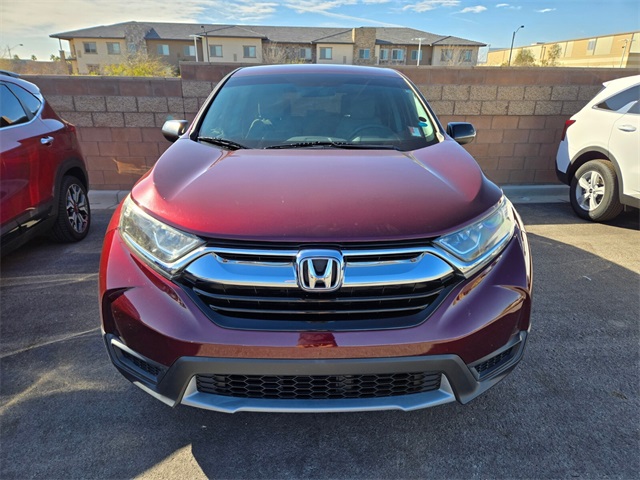 Recent Arrival!Odometer is 29435 miles below market average!26/32 City/Highway MPGRed 2017 Honda CR-V LX FWD CVT 2.4L I4 DOHC 16V i-VTECIf you don't drive here, you can't save here!Awards: * JD Power Automotive Performance, Execution and Layout (APEAL) Study * 2017 KBB.com Brand Image Awards * 2017 KBB.com 10 Most Awarded BrandsKelley Blue Book Brand Image Awards are based on the Brand Watch(tm) study from Kelley Blue Book Market Intelligence. Award calculated among non-luxury shoppers. For more information, visit www.kbb.com. Kelley Blue Book is a registered trademark of Kelley Blue Book Co., Inc.Price may not include recon fee. 17" Alloy Wheels, 4 Speakers, 4-Wheel Disc Brakes, 5.05 Axle Ratio, ABS brakes, Air Conditioning, Alloy wheels, AM/FM radio, Automatic temperature control, Brake assist, Bumpers: body-color, Cloth Seat Trim, Compass, Delay-off headlights, Driver door bin, Driver vanity mirror, Dual front impact airbags, Dual front side impact airbags, Electronic Stability Control, Exterior Parking Camera Rear, Four wheel independent suspension, Front anti-roll bar, Front Bucket Seats, Front Center Armrest, Front reading lights, Illuminated entry, Low tire pressure warning, Occupant sensing airbag, Outside temperature display, Overhead airbag, Overhead console, Panic alarm, Passenger door bin, Passenger vanity mirror, Power door mirrors, Power steering, Power windows, Radio data system, Radio: AM/FM Audio System w/4 Speakers, Rear anti-roll bar, Rear seat center armrest, Rear window defroster, Rear window wiper, Remote keyless entry, Speed control, Speed-sensing steering, Split folding rear seat, Spoiler, Steering wheel mounted audio controls, Tachometer, Telescoping steering wheel, Tilt steering wheel, Traction control, and Trip computer.