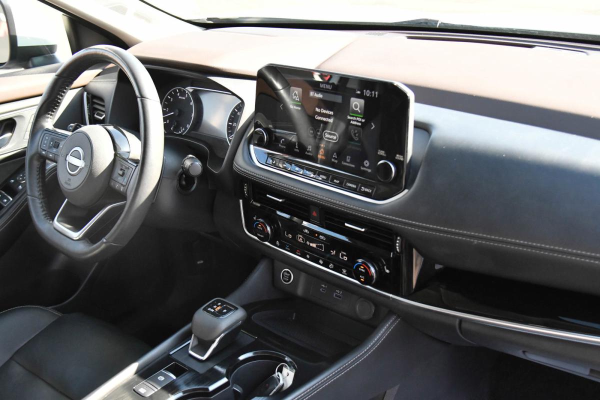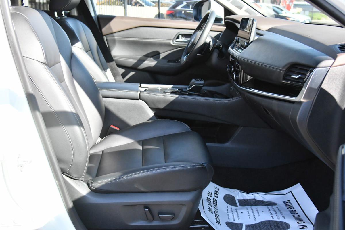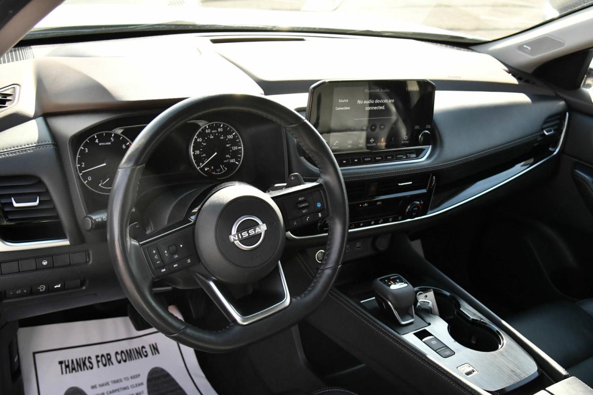 Boasts 36 Highway MPG and 29 City MPG! This Nissan Rogue boasts a Intercooled Turbo Regular Unleaded I-3 1.5 L/91 engine powering this Variable transmission. PEARL WHITE TRICOAT, CHARCOAL, LEATHER-APPOINTED SEAT TRIM, [P02] SL PREMIUM PACKAGE -inc: Rear Door Sunshades, Traffic Sign Recognition, Motion Activated Power Liftgate, Tri-Zone HVAC, ProPILOT Assist w/Navi-link, Front, Side & Rear Sonar, 12 sensors, Radio: AM/FM NissanConnect w/Navigation, 9 color display w/multi-touch control, Nissan door to door navigation w/3D building graphics and satellite imagery featuring online POI search and online premium traffic information and 5 years complimentary map updates, Alexa built in, SiriusXM Traffic, SiriusXM Travel Link, NissanConnect featuring Apple CarPlay and Bluetooth, Bose Premium Audio System, 10-speakers including dual driver subwoofer.*This Nissan Rogue Features the Following Options *Wheels: 19 Aluminum Alloy, Wheels w/Machined w/Painted Accents Accents, Vinyl Door Trim Insert, Urethane Gear Shifter Material, Trunk/Hatch Auto-Latch, Trip Computer, Transmission: Xtronic CVT Automatic -inc: manual mode, Transmission w/Driver Selectable Mode, Tires: 235/55R19 All Season, Tire Specific Low Tire Pressure Warning.