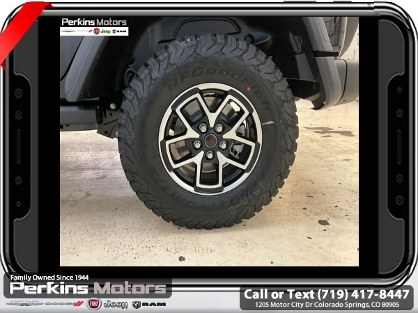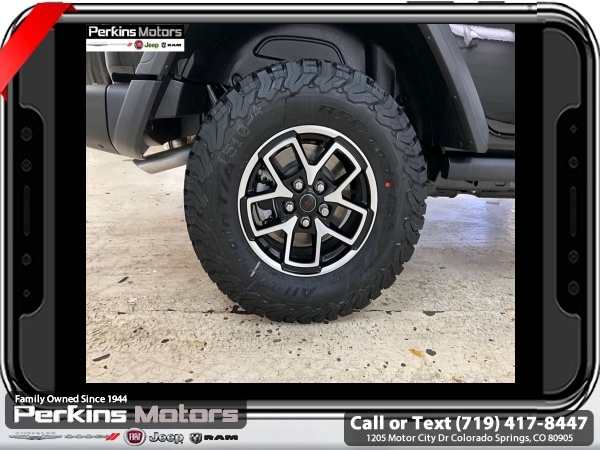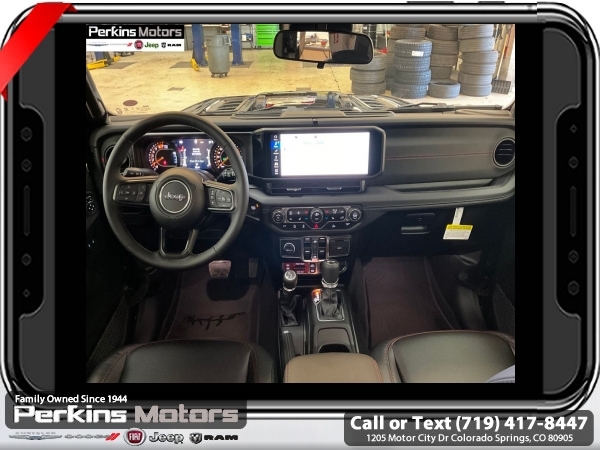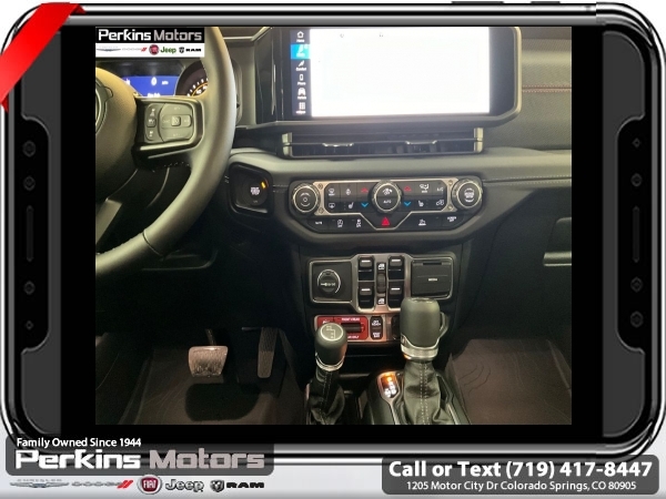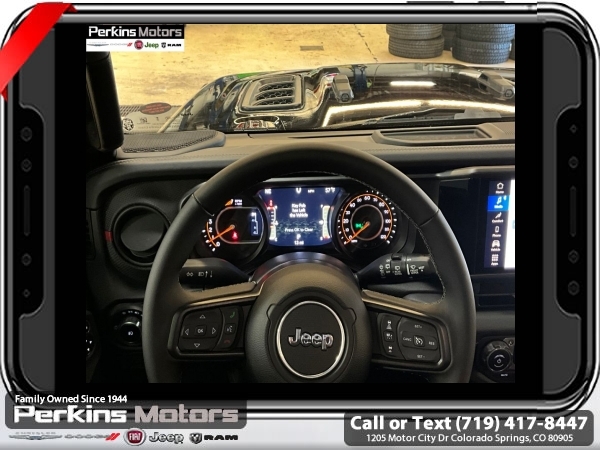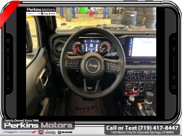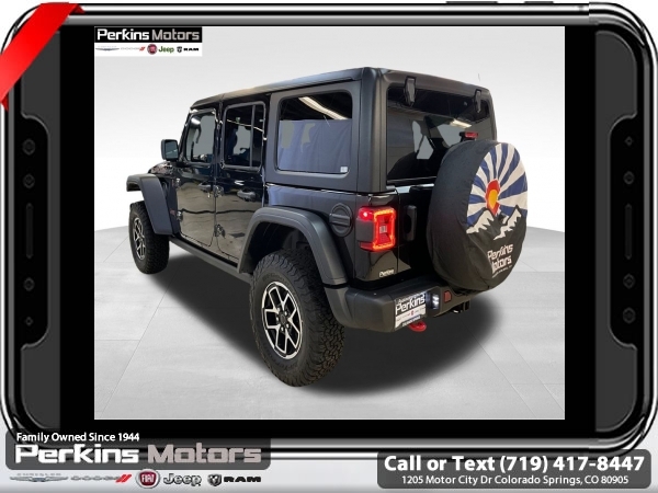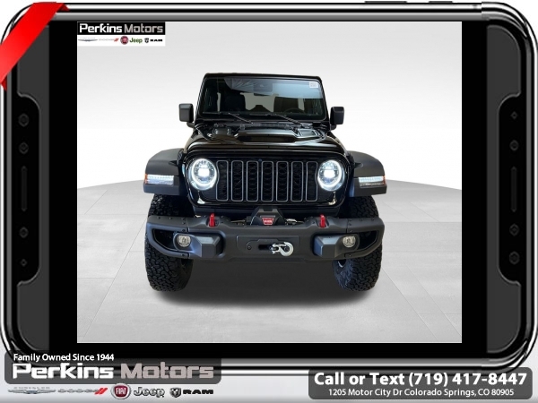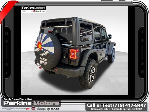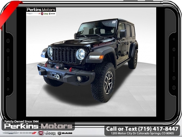 Factory MSRP: $66,590 $8,395 off MSRP! Black Clearcoat 2025 Jeep Wrangler Rubicon 4WD 8-Speed Automatic 2.0L I4 DOHC<br><br>Check us out at www.perkinsmotors.com to see our specials! Since opening our doors in 1944, we’ve been proud to serve Colorado Springs, CO, and the surrounding areas of Pueblo, Castle Rock and Denver, CO. Throughout this time of being family owned for 80 years, we’ve maintained a firm commitment to our customers: to offer a wide selection of New Chrysler, Dodge, Fiat, Jeep, and Ram vehicles and quality pre-owned vehicles, and provide a quick, no-hassle car-buying process that ensures everyone drives off the lot satisfied with their purchase.<br><br>Capability Package (DISC) (Steel Front Bumper, Steel Rear Bumper, and Warn Winch), Convenience Group (Heated Front Seats, Heated Steering Wheel, and Universal Garage Door Opener), Quick Order Package 22R Rubicon, 4-Wheel Disc Brakes, 4.10 Rear Axle Ratio, 4G LTE Wi-Fi Hot Spot, 8 Speakers, 97 MPH Vehicle Max Speed Calibration, ABS brakes, Air Conditioning, Alloy wheels, AM/FM radio: SiriusXM, Apple CarPlay, Apple CarPlay/Android Auto, Automatic temperature control, Aux Battery, Auxiliary Switches, Black 3-Piece Hard Top, Brake assist, Class II Receiver Hitch, Cloth Low-Back Bucket Seats, Compass, Connectivity - US/Canada, Cruise Control, Delay-off headlights, Driver door bin, Driver vanity mirror, Dual front impact airbags, Dual front side impact airbags, Electronic Stability Control, Emergency communication system: Jeep Connect, Freedom Panel Storage Bag, Front anti-roll bar, Front Bucket Seats, Front Center Armrest w/Storage, Front dual zone A/C, Front fog lights, Front License Plate Bracket (DISC), Front reading lights, Fully automatic headlights, Google Android Auto, Heated door mirrors, Illuminated entry, Integrated roll-over protection, Jeep Trail Rated Kit, Low tire pressure warning, MOPAR All-Weather Floor Mats, MOPAR Cargo Tub Liner, MOPAR Hardtop Headliner, MOPAR Hinge-Gate Reinforcement, MOPAR Plastic Door Sill Guards, Non-Lock Fuel Cap w/o Discriminator, Occupant sensing airbag, Outside temperature display, Overhead airbag, Panic alarm, ParkView Rear Back-Up Camera, Passenger door bin, Passenger vanity mirror, Performance Suspension, Power door mirrors, Power steering, Power windows, Radio data system, Radio: Uconnect 5 w/12.3 Display, Rear anti-roll bar, Rear reading lights, Rear Window Defroster, Rear Window Wiper/Washer, Remote keyless entry, Security system, Split folding rear seat, Steering wheel mounted audio controls, Stop-Start Dual Battery System, Tachometer, Telescoping steering wheel, Tilt steering wheel, Traction control, Trip computer, Variably intermittent wipers, Voltmeter, and Wheels: 17 x 7.5 Machined/Painted Black.