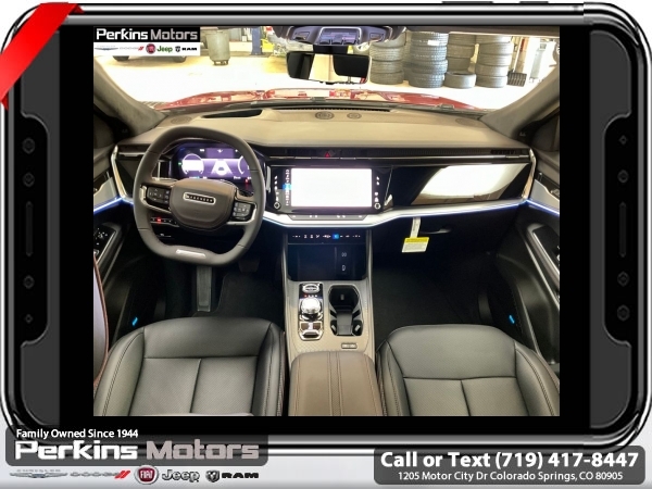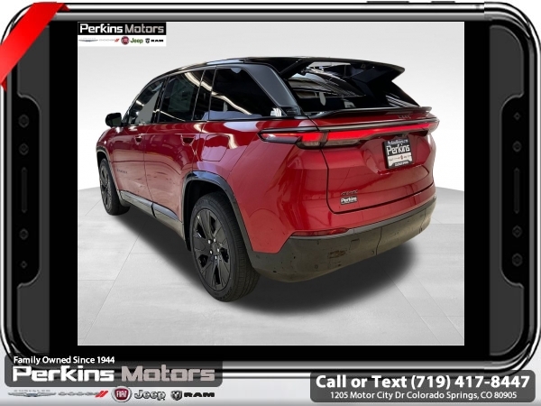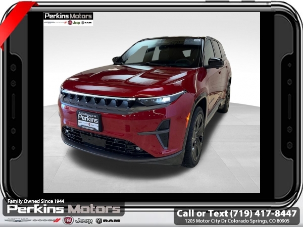 Factory MSRP: $72,590 $21,893 off MSRP! Priced below KBB Fair Purchase Price! Red Hot Pearlcoat 2025 Jeep Wagoneer S Launch Edition 4WD 1-Speed Automatic Electric Motor<br><br>Check us out at www.perkinsmotors.com to see our specials! Since opening our doors in 1944, we’ve been proud to serve Colorado Springs, CO, and the surrounding areas of Pueblo, Castle Rock and Denver, CO. Throughout this time of being family owned for 80 years, we’ve maintained a firm commitment to our customers: to offer a wide selection of New Chrysler, Dodge, Fiat, Jeep, and Ram vehicles and quality pre-owned vehicles, and provide a quick, no-hassle car-buying process that ensures everyone drives off the lot satisfied with their purchase.<br><br>Luxury Group (115V Auxiliary Power Outlet, Digital Rearview Mirror, Front Passenger Interactive Display, Hands Free Power Liftgate, Heads-Up Display, and Roll-Up Tonneau Cover), Quick Order Package 25E, Two Tone Paint Group, 19 Speakers, 4-Wheel Disc Brakes, ABS brakes, Air Conditioning, Alloy wheels, AM/FM radio: SiriusXM with 360L, Apple CarPlay/Android Auto, Audio memory, Auto High-beam Headlights, Auto-dimming door mirrors, Auto-dimming Rear-View mirror, Automatic temperature control, Brake assist, Bumpers: body-color, Compass, Cruise Control, Delay-off headlights, Driver door bin, Driver vanity mirror, Dual front impact airbags, Dual front side impact airbags, Electronic Stability Control, Emergency communication system: Jeep Connect, Four wheel independent suspension, Front anti-roll bar, Front Bucket Seats, Front Center Armrest w/Storage, Front dual zone A/C, Front fog lights, Front reading lights, Fully automatic headlights, Garage door transmitter, Heated door mirrors, Heated front seats, Heated rear seats, Heated steering wheel, Heavy Duty Suspension, Illuminated entry, Knee airbag, Low tire pressure warning, Memory seat, Navigation System, Neo Ultra Lux III Seats, Occupant sensing airbag, Outside temperature display, Overhead airbag, Panic alarm, ParkView Rear Back-Up Camera, Passenger door bin, Passenger vanity mirror, Power door mirrors, Power driver seat, Power Liftgate, Power moonroof, Power passenger seat, Power steering, Power windows, Premium audio system: UConnect 5, Radio data system, Radio: Uconnect 5 Nav w/12.3 Display, Rain sensing wipers, Rear air conditioning, Rear anti-roll bar, Rear dual zone A/C, Rear reading lights, Rear seat center armrest, Rear side impact airbag, Rear window defroster, Rear window wiper, Remote keyless entry, Security system, Speed-sensing steering, Speed-Sensitive Wipers, Split folding rear seat, Spoiler, Steering wheel memory, Steering wheel mounted audio controls, Telescoping steering wheel, Tilt steering wheel, Traction control, Trip computer, Turn signal indicator mirrors, Variably intermittent wipers, Ventilated front seats, Ventilated rear seats, and Wheels: 20 x 8.5 Painted Aluminum Design 1.<br><br>104/90 City/Highway MPG Sale price includes all manufacture's incentives and dealer discounts. Sale price not available on lease or compatible with special APR. $3500 - Colorado Innovative Motor Vehicle Retail Credit. Exp. 12/31/2025 $4500 - 2025 National Retail Consumer Cash. Exp. 06/30/2025 $7500 - 2025 CDJ Federal Tax Credit Purchase FTC251. Exp. 01/05/2026