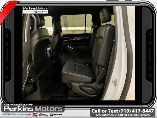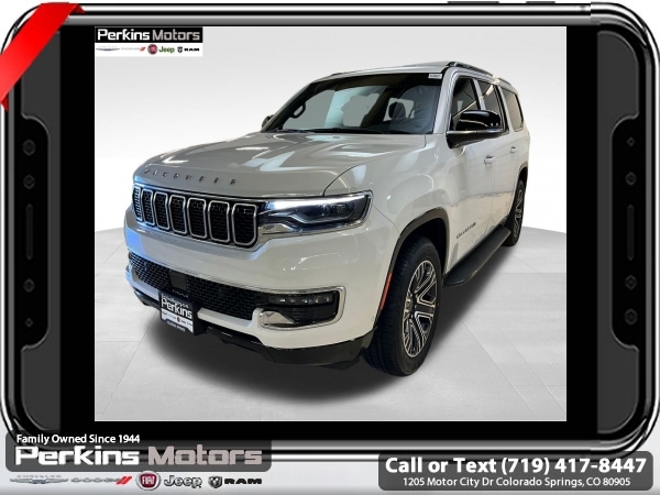 Factory MSRP: $67,945 $4,000 off MSRP! Priced below KBB Fair Purchase Price! Bright White Clearcoat 2025 Jeep Wagoneer L 4WD 8-Speed Automatic 3.0L I6<br><br>Check us out at www.perkinsmotors.com to see our specials! Since opening our doors in 1944, we’ve been proud to serve Colorado Springs, CO, and the surrounding areas of Pueblo, Castle Rock and Denver, CO. Throughout this time of being family owned for 80 years, we’ve maintained a firm commitment to our customers: to offer a wide selection of New Chrysler, Dodge, Fiat, Jeep, and Ram vehicles and quality pre-owned vehicles, and provide a quick, no-hassle car-buying process that ensures everyone drives off the lot satisfied with their purchase.<br><br>Quick Order Package 25E, 10 Speakers, 3.55 Rear Axle Ratio, 3rd row seats: bench, 4-Wheel Disc Brakes, ABS brakes, Air Conditioning, Alloy wheels, AM/FM radio: SiriusXM with 360L, Anti-whiplash front head restraints, Apple CarPlay/Android Auto, Audio memory, Auto Adjust In Reverse Exterior Mirrors, Auto-dimming door mirrors, Auto-Dimming Exterior Driver Mirror, Auto-dimming Rear-View mirror, Auto-leveling suspension, Automatic temperature control, Brake assist, Bumpers: body-color, Compass, Cruise Control, Delay-off headlights, Driver door bin, Driver vanity mirror, Driver's Seat Mounted Armrest, Dual front impact airbags, Dual front side impact airbags, Electronic Stability Control, Emergency communication system: Jeep Connect, Exterior Mirrors Approach Lamps, Exterior Mirrors w/Memory, Exterior Mirrors w/Supplemental Signals, Four wheel independent suspension, Front anti-roll bar, Front Bucket Seats, Front Center Armrest w/Storage, Front dual zone A/C, Front fog lights, Front reading lights, Fully automatic headlights, Garage door transmitter, Heated door mirrors, Heated Exterior Mirrors, Heated front seats, Heated steering wheel, Illuminated entry, Knee airbag, Leather Trimmed Bucket Seats, Low tire pressure warning, Memory seat, Navigation System, Normal Duty Suspension, Occupant sensing airbag, Outside temperature display, Overhead airbag, Overhead console, Panic alarm, ParkView Rear Back-Up Camera, Passenger door bin, Passenger seat mounted armrest, Passenger vanity mirror, Power adjustable front head restraints, Power door mirrors, Power driver seat, Power Liftgate, Power passenger seat, Power steering, Power windows, Radio data system, Radio: Uconnect 5 Nav w/10.1 Display, Rear air conditioning, Rear anti-roll bar, Rear reading lights, Rear seat center armrest, Rear window defroster, Rear window wiper, Reclining 3rd row seat, Remote keyless entry, Security system, Speed-sensing steering, Speed-Sensitive Wipers, Split folding rear seat, Steering wheel memory, Steering wheel mounted audio controls, Tachometer, Telescoping steering wheel, Tilt steering wheel, Traction control, Trip computer, Turn signal indicator mirrors, Variably intermittent wipers, Ventilated front seats, Voltmeter, and Wheels: 20 x 9.0 Premium 2 Aluminum. Sale price includes all manufacture's incentives and dealer discounts. Sale price not available on lease or compatible with special APR. $1000 - 2025 National Jeep Celebration Event Bonus Cash . Exp. 03/31/2025