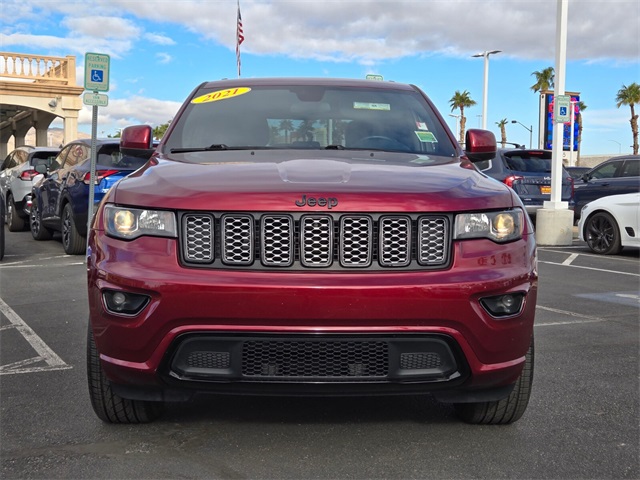 CARFAX One-Owner.Priced below KBB Fair Purchase Price!19/26 City/Highway MPGVelvet Red Pearlcoat 2021 Jeep Grand Cherokee Laredo X RWD 8-Speed Automatic 3.6L V6 24V VVTIf you don't drive here, you can't save here!Price may not include recon fee. Altitude Appearance Package (Altitude Grille, Black Roof Molding, Body Color Claddings, Body Color Fascia, Body Color Shark Fin Antenna, Bridgestone Brand Tires, Dark Day Light Opening Moldings, Dark Headlamp Bezel Finish, Dark Lens Taillamps, Delete Laredo Badge, Front Accent/Body Color Fascia, Gloss Black Jeep Badging, Gloss Black Rear Fascia Applique, Rear Accent/Body Color Fascia, Rear Fascia Black Molded in Color Step Pad, Single Exhaust w/Bright Tip, and Wheels: 20" x 8.0" Gloss Black Aluminum), MOPAR Interior Protection Group, Quick Order Package 2BM Laredo X (1-Year SiriusXM Guardian Trial, 4G LTE Wi-Fi Hot Spot, 5-Year SiriusXM Traffic Service, 5-Year SiriusXM Travel Link Service, 8.4" Touchscreen Display, Apple CarPlay, Black Suede Seats w/Black Stitching, Google Android Auto, GPS Antenna Input, GPS Navigation, HD Radio, Heated Front Seats, Heated Steering Wheel, Integrated Voice Command w/Bluetooth, Power Liftgate, Radio: Uconnect 4C Nav w/8.4" Display, Remote Start System, Security Alarm, SiriusXM Satellite Radio, SiriusXM Traffic Plus, SiriusXM Travel Link, Steering Wheel Mounted Audio Controls, and Universal Garage Door Opener), Trailer Tow Group IV (180 Amp Alternator, 7 & 4 Pin Wiring Harness, Class IV Receiver Hitch, Heavy-Duty Engine Cooling, Normal Duty Suspension, and Rear Load Leveling Suspension), 3.27 Rear Axle Ratio, 4-Wheel Disc Brakes, 6 Speakers, ABS brakes, Air Conditioning, Alloy wheels, AM/FM radio: SiriusXM, Anti-whiplash front head restraints, Apple CarPlay/Android Auto, Automatic temperature control, Brake assist, Bumpers: body-color, Cloth Bucket Seats, Compass, Delay-off headlights, Driver door bin, Driver vanity mirror, Dual front impact airbags, Dual front side impact airbags, Eco Suspension I, Electronic Stability Control, Four wheel independent suspension, Front anti-roll bar, Front Bucket Seats, Front Center Armrest w/Storage, Front dual zone A/C, Front fog lights, Front License Plate Bracket, Front reading lights, Fully automatic headlights, Heated door mirrors, Illuminated entry, Knee airbag, Leather Shift Knob, Low tire pressure warning, MOPAR Cargo Area Liner (DISC), MOPAR Slush Mats (DISC), Occupant sensing airbag, Outside temperature display, Overhead airbag, Overhead console, Panic alarm, ParkView Rear Back-Up Camera, Passenger door bin, Passenger vanity mirror, Power door mirrors, Power driver seat, Power steering, Power windows, Radio data system, Radio: Uconnect 4 w/7" Display, Rear anti-roll bar, Rear reading lights, Rear seat center armrest, Rear window defroster, Rear window wiper, Remote keyless entry, Roof rack: rails only, Speed control, Speed-sensing steering, Speed-Sensitive Wipers, Split folding rear seat, Spoiler, Steering wheel mounted audio controls, Tachometer, Telescoping steering wheel, Tilt steering wheel, Traction control, Trip computer, Variably intermittent wipers, and Wheels: 18" x 8.0" Fine Silver Aluminum.