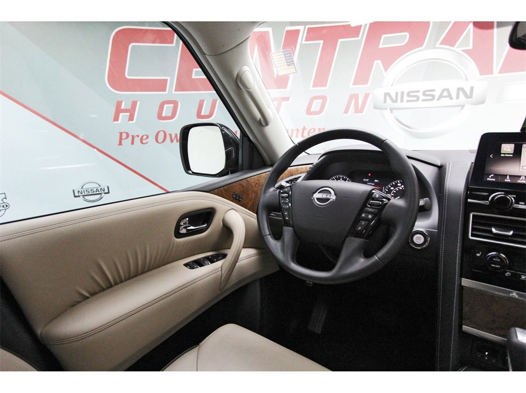 Central Houston Nissan is proud to present you with another True Market Priced Pre-Owned Vehicle. This 2022 Nissan Armada SL is loaded with the following Factory Options: Captain's Chairs Package (2nd Row Captain's Chairs and 2nd Row Center Console w/Padded Armrest), 13 Speakers, 2.94 Axle Ratio, 3rd Row Carpeted Floor Mats - Captain Seat, 3rd row seats: split-bench, 4-Wheel Disc Brakes, ABS brakes, Air Conditioning, Alloy wheels, AM/FM radio: SiriusXM, Anti-whiplash front head restraints, Auto High-beam Headlights, Auto tilt-away steering wheel, Auto-dimming door mirrors, Auto-dimming Rear-View mirror, Auto-leveling suspension, Automatic temperature control, Brake assist, Bumpers: body-color, Delay-off headlights, Driver door bin, Driver vanity mirror, Dual front impact airbags, Dual front side impact airbags, Electronic Stability Control, Emergency communication system: NissanConnect Services, Exterior Parking Camera Rear, Four wheel independent suspension, Front anti-roll bar, Front Bucket Seats, Front Center Armrest, Front dual zone A/C, Front fog lights, Front reading lights, Fully automatic headlights, Garage door transmitter: HomeLink, Heated door mirrors, Heated Front Bucket Seats, Heated front seats, Illuminated entry, Illuminated Kick Plates, Knee airbag, Leather Shift Knob, Leather-Appointed Seat Trim, Low tire pressure warning, Memory seat, Navigation System, NissanConnect featuring Apple CarPlay and Android Auto, Occupant sensing airbag, Outside temperature display, Overhead airbag, Overhead console, Panic alarm, Passenger door bin, Passenger vanity mirror, Power door mirrors, Power driver seat, Power Liftgate, Power moonroof, Power passenger seat, Power steering, Power windows, Radio: NissanConnect w/SiriusXM, Rear air conditioning, Rear anti-roll bar, Rear reading lights, Rear seat center armrest, Rear window defroster, Rear window wiper, Reclining 3rd row seat, Remote keyless entry, Roof Rail Cross Bars, Security system, Speed control, Speed-sensing steering, Speed-Sensitive Wipers, Split folding rear seat, Spoiler, Steering wheel memory, Steering wheel mounted audio controls, Tachometer, Telescoping steering wheel, Tilt steering wheel, Traction control, Trip computer, Turn signal indicator mirrors, Variably intermittent wipers, Voltmeter, and Wheels: 20" x 8J Painted Alloy!!Central Houston Nissan is more than just your typical car dealership. When our customers visit us, our goal is to provide quality vehicles, exceptional service and a friendly atmosphere. Our staff has been trained to create ease during your purchase or service experience and we are always making sure you get everything you want and deserve out of your visit. Our vision and mission is an employee-centered and customer-focused environment. Vehicles may be subject to prep package and market adjustment. When you buy from Central Houston Nissan, we'll make it the best car buying experience you've ever had. When you purchase a New Nissan or a qualifying Pre-Owned vehicle from Central Houston Nissan, you are automatically enrolled into our Central Houston Nissan Central Care Program at no cost to you. You can’t beat that! Vehicles may be subject to prep package and market adjustment. Stop by 2901 S Loop W, Houston, Texas 77054 today!!!
