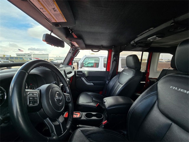 Recent Arrival!Priced below KBB Fair Purchase Price!Odometer is 17130 miles below market average!Firecracker Red Clearcoat 2018 Jeep Wrangler JK Unlimited Rubicon 4WD 5-Speed Automatic 3.6L V6 24V VVTIf you don't drive here, you can't save here!Awards: * 2018 KBB.com 10 Most Awarded BrandsPrice may not include recon fee. Connectivity Group (Tire Pressure Monitoring Display, Uconnect Voice Command w/Bluetooth, and Vehicle Information Center), Max Tow Package (Class II Receiver Hitch and Trailer Tow w/4-Pin Connector Wiring), Quick Order Package 24R, 17" x 7.5" Polished Mineral Gray Wheels, 3.73 Rear Axle Ratio, 4-Wheel Disc Brakes, 8 Speakers, ABS brakes, Air Conditioning, Alloy wheels, AM/FM radio: SiriusXM, Audio Jack Input for Mobile Devices, Auto-dimming Rear-View mirror, Black 3-Piece Hard Top, Brake assist, CD player, Cloth Seats w/Adjustable Head Restraints, Compass, Delete Sunrider Soft Top, Driver door bin, Driver Height Adjuster Seat, Driver vanity mirror, Dual front impact airbags, Electronic Stability Control, Freedom Panel Storage Bag, Front anti-roll bar, Front Bucket Seats, Front Center Armrest w/Storage, Front fog lights, Front reading lights, Front Seat Back Map Pockets, Fully automatic headlights, Heated door mirrors, Heated Front Seats, Illuminated entry, Integrated roll-over protection, Leather steering wheel, Low tire pressure warning, Manufacturer's Statement of Origin, Occupant sensing airbag, Outside temperature display, Panic alarm, Passenger door bin, Passenger vanity mirror, Performance Suspension, Power door mirrors, Power steering, Power windows, R1234YF A/C Refrigerant, Radio data system, Radio: 130, Rear anti-roll bar, Rear Window Defroster, Rear Window Wiper/Washer, Remote keyless entry, Remote Start System, Security system, Speed control, Split folding rear seat, Steering wheel mounted audio controls, Sunrider Soft Top, Tachometer, Tilt steering wheel, Traction control, Trip computer, and Variably intermittent wipers.