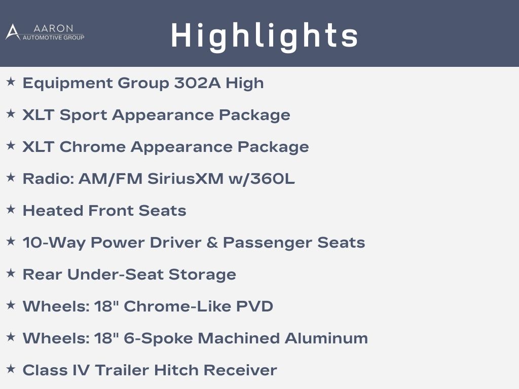 White 2021 Ford F-150 XLT RWD 10-Speed Automatic 2.7L V6 EcoBoost 10-Way Power Driver & Passenger Seats, 2-Bar Style Grille w/Chrome 2 Minor Bars, 8" Productivity Screen in Instrument Cluster, Accent-Color Step Bars, Auto-Dimming Rear-View Mirror, Black 2-Bar Style Grille w/Black Surround/Accents, Body-Color Door & Tailgate Handles, Body-Color Front & Rear Bumpers, Box Side Decals, Chrome Door & Tailgate Handles w/Body-Color Bezel, Chrome Single-Tip Exhaust, Chrome Step Bars, Class IV Trailer Hitch Receiver, Dual Zone Automatic Temperature Control, Equipment Group 302A High, Heated Front Seats, Intelligent Access w/Push Button Start, Leather-Wrapped Steering Wheel, LED Box Lighting w/Zone Lighting, LED Reflector Headlamps, LED Sideview Mirror Spotlights, Onboard 400W Outlet, Power Glass Heated Sideview Mirrors, Power-Adjustable Pedals, Radio: AM/FM SiriusXM w/360L, Rear Under-Seat Storage, Remote keyless entry, Remote Start System w/Remote Tailgate Release, SecuriCode Drivers Side Keyless-Entry Keypad, SYNC 4 w/Enhanced Voice Recognition, Unique Sport Cloth 40/Console/40 Front-Seats, Wheels: 18" 6-Spoke Machined Aluminum, Wheels: 18" Chrome-Like PVD, XLT Chrome Appearance Package, XLT Sport Appearance Package.Odometer is 24394 miles below market average! 20/26 City/Highway MPGAwards: * NACTOY 2021 North American Truck of the Year