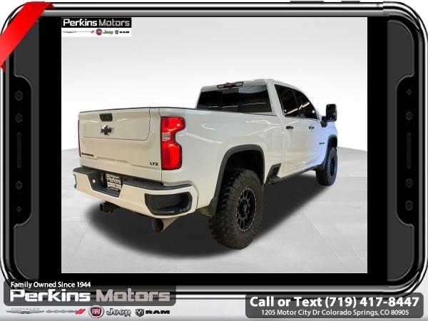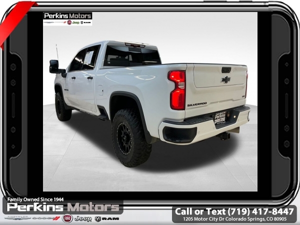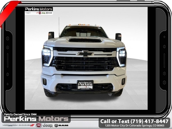 Summit White 4WD Duramax 6.6L V8 Turbodiesel 10-Speed Automatic<br><br>10-Speed Automatic, 4WD, Jet Black Leather, 120-Volt Bed Mounted Power Outlet, 120-Volt Interior Power Outlet, 170 Amp Alternator, 2 Charge/Data USB Ports Inside Center Console, 4 Round Black Assist Steps (LPO), 6-Speaker Audio System Feature, Adaptive Cruise Control, Auto-Dimming Inside Rear-View Mirror, Auto-Dimming Inside Rearview Mirror w/Camera, Bed View Camera w/2 Trailer Camera Provisions, Black Beltline Moldings, Bluetooth® For Phone, Body-Color Front Bumper, Body-Color Mirror Caps, Body-Color Rear Bumper, Bose Premium 7-Speaker Sound System, Chevrolet Connected Access Capable, Chevytec Spray-On Black Bedliner, Chrome Door Handles, Chrome Mirror Caps, Color-Keyed Carpeting Floor Covering, Compass Located In Instrument Cluster, Deep-Tinted Glass, Electric Rear-Window Defogger, EZ Lift Power Lock & Release Tailgate, Floor-Mounted Center Console, Front Bucket Seats, Front LED Fog Lamps, Front Rain-Sensing Wipers, Front Rubberized Vinyl Floor Mats, Gooseneck/5th Wheel Prep Package, HD Rear Vision Camera, HD Surround Vision, Heated 2nd Row Outboard Seats, Heated Steering Wheel, High Gloss Black Door Handles, Hill Descent Control, Hitch Guidance w/Hitch View, Hitch Package (LPO), In-Vehicle Trailering App System, Keyless Open & Start, LTZ Convenience Package, LTZ Convenience Package II, LTZ Plus Package, Manual Tilt-Wheel/Telescoping Steering Column, Multicolor 15 Diagonal Head-Up Display, OnStar & Chevrolet Connected Services Capable, Power Door Locks, Power Front Windows w/Driver Express Up/Down, Power Front Windows w/Passenger Express Up/Down, Power Rear Windows w/Express Down, Power Sliding Rear Window w/Defogger, Preferred Equipment Group 1LZ, Push Button Start, Rear Cross Traffic Alert, Rear Rubberized-Vinyl Floor Mats, Remote Vehicle Starter System, Safety Alert Seat, Safety Package, SiriusXM w/360L, Standard Tailgate, Steering Wheel Audio Controls, Steering Wheel Mounted Electronic Cruise Control, Suspension Package, Technology Package, Trailer Camera Provisions, Trailer Side Blind Zone Alert, Ultrasonic Front & Rear Park Assist, Unauthorized Entry Theft-Deterrent System, Universal Home Remote, Up-Level Rear Seat w/Storage Package, Ventilated Driver & Front Passenger Seats, Wheels: 18 High Gloss Black Aluminum, Wi-Fi Hotspot Capable, Wireless Charging, Wrapped Steering Wheel, Z71 Off-Road Package, Z71 Sport Edition.<br><br><br>Clean CARFAX.<br><br>Check us out at www.perkinsmotors.com to see our specials! Since opening our doors in 1944, we’ve been proud to serve Colorado Springs, CO, and the surrounding areas of Pueblo, Castle Rock and Denver, CO. Throughout this time of being family owned for 80 years, we’ve maintained a firm commitment to our customers: to offer a wide selection of New Chrysler, Dodge, Fiat, Jeep, and Ram vehicles and quality pre-owned vehicles, and provide a quick, no-hassle car-buying process that ensures everyone drives off the lot satisfied with their purchase.<br><br><br>Gooseneck/5th Wheel Prep Package (Chevytec Spray-On Black Bedliner), Hitch Package (LPO), LTZ Convenience Package (2 Charge/Data USB Ports Inside Center Console, Bose Premium 7-Speaker Sound System, Floor-Mounted Center Console, Front Bucket Seats, Ventilated Driver & Front Passenger Seats, and Wireless Charging), LTZ Convenience Package II (Adaptive Cruise Control, Heated 2nd Row Outboard Seats, Power Sliding Rear Window w/Defogger, and Universal Home Remote), LTZ Plus Package, Preferred Equipment Group 1LZ (120-Volt Bed Mounted Power Outlet, 120-Volt Interior Power Outlet, 170 Amp Alternator, 6-Speaker Audio System Feature, Auto-Dimming Inside Rear-View Mirror, Bluetooth® For Phone, Chevrolet Connected Access Capable, Chrome Door Handles, Chrome Mirror Caps, Color-Keyed Carpeting Floor Covering, Compass Located In Instrument Cluster, Deep-Tinted Glass, Electric Rear-Window Defogger, EZ Lift Power Lock & Release Tailgate, Front LED Fog Lamps, Fro