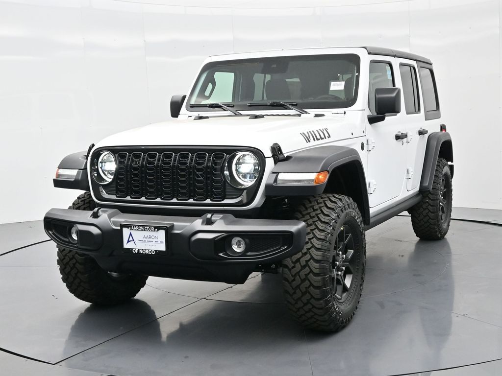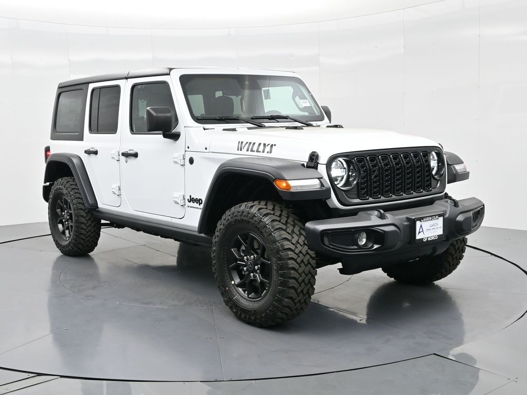 2025 Jeep Wrangler Willys Bright White ClearcoatFactory MSRP: $55,230 Dealer Discount of $7,000 off MSRP2-Door Passive Entry, Front Door Locks, 4-Wheel Drive Swing Gate Decal, 4.10 Rear Axle Ratio, 7 & 4 Pin Wiring Harness, 97 MPH Vehicle Max Speed Calibration, Advanced Brake Assist, Air Conditioning w/Auto Temperature Control, Air Filtering, Automatic Headlamps, Auxiliary Switches, Black Grille, Class II Receiver Hitch, Cluster 7.0" TFT Color Display, Convenience Group, Conventional Differential Front Axle, Corning Gorilla Glass, Dana M210 Wide HD Tube Front Axle, Dana M220 Wide Rear Axle, Daytime Running Lamps LED Accents, Deep Tint Sunscreen Windows, E-Locker Rear Axle, Emergency/Assistance Call, Enhanced Adaptive Cruise Control, Front LED Fog Lamps, Full Speed Forward Collision Warning Plus, Heated Front Seats, Heated Steering Wheel, Injection Molded Black Rear Bumper, LED Premium Reflector Headlamps, Mold In Color Bumper w/Gloss Black, Molded in Color Rubicon Highline Flare, MOPAR All-Weather Floor Mats, Off-Road Plus Mode, Power Heated Mirrors, Premium Wrapped Steering Wheel, Quick Order Package 24W Willys, Remote Start System, Security Alarm, Sun Visors w/Illuminated Vanity Mirrors, Universal Garage Door Opener, Wheels: 17" x 7.5" Painted Black, Willy's Suspension, Willys Hood Decal. 4WD 8-Speed Automatic 3.6L V6 24V VVT Price includes: $1000 - 2025 West BC Bonus Cash . Exp. 09/30/2025 $2500 - 2025 National Retail Bonus Cash . Exp. 09/30/2025 Preferred Lender:Preferred Lender Savings available on new vehicle purchase when financing throughAaron Chrysler Dodge JeepRam's preferred lender(s). Not all customers will qualify