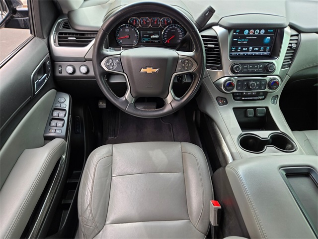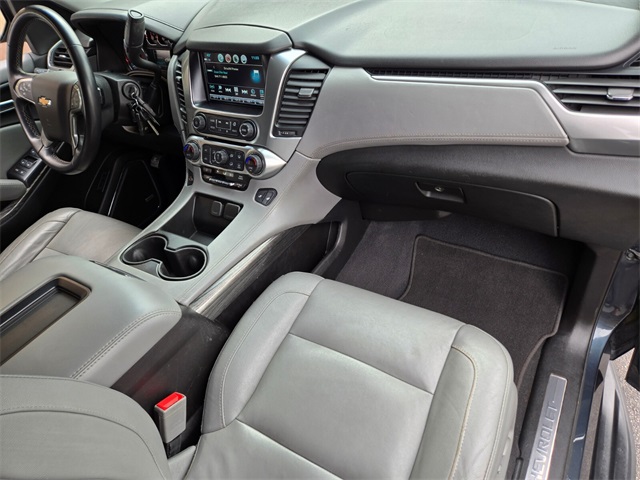 Priced below KBB Fair Purchase Price!Odometer is 35863 miles below market average!Shadow Gray Metallic 2019 Chevrolet Tahoe LT 4WD 6-Speed Automatic Electronic with Overdrive EcoTec3 5.3L V8 4WD, Jet Black/Dark Ash Leather.If you don't drive here, you can't save here!Awards: * JD Power Initial Quality Study * 2019 KBB.com Best Resale Value AwardsPrice may not include recon fee. Enhanced Driver Alert Package (Y86) (Forward Collision Alert, IntelliBeam Headlamps, Lane Keep Assist w/Lane Departure Warning, and Low Speed Forward Automatic Braking), License Plate Front Mounting Package, Preferred Equipment Group 1LT (1st & 2nd Row Color-Keyed Carpeted Floor Mats, 2nd Row 60/40 Split-Folding Manual Bench, 3rd Row Manual 60/40 Split-Folding Fold Flat Bench, 4-Wheel Antilock Disc Brakes w/Brake Assist, 5 12-Volt Auxiliary Power Outlets, Auto-Dimming Inside Rear-View Mirror, Black Assist Steps, Bose Premium 9-Speaker System, Cargo Net, Color-Keyed Carpeting Floor Covering, Driver Inboard & Front Passenger Airbags, Electronic Cruise Control w/Set & Resume Speed, Extended-Range Remote Keyless Entry, Floor Console, Front Passenger 6-Way Power Seat Adjuster, Leather-Wrapped Steering Wheel, Memory Settings, Power Liftgate, Power-Adjustable Accelerator & Brake Pedals, Rear Park Assist w/Audible Warning, Remote Vehicle Start, Roof-Mounted Luggage Rack Side Rails, SiriusXM Radio, and Universal Home Remote), Premium Smooth Ride Suspension Package, 4WD, Jet Black/Dark Ash Leather, 18" x 8.5" Aluminum Wheels, 2nd Row Manual Bucket Seats, 3.08 Rear Axle Ratio, 3rd row seats: split-bench, 4-Wheel Disc Brakes, 9 Speakers, ABS brakes, Adjustable pedals, Air Conditioning, Alloy wheels, AM/FM radio: SiriusXM, Apple CarPlay/Android Auto, Auto High-beam Headlights, Auto-dimming Rear-View mirror, Automatic temperature control, Bluetooth® For Phone, Brake assist, Bumpers: body-color, CD player, Compass, Delay-off headlights, Driver door bin, Driver vanity mirror, Dual front impact airbags, Dual front side impact airbags, Electronic Stability Control, Emergency communication system: OnStar and Chevrolet connected services capable, Exterior Parking Camera Rear, Front anti-roll bar, Front Bucket Seats, Front Center Armrest, Front dual zone A/C, Front Heated Reclining Bucket Seats, Front reading lights, Front wheel independent suspension, Fully automatic headlights, Garage door transmitter, HD Radio, Heated door mirrors, Heated front seats, Illuminated entry, Leather-Appointed Seat Trim, Low tire pressure warning, Memory seat, Occupant sensing airbag, Outside temperature display, Overhead airbag, Overhead console, Panic alarm, Passenger door bin, Passenger vanity mirror, Pedal memory, Polished Exhaust Tip, Power door mirrors, Power driver seat, Power passenger seat, Power steering, Power Sunroof, Power windows, Premium audio system: Chevrolet MyLink, Radio: Chevrolet Infotainment AM/FM Stereo, Radio: Chevrolet Infotainment AM/FM Stereo w/Nav, Rain sensing wipers, Rear air conditioning, Rear anti-roll bar, Rear reading lights, Rear seat center armrest, Rear window defroster, Rear window wiper, Remote keyless entry, Roof rack: rails only, Security system, Single-Slot CD/MP3 Player, Speed control, Speed-sensing steering, Split folding rear seat, Spoiler, Steering wheel mounted audio controls, Tachometer, Telescoping steering wheel, Tilt steering wheel, Traction control, Trip computer, Variably intermittent wipers, and Voltmeter.