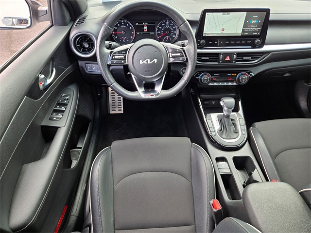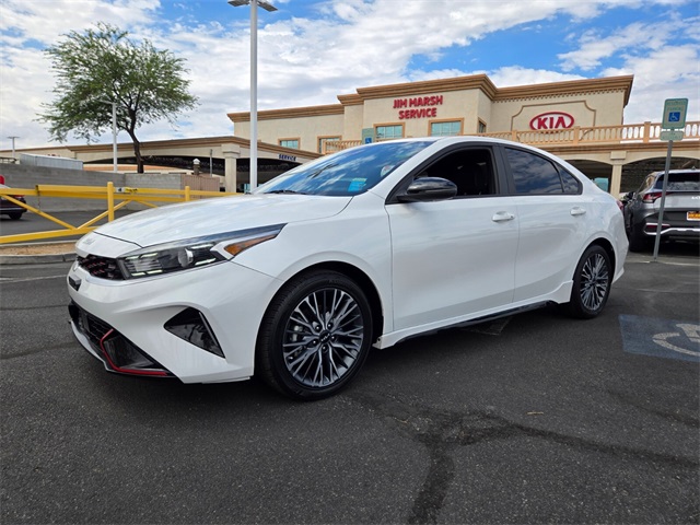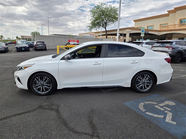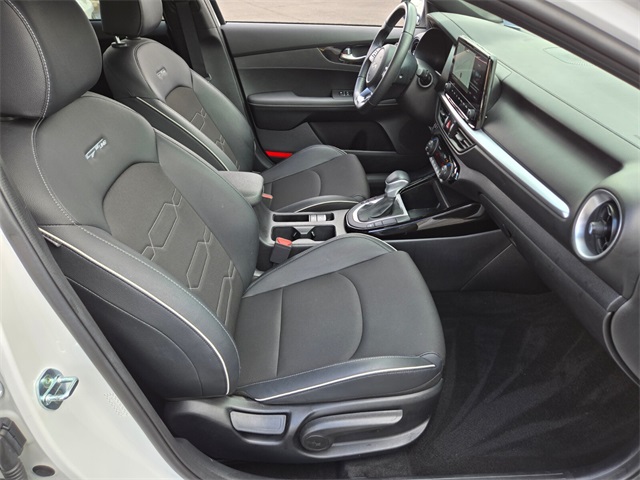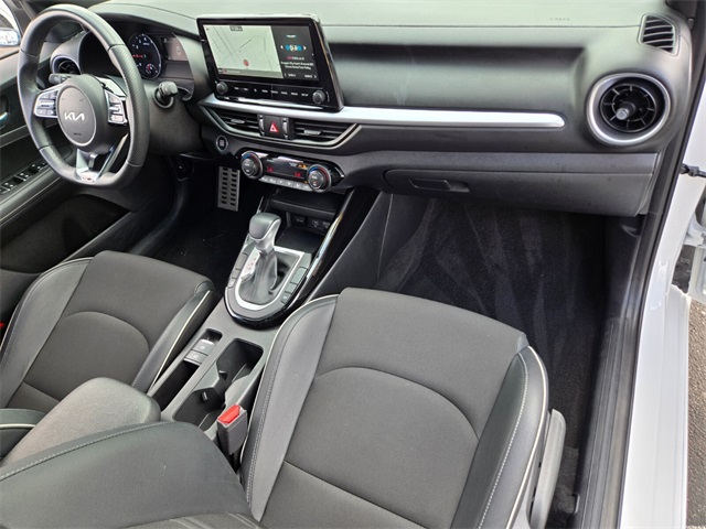 Priced below KBB Fair Purchase Price!Odometer is 14692 miles below market average!29/39 City/Highway MPGSnow White Pearl 2022 Kia Forte GT-Line FWD CVT 2.0L 4-Cylinder MPIIf you don't drive here, you can't save here!Price may not include recon fee. GT-Line Technology Package (Electronic Parking Brake (EPB) w/Auto Hold, Forward Collision Avoidance-Assist - Cyclist, Highway Driving Assist (HDA), Navigation-Based Smart Cruise Control (NSCC), and Smart Cruise Control), 4-Wheel Disc Brakes, 6 Speakers, ABS brakes, Air Conditioning, Alloy wheels, AM/FM radio: SiriusXM, Apple CarPlay & Android Auto, Auto High-beam Headlights, Automatic temperature control, Brake assist, Bumpers: body-color, Cloth & Leatherette Seat Trim, Delay-off headlights, Driver door bin, Driver vanity mirror, Dual front impact airbags, Dual front side impact airbags, Electronic Stability Control, Emergency communication system: UVO eServices, Exterior Parking Camera Rear, Front anti-roll bar, Front Bucket Seats, Front Center Armrest, Front dual zone A/C, Front fog lights, Front reading lights, Front Sport Seats, Front wheel independent suspension, Fully automatic headlights, Heated door mirrors, Illuminated entry, Leather Shift Knob, Leather steering wheel, Low tire pressure warning, Navigation System, Occupant sensing airbag, Outside temperature display, Overhead airbag, Overhead console, Panic alarm, Passenger door bin, Passenger vanity mirror, Power door mirrors, Power steering, Power windows, Radio data system, Radio: UVO Link Audio System, Rear seat center armrest, Rear window defroster, Remote keyless entry, Security system, Speed control, Split folding rear seat, Spoiler, Sport steering wheel, Steering wheel mounted audio controls, Tachometer, Telescoping steering wheel, Tilt steering wheel, Traction control, Trip computer, Turn signal indicator mirrors, Variably intermittent wipers, and Wheels: 17" Graphite Finish Alloy.