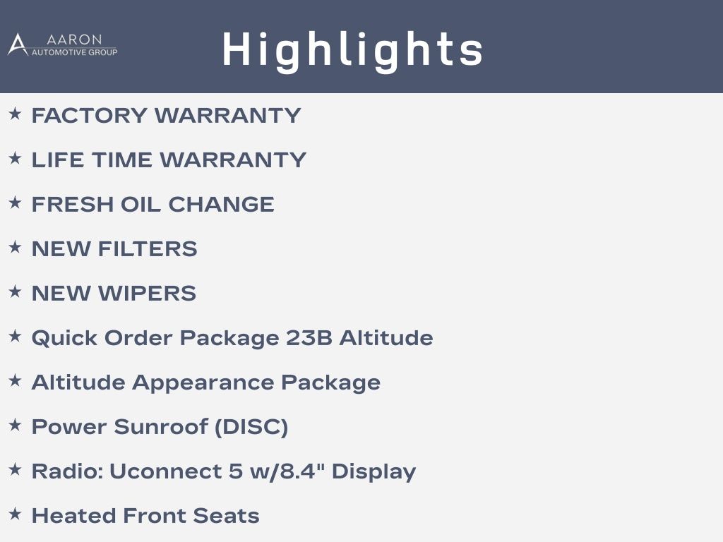 Priced below KBB Fair Purchase Price!FACTORY WARRANTY, LIFE TIME WARRANTY, FRESH OIL CHANGE, NEW FILTERS, NEW WIPERS, Grand Cherokee Altitude, 4D Sport Utility, 3.6L V6 24V VVT, 4WD, Altitude Appearance Package, Black Headliner, Delete Laredo Badge, Front dual zone A/C, Gloss Black Exterior Accents, Knee airbag, Overhead airbag, ParkView Rear Back-Up Camera, Power Liftgate, Quick Order Package 23B Altitude, Remote keyless entry, Remote Start System, Secondary Active Grille Shutters, Selectable Tire Fill Alert, Wireless Charging Pad.Clean CARFAX.CARFAX One-Owner.