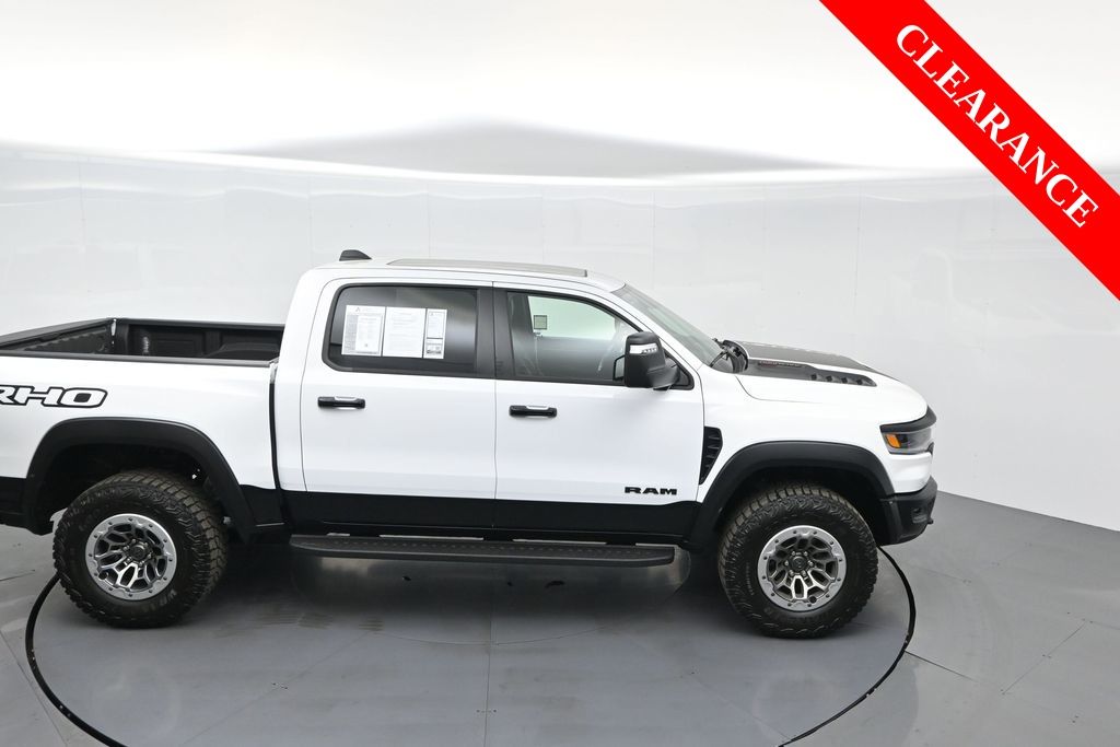 2025 Ram 1500 RHO Crew Cab 4x4 3.0L i6 Twin-Turbo, One-Owner, Just Over 2,000 MilesFully loaded and engineered for power, this 2025 Ram 1500 RHO Crew Cab 4x4 features the legendary 3.0L Hurricane Twin-Turbo I6 engine paired with an 8-speed automatic transmission. Equipped with the Trailer Tow Package and Trailer Reverse Steering Control, this truck is built to perform on every haul and adventure. Para la version en espanol, vea abajo.The RHO Off-Road Package adds performance-tuned suspension, skid plates, and 35-inch all-terrain tires for superior off-road capability. The Bright White Clear-Coat exterior pairs with a Black interior, while the 14.4-inch Uconnect 5 touchscreen, digital cluster, and premium Alpine sound system deliver advanced connectivity and entertainment.Inside, heated front seats, a power-adjustable steering wheel, dual-zone climate control, and power-folding mirrors ensure daily comfort and convenience. With 4x4 traction and a rugged yet refined interior, this Ram 1500 offers the perfect balance of luxury and utility for work, towing, and adventure.This model year continues Rams tradition of excellencerenowned for its strength, durability, and premium craftsmanship in the full-size truck segment.Every vehicle we sell undergoes a multi-point inspection to ensure top performance and peace of mind. Enjoy transparent pricing, flexible financing options, and a no-pressure environment where our experts are ready to assist with trade-ins or financing solutions tailored to you.Ready to see this vehicle up close? Contact us today to schedule a no-obligation test drive or virtual tour, and lets discuss how we can tailor financing to fit your needs. Our team is dedicated to addressing any concerns and guiding you every step of the way.2025 Ram 1500 RHO Crew Cab 4x4 3.0L i6 Twin-Turbo, Un Solo Dueno, Poco Mas de 2,000 MillasTotalmente equipada y disenada para el poder, esta Ram 1500 RHO Crew Cab 4x4 2025 cuenta con el motor Hurricane Twin-Turbo I6 de 3.0 L y transmision automatica de 8 velocidades. Con el paquete de remolque y control de direccion de remolque, esta camioneta esta lista para cualquier carga o aventura.El paquete RHO Off-Road incluye suspension deportiva, placas protectoras y llantas todo terreno de 35 pulgadas para un desempeno sobresaliente fuera del camino. Su exterior Blanco Brillante combina con un interior Negro, mientras la pantalla tactil Uconnect de 14.4 pulgadas, el panel digital y el sistema Alpine premium brindan conectividad y entretenimiento de primer nivel.Por dentro ofrece asientos delanteros calefactables, volante con ajuste electrico, clima dual y espejos abatibles automaticos para maxima comodidad. Con traccion 4x4 y un interior resistente pero refinado, esta Ram 1500 combina lujo y utilidad para trabajo, remolque o aventura.Este ano modelo continua la tradicion de excelencia de Ramreconocida por su durabilidad, potencia y acabados de lujo en el segmento de camionetas grandes.Cada vehiculo pasa por una inspeccion multipunto para garantizar su mejor desempeno. Disfruta de precios transparentes, financiamiento flexible y un ambiente sin presiones, con asesores listos para ayudarte con tu intercambio o plan de credito ideal.Listo para verla de cerca? Contactanos hoy para agendar una prueba de manejo sin compromiso o un recorrido virtual. Nuestro equipo te acompanara en todo momento para resolver tus dudas y encontrar la mejor opcion para ti.