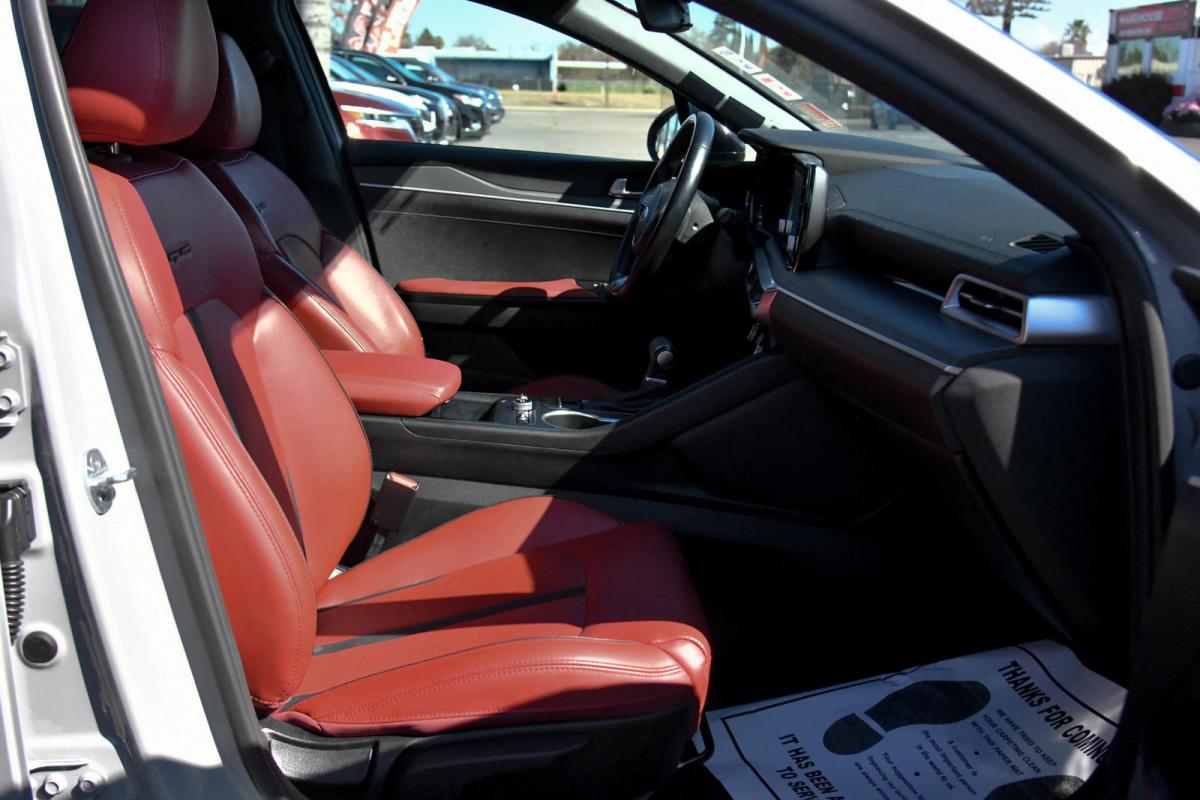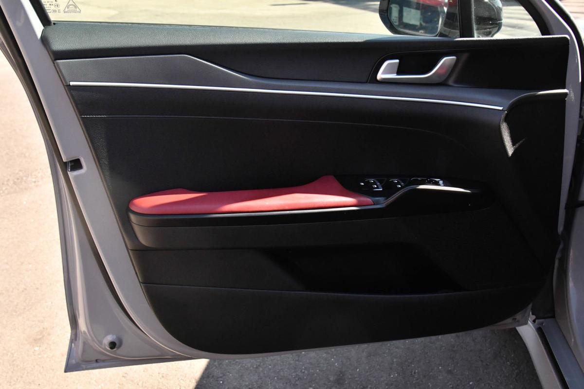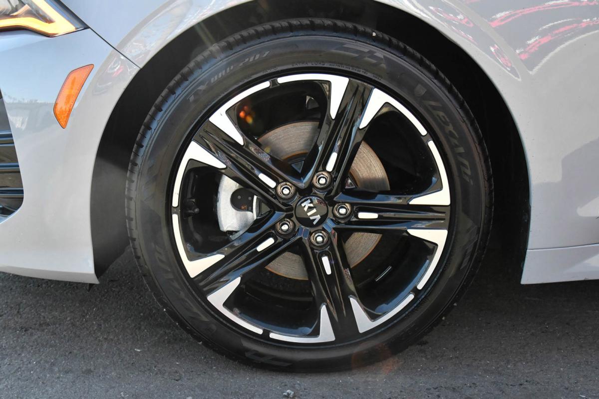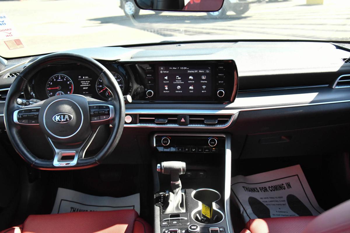 Scores 34 Highway MPG and 26 City MPG! This Kia K5 boasts a Intercooled Turbo Regular Unleaded I-4 1.6 L/98 engine powering this Automatic transmission. WOLF GRAY, GT-LINE RED INTERIOR PACKAGE, CARPETED FLOOR MATS.*This Kia K5 Features the Following Options *BLACK, LEATHERETTE SEAT TRIM -inc: GT-Line logo and red interior, BLACK, CLOTH/LEATHERETTE SEAT TRIM -inc: GT-Line logo, Window Grid Antenna, Wheels: 7.5J x 18 Graphite Machined Finish Alloy, Variable Intermittent Wipers, Urethane Gear Shifter Material, Turn-By-Turn Navigation Directions, Trunk Rear Cargo Access, Trip Computer, Transmission: 8-Speed Automatic -inc: drive mode select system.
