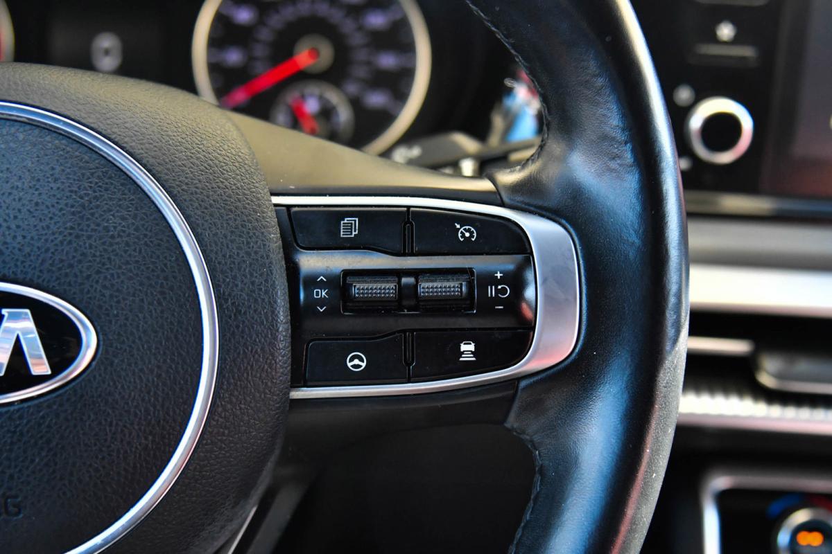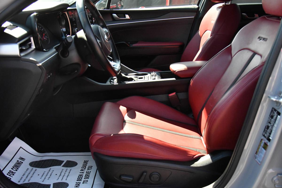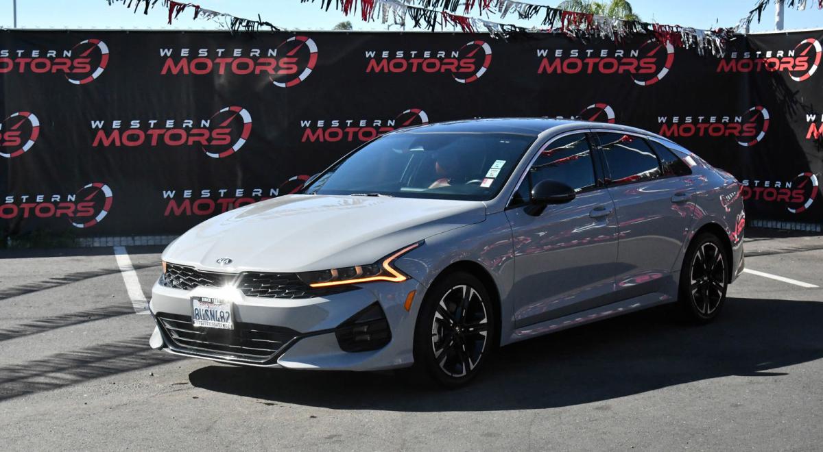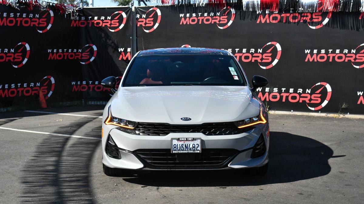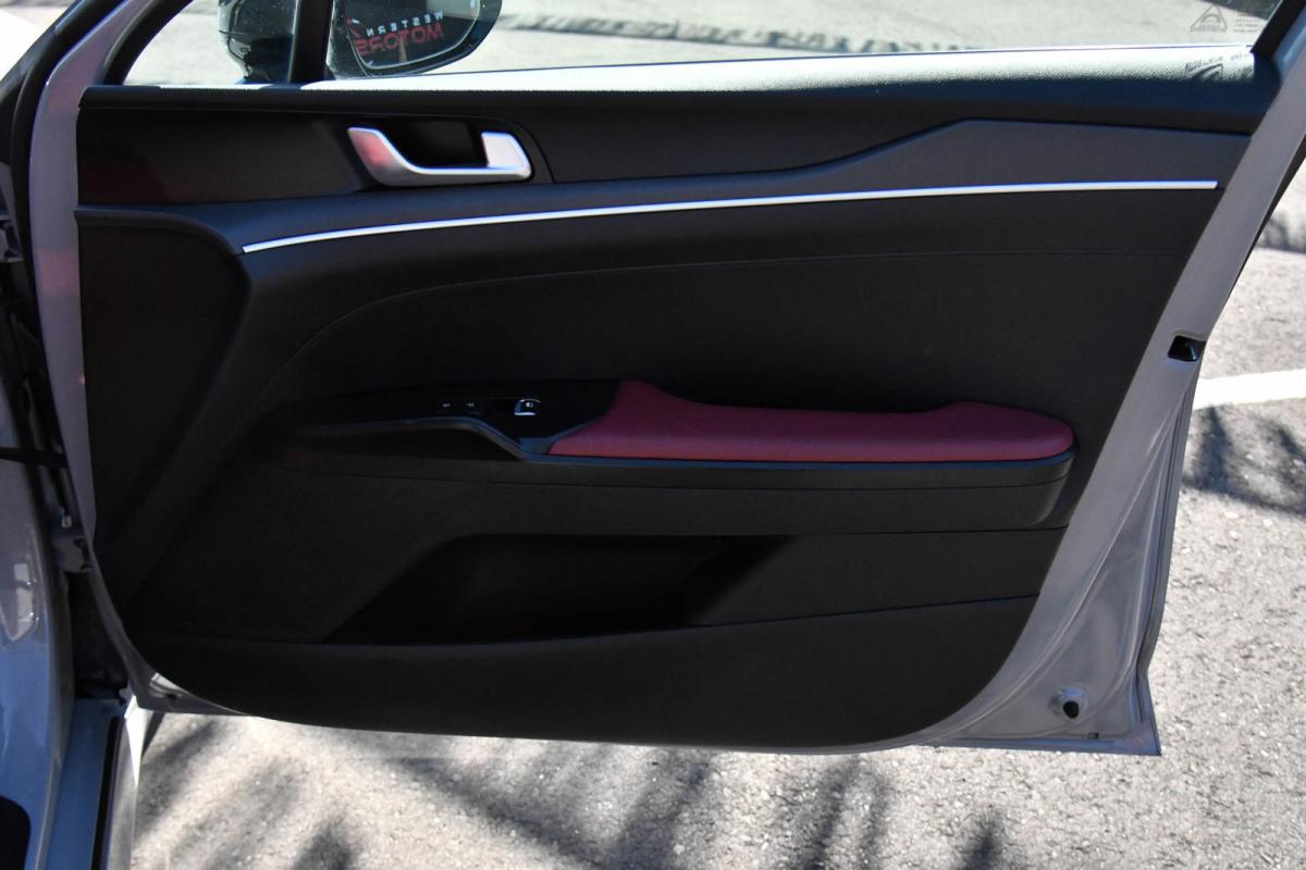 Scores 34 Highway MPG and 26 City MPG! This Kia K5 boasts a Intercooled Turbo Regular Unleaded I-4 1.6 L/98 engine powering this Automatic transmission. WOLF GRAY, GT-LINE RED INTERIOR PACKAGE, CARPETED FLOOR MATS.*This Kia K5 Features the Following Options *BLACK, LEATHERETTE SEAT TRIM -inc: GT-Line logo and red interior, BLACK, CLOTH/LEATHERETTE SEAT TRIM -inc: GT-Line logo, Window Grid Antenna, Wheels: 7.5J x 18 Graphite Machined Finish Alloy, Variable Intermittent Wipers, Urethane Gear Shifter Material, Turn-By-Turn Navigation Directions, Trunk Rear Cargo Access, Trip Computer, Transmission: 8-Speed Automatic -inc: drive mode select system.