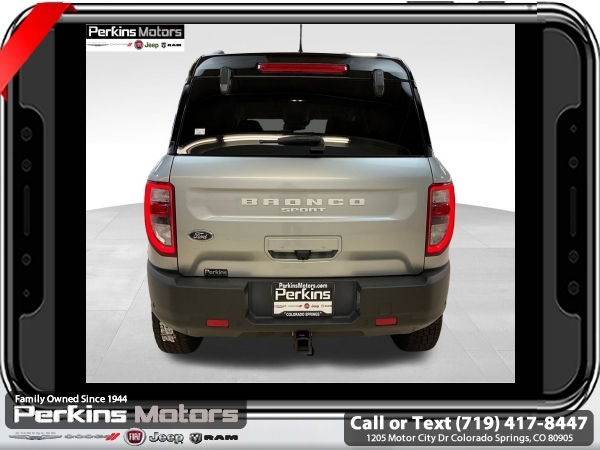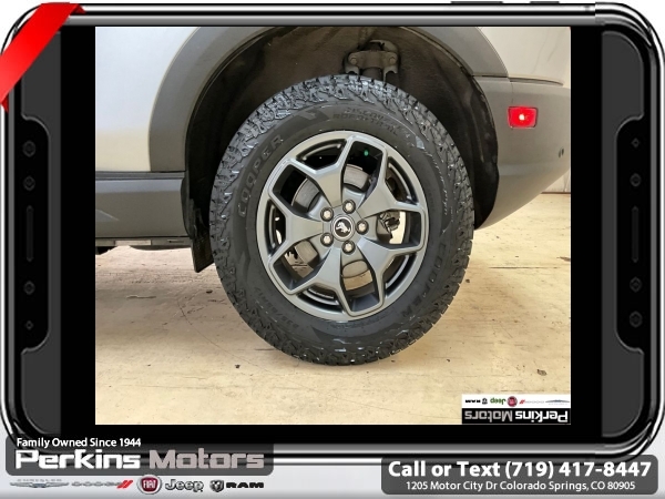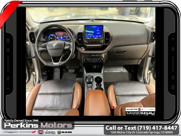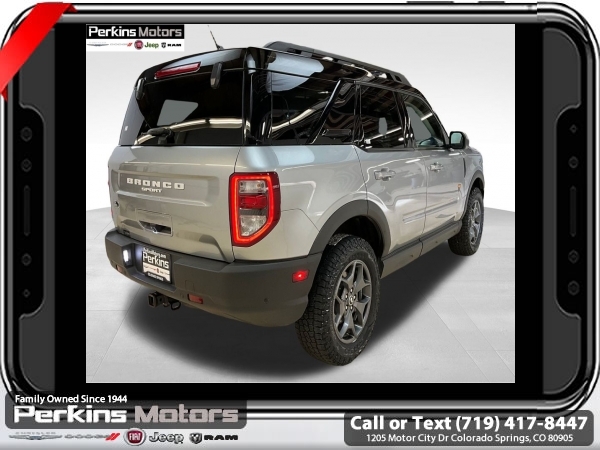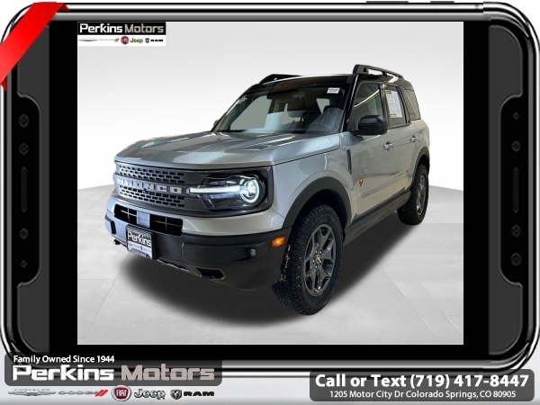 2022 Ford Bronco Sport Badlands Built for Dirt, but Loves Brunch Too<br>Iconic Silver Metallic • 4WD • 2.0L EcoBoost Turbo • One-Owner | Clean CARFAX<br><br>This Bronco doesnt just go off-roadit does it in a heated leather seat, with your phone wirelessly charging and your playlist blasting from HD radio.<br><br>Premium Package Perks Heated steering wheel, remote start, wireless charging, and a garage door opener for your lair<br><br>Co-Pilot360 Assist+ Evasive Steering Assist in case squirrels cross the trail (or your ex crosses your path)<br><br>Tow, Go, and Trail Class II Tow Package + Terrain Management System = adventure approved<br><br>Badlands Trim The rugged middle child of the Bronco family: built tough, dresses sharp<br><br>Navigation, Adaptive Cruise, and 17 Gray Wheels You bring the snacks, itll bring the swagger<br><br>Whether its mud, snow, or the Target parking lotthis Bronco Sport is ready to conquer it all... with cupholders.<br><br>Now available at Perkins Motors Where Adventure Has Had a Parking Spot Since 1944<br>Browse more trail-tamers at www.perkinsmotors.com