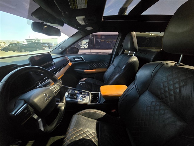 Recent Arrival!CARFAX One-Owner.Priced below KBB Fair Purchase Price!Odometer is 28749 miles below market average!24/31 City/Highway MPGBlack 2022 Mitsubishi Outlander SEL FWD CVT 2.5L 4-Cylinder DOHCIf you don't drive here, you can't save here!Price may not include recon fee. 3rd row seats: split-bench, 4-Wheel Disc Brakes, 6 Speakers, ABS brakes, Air Conditioning, Alloy wheels, AM/FM radio: SiriusXM, Android Auto & Apple CarPlay, Auto High-beam Headlights, Auto-dimming Rear-View mirror, Automatic temperature control, Brake assist, Bumpers: body-color, Driver door bin, Driver vanity mirror, Dual front impact airbags, Dual front side impact airbags, Electronic Stability Control, Emergency communication system: Mitsubishi Connect w/ 24-month trial, Four wheel independent suspension, Front anti-roll bar, Front Bucket Seats, Front Center Armrest w/Storage, Front dual zone A/C, Front fog lights, Front reading lights, Fully automatic headlights, Heated door mirrors, Heated Front Bucket Seats, Heated front seats, Illuminated entry, Knee airbag, Leather Seat Trim, Leather Shift Knob, Leather steering wheel, Low tire pressure warning, Memory seat, Navigation system: Powered by TOMTOM, Occupant sensing airbag, Outside temperature display, Overhead airbag, Overhead console, Panic alarm, Passenger door bin, Passenger vanity mirror, Power door mirrors, Power driver seat, Power Liftgate, Power passenger seat, Power steering, Power windows, Radio data system, Radio: AM/FM 9.0" Navigation w/Smartphone Link, Rain sensing wipers, Rear air conditioning, Rear anti-roll bar, Rear seat center armrest, Rear side impact airbag, Rear window defroster, Rear window wiper, Reclining 3rd row seat, Remote keyless entry, Roof rack: rails only, Security system, Speed control, Speed-Sensitive Wipers, Split folding rear seat, Spoiler, Steering wheel mounted audio controls, Tachometer, Telescoping steering wheel, Tilt steering wheel, Traction control, Trip computer, Turn signal indicator mirrors, Variably intermittent wipers, and Wheels: 20" x 8J Two-Tone Alloy.