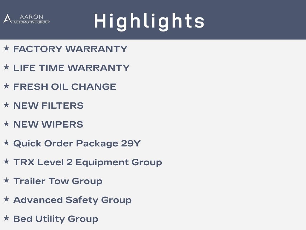 Priced below KBB Fair Purchase Price!FACTORY WARRANTY, LIFE TIME WARRANTY, FRESH OIL CHANGE, NEW FILTERS, NEW WIPERS, 1500 TRX, 4D Crew Cab, 6.2L Supercharged HEMI V8 SRT, 8-Speed Automatic, 4WD, #2 Seat Foam Cushion, 2-Door Passive Entry, Front Door Locks, 4 Way Front Headrests, Adaptive Cruise Control w/Stop & Go, Advanced Safety Group, Alloy wheels, Bed Utility Group, Blind Spot & Cross Path Detection, Body Color Door Handles, Bucket Seats, Center Console Parts Module, Digital Rearview Mirror, Driver Seat Memory, Driver/Passenger Wrapped Assist Handles, Dual front side impact airbags, Exterior Mirrors w/Memory, Front Door Accent Lighting, Front dual zone A/C, Front fog lights, Front Seat Back Map Pockets, Full Length Premium Upgraded Floor Console, harman/kardon 19 Speaker Premium Sound, Heads-Up Display, Heated Front Seats, Heated Second Row Seats, Heated Steering Wheel, IP LED Ambient Light Pipe, Lane Keep Assist, Leather Trimmed Bucket Seats, Leather/Suede Flat-Bottom Steering Wheel, LED CHMSL Lamp, Luxury Front Door Trim Panel, MOPAR 4 Adjustable Cargo Tie-Down Hooks, MOPAR Bright Pedal Kit, MOPAR Deployable Bed Step, MOPAR Spray In Bedliner, Navigation System, ParkSense Front/Rear Park Assist w/Stop, ParkView Rear Back-Up Camera, Pedestrian Emergency Braking, Pick-Up Box Lighting, Power 4-Way Driver Lumbar Adjust, Power 4-Way Passenger Lumbar Adjust, Power 8-Way Driver & Passenger Seats, Power Adjustable Pedals w/Memory, Premium Wrapped IP Bezel, Quick Order Package 29Y, Radio: Uconnect 5 Nav w/12.0" Display, Radio/Driver Seat/Mirrors/Pedals Memory, Rain Sensitive Windshield Wipers, Rear 60/40 Folding Seat, Rear 60/40 Folding Split Recline Seat, Rear Door Accent Lighting, Rear Underseat Compartment Storage, Rear Window Defroster, Remote Tailgate Release, Sun Visors w/Illuminated Vanity Mirrors, Surround View Camera System, Tailgate Ajar Warning Lamp, Trailer Brake Control, Trailer Light Check, Trailer Tire Pressure Monitoring System, Trailer Tow Group, TRX Level 2 Equipment Group, Universal Garage Door Opener, Ventilated Front Seats, Ventilated Rear Seats, Wheels: 18" x 9" Black Paint/Polish Aluminum, Wireless Charging Pad.Clean CARFAX.