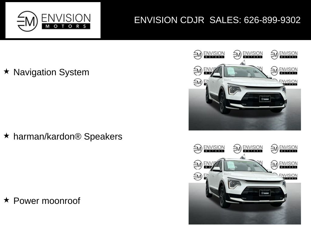 **$4000 REBATE AVAILABLE**WE SPECIALIZE IN ALL CREDIT PROFILES! See what we can do for you! Call to find out (626) 899-9302.CARFAX One-Owner. Clean CARFAX.Odometer is 13626 miles below market average! 53/54 City/Highway MPG 1.6L I4 DGI Hybrid DOHC 16V LEV3-SULEV30, harman/kardon® Speakers, Navigation System, Power moonroof.Snow White Pearl2023 Kia Niro SX FWD 6-Speed Automatic 1.6L I4 DGI Hybrid DOHC 16V LEV3-SULEV30**********All Pricing and Advertised Prices for any/all vehicles offered for sale does not include dealer installed accessories which can be purchased for an additional cost.********** The Factory Rebates may not be available on this vehicle if you elect to take advantage of a Special Alternative APR or Special Lease program. Some Factory Rebates are California Resident specific and may vary for residents of other states. NO sales to Dealers, Brokers or Exporters. For out of state purchase, customers must be present to purchase. If shipping is required, dealership must facilitate; no exceptions. Please contact us for special Multi-Vehicle or Fleet pricing. Prices are plus government fees and taxes, any finance charges, $85 documentary fee, $29 electronic registration fee, any emission testing charge and $1.75 per new tire state tire fee. *** We make every effort to provide accurate information, but please verify before purchasing. Leasing & financing available on approved credit. Trade-ins accepted. Subject to prior sale.