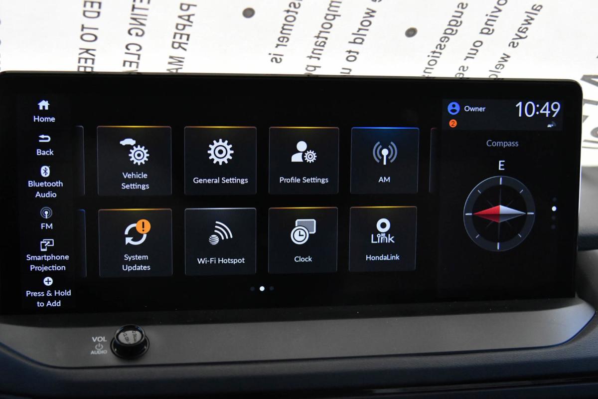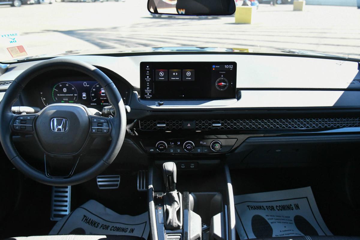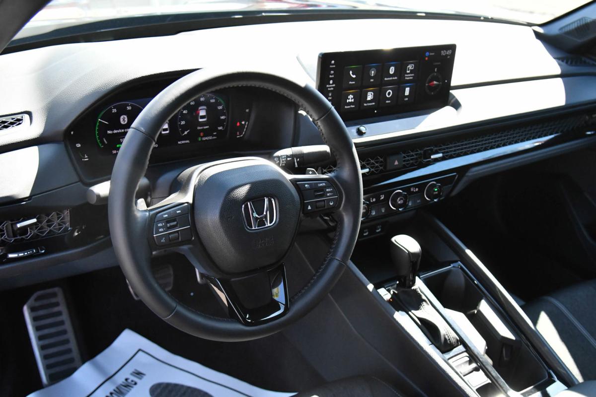 Scores 41 Highway MPG and 46 City MPG! This Honda Accord Hybrid delivers a Gas/Electric I-4 2.0 L/122 engine powering this Variable transmission. Wheels: 19 x 8.5J Berlina Black -inc: machined face, Vehicle Stability Assist (VSA) Electronic Stability Control (ESC), Valet Function.*This Honda Accord Hybrid Features the Following Options *Trunk Rear Cargo Access, Trip Computer, Transmission: Electronic Continuously Variable -inc: econ, normal, sport and individual modes, Traffic Jam Assist, Tires: 235/40R19 96V AS, Tire Specific Low Tire Pressure Warning, Tire mobility kit, Strut Front Suspension w/Coil Springs, Speed Sensitive Variable Intermittent Wipers, Smart Device Remote Engine Start.